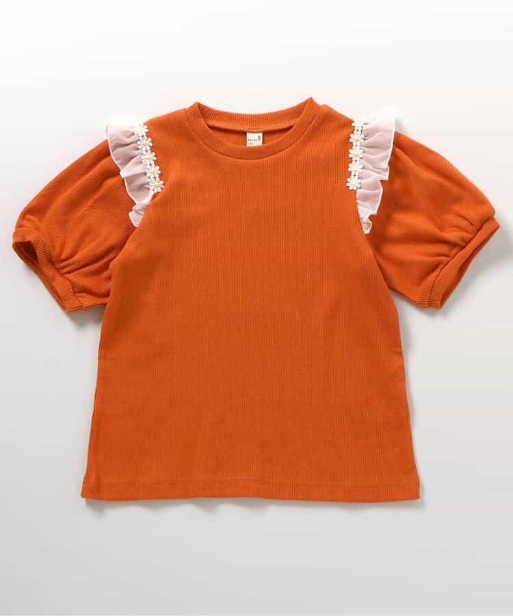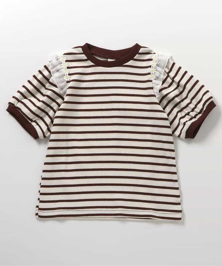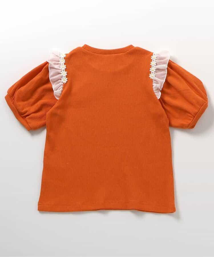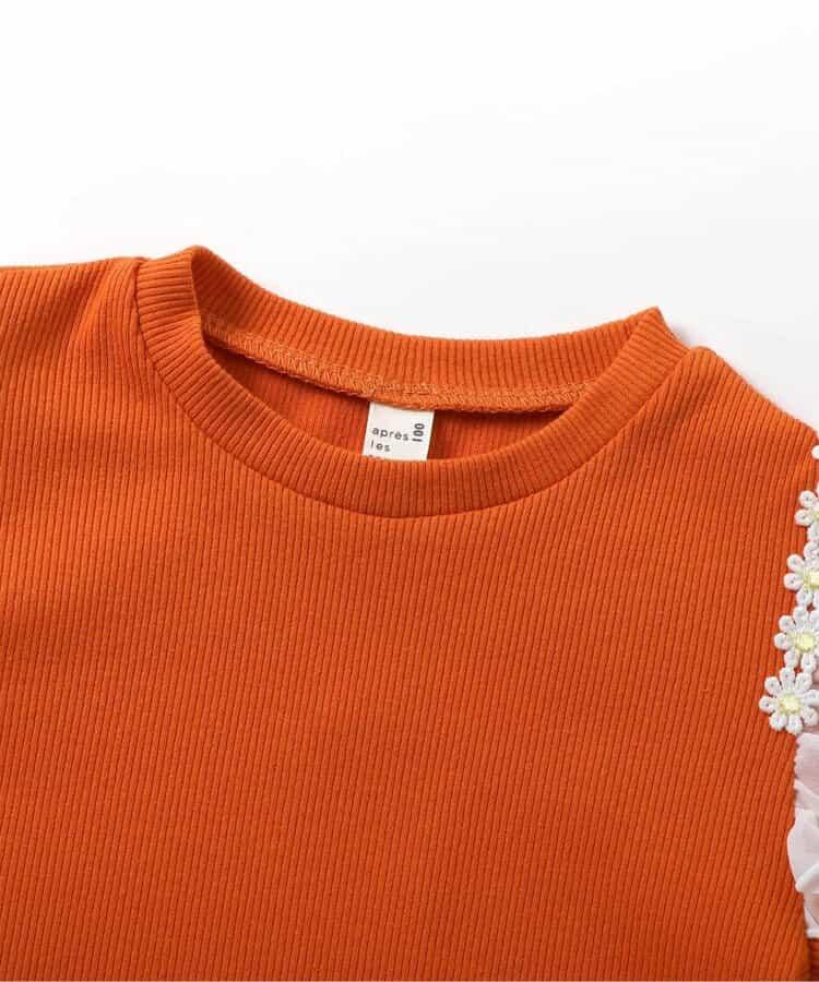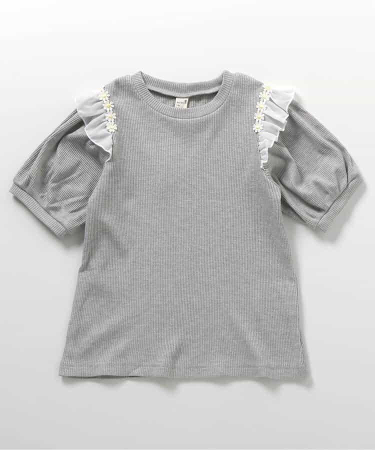 apres les cours 的短袖 T 恤 "肩部荷葉邊花朵圖案 T 恤 "是一款時尚單品,在自然風格中加入了精巧的設計*。