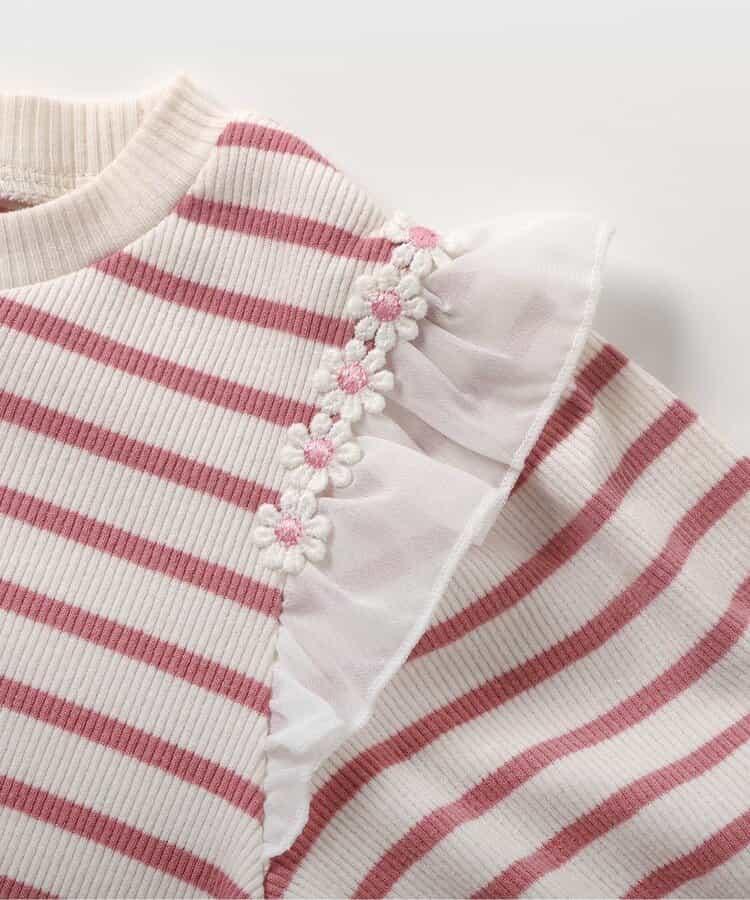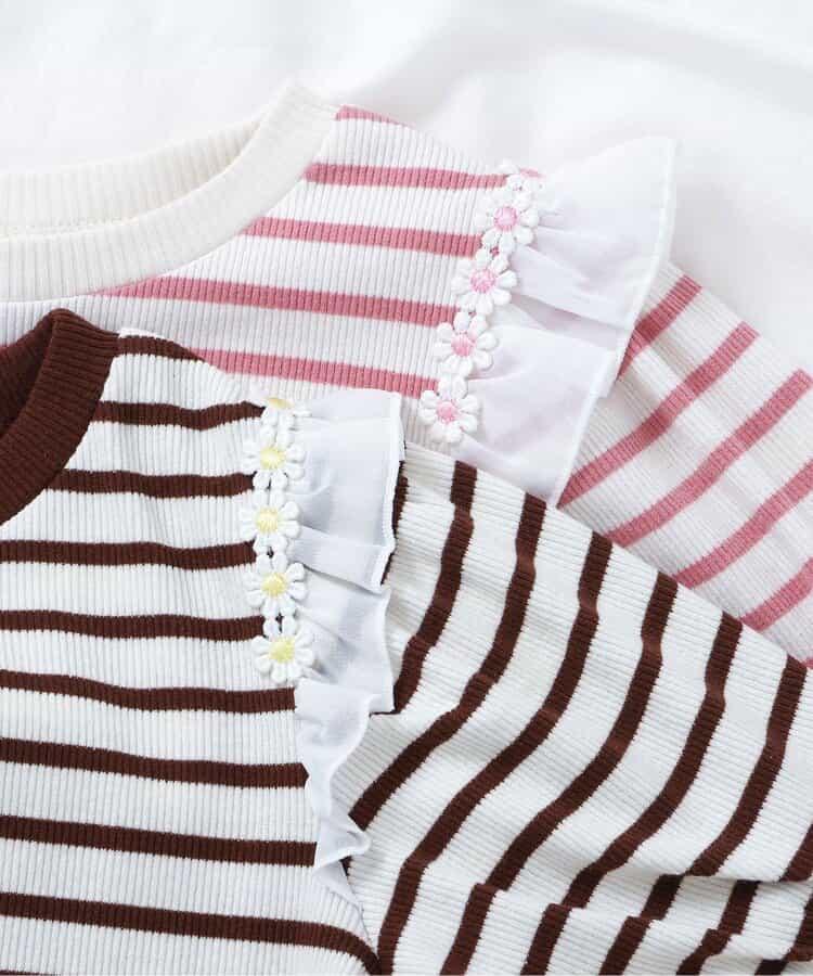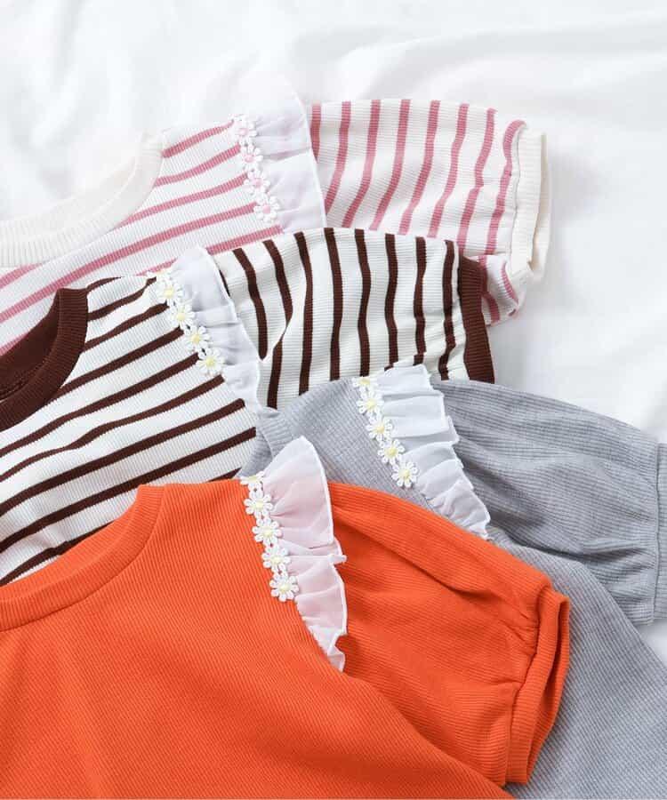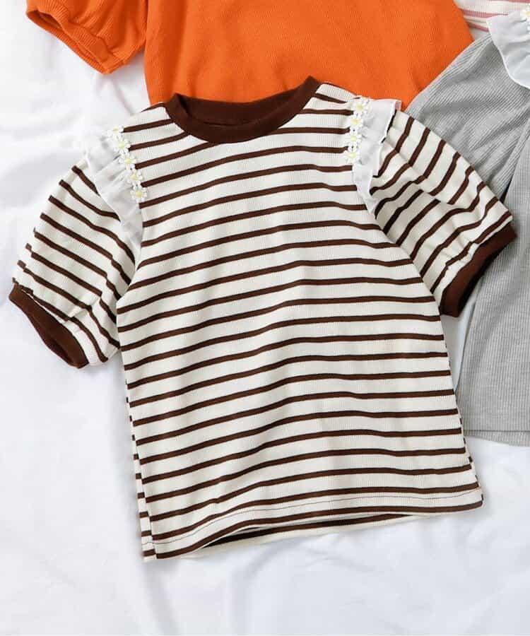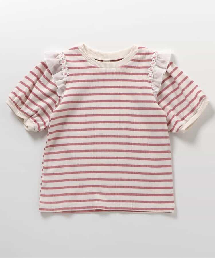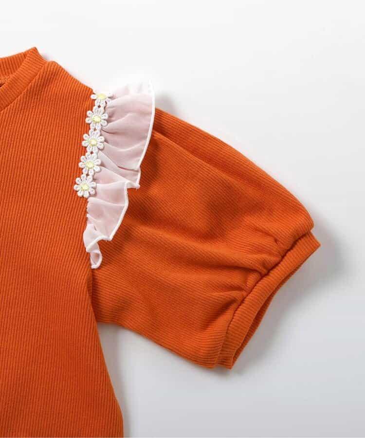 apres les cours 的短袖 T 恤 "肩部荷葉邊花朵圖案 T 恤 "是一款時尚單品,在自然風格中加入了精巧的設計*。