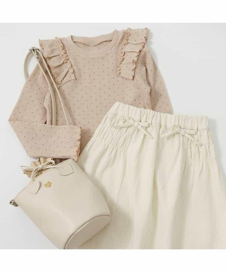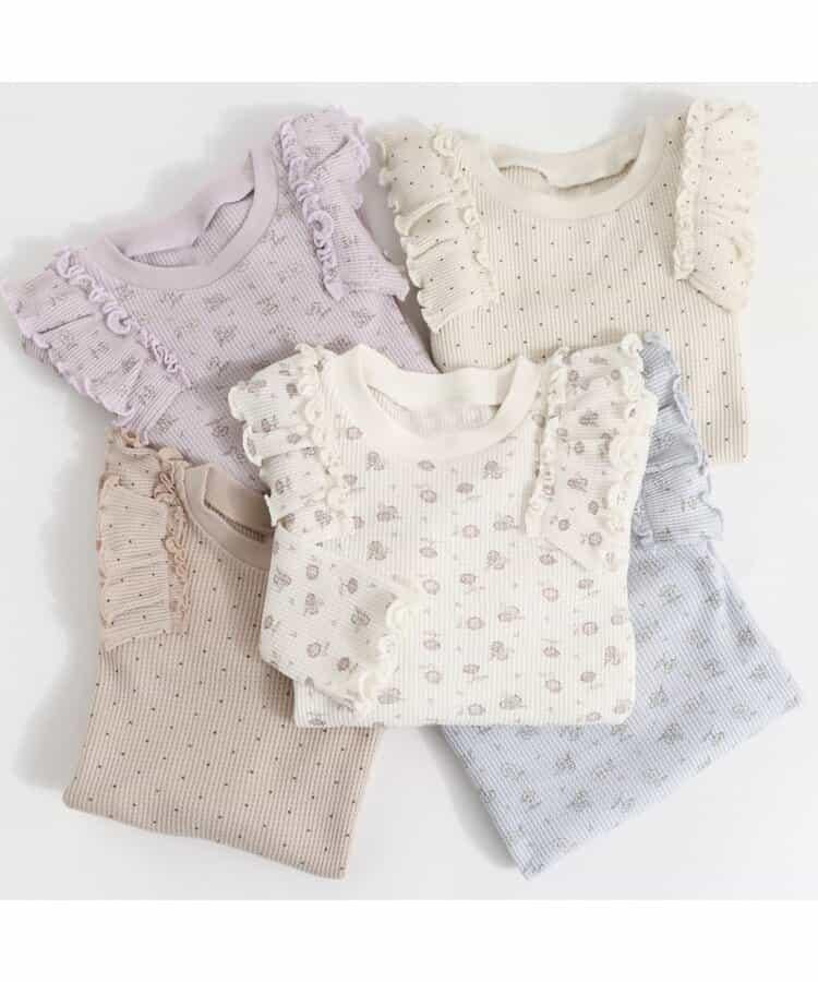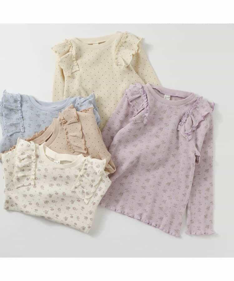 apres les cours 長袖 T 恤 "肩部褶皺華夫格 T 恤 "是一款時尚單品,為自然風格*增添了微妙的設計。