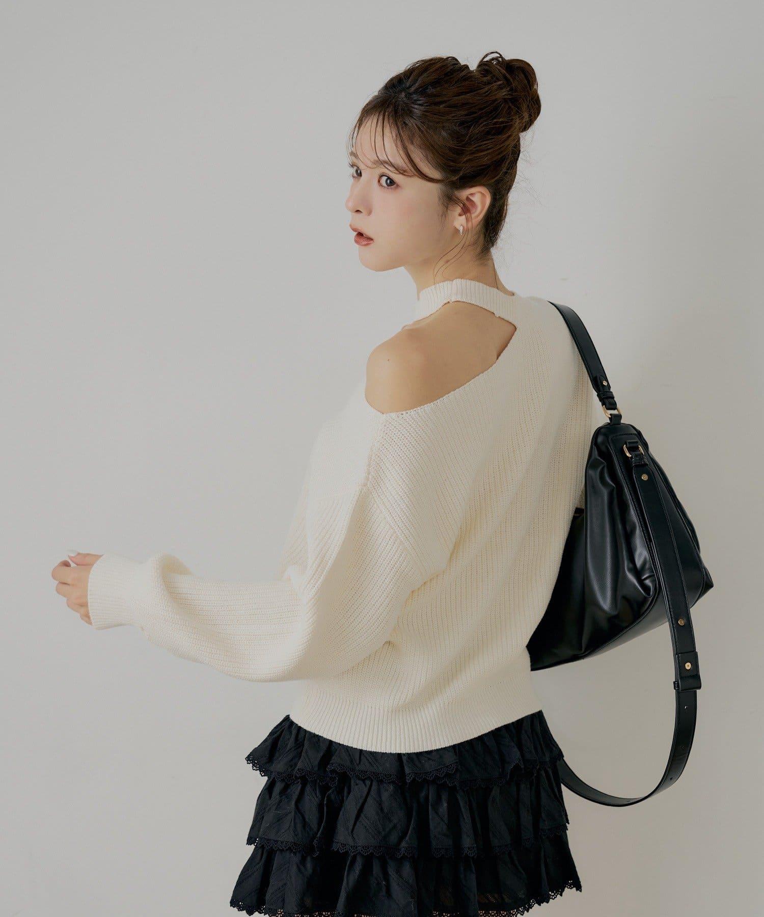 肩部開衩露肩針織衫,以優雅的方式展現你的肌膚!