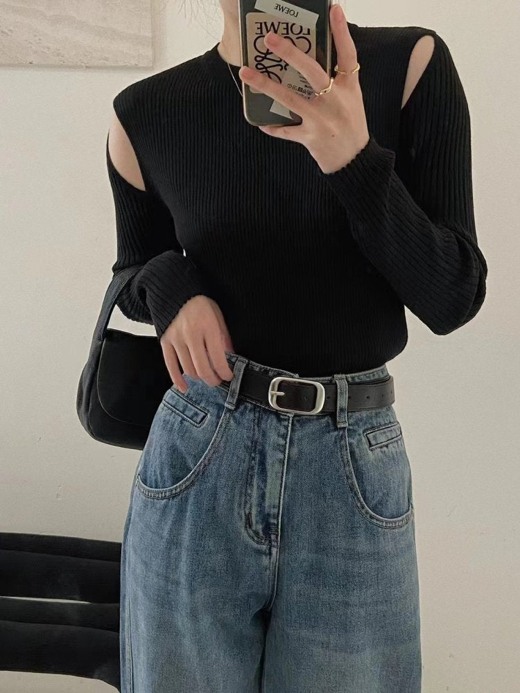 羅紋針織衫的兩肩都有開衩,因此推薦給那些想給自己的搭配來點變化的人。