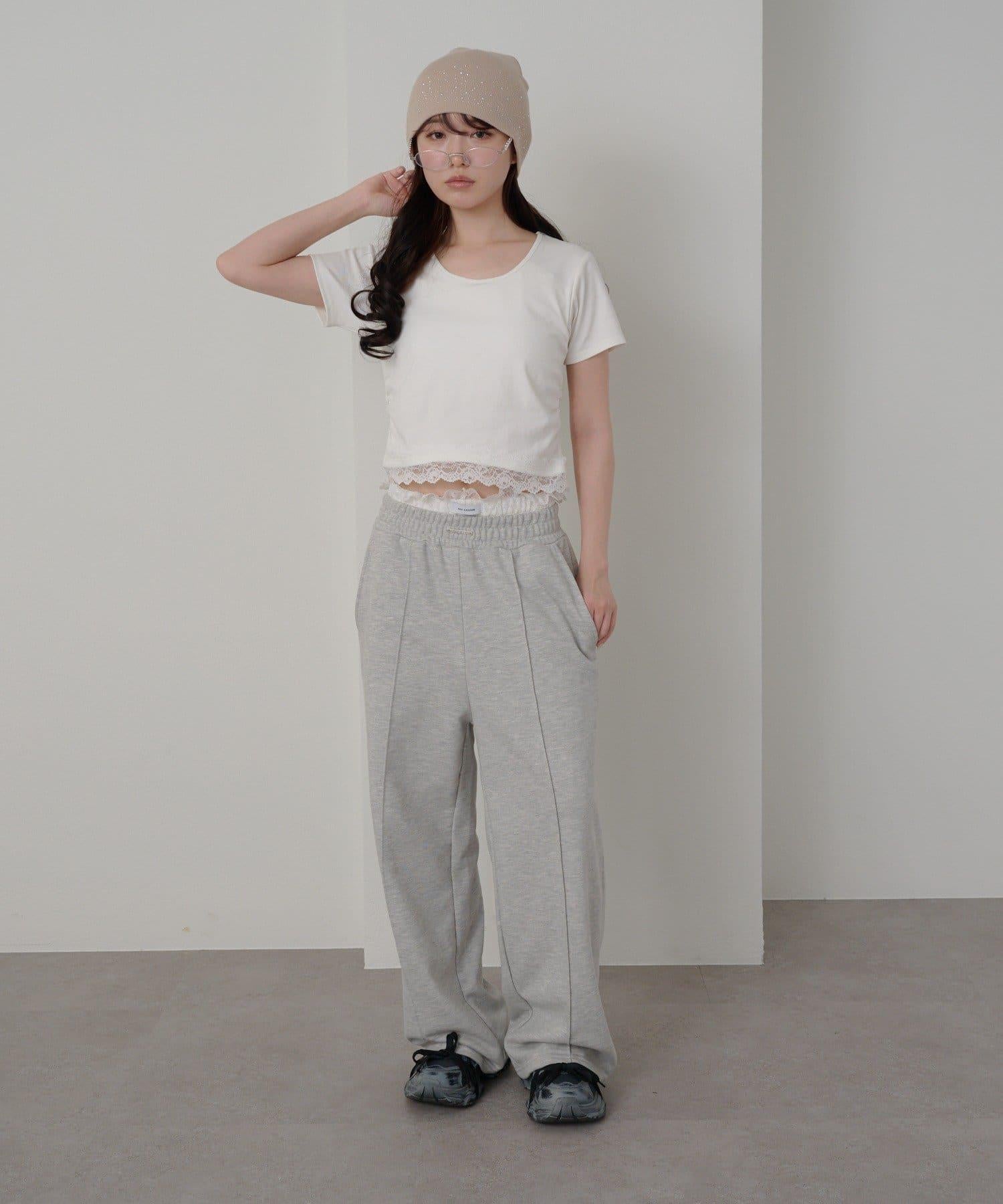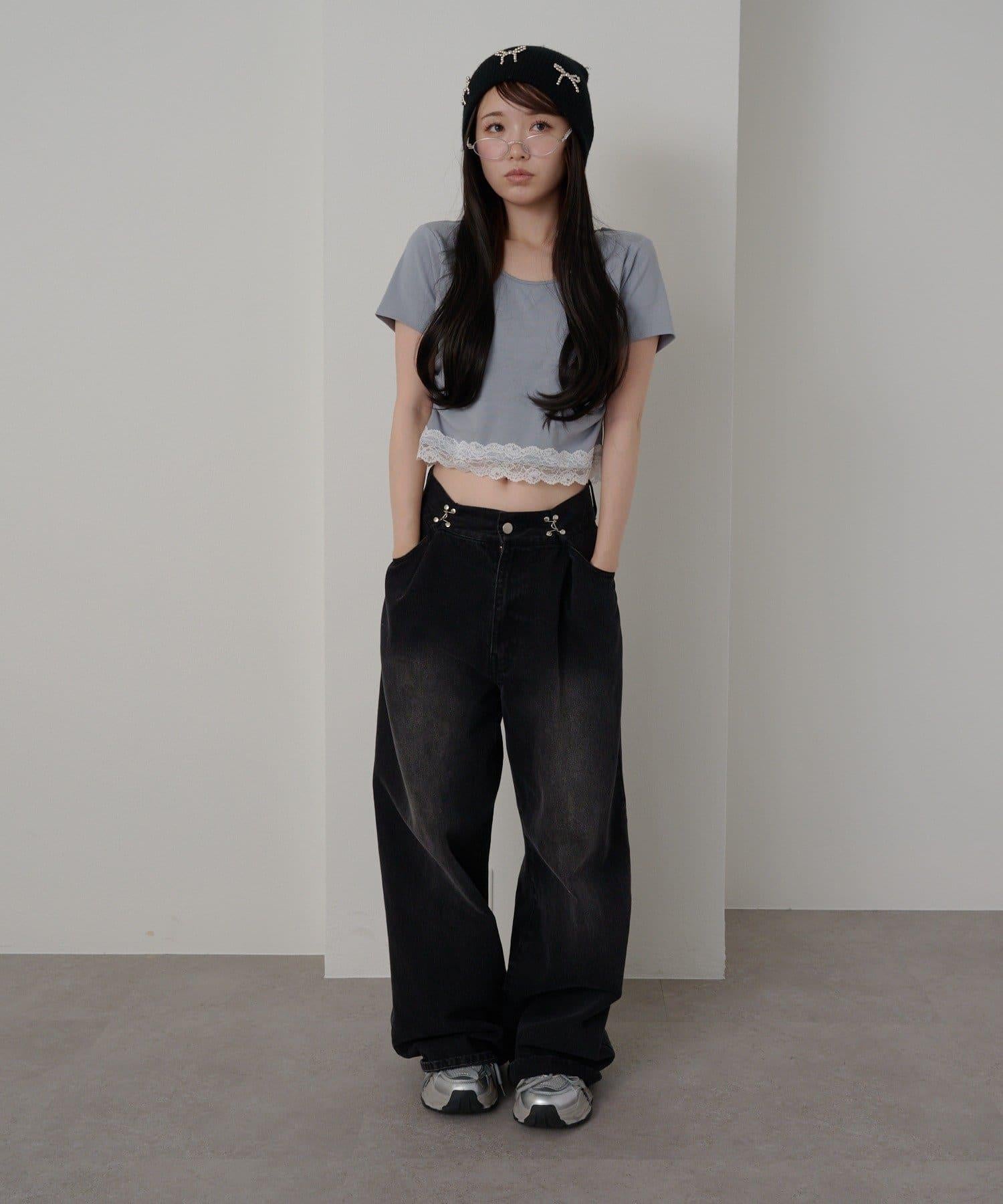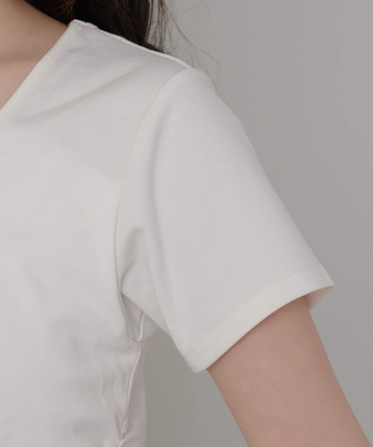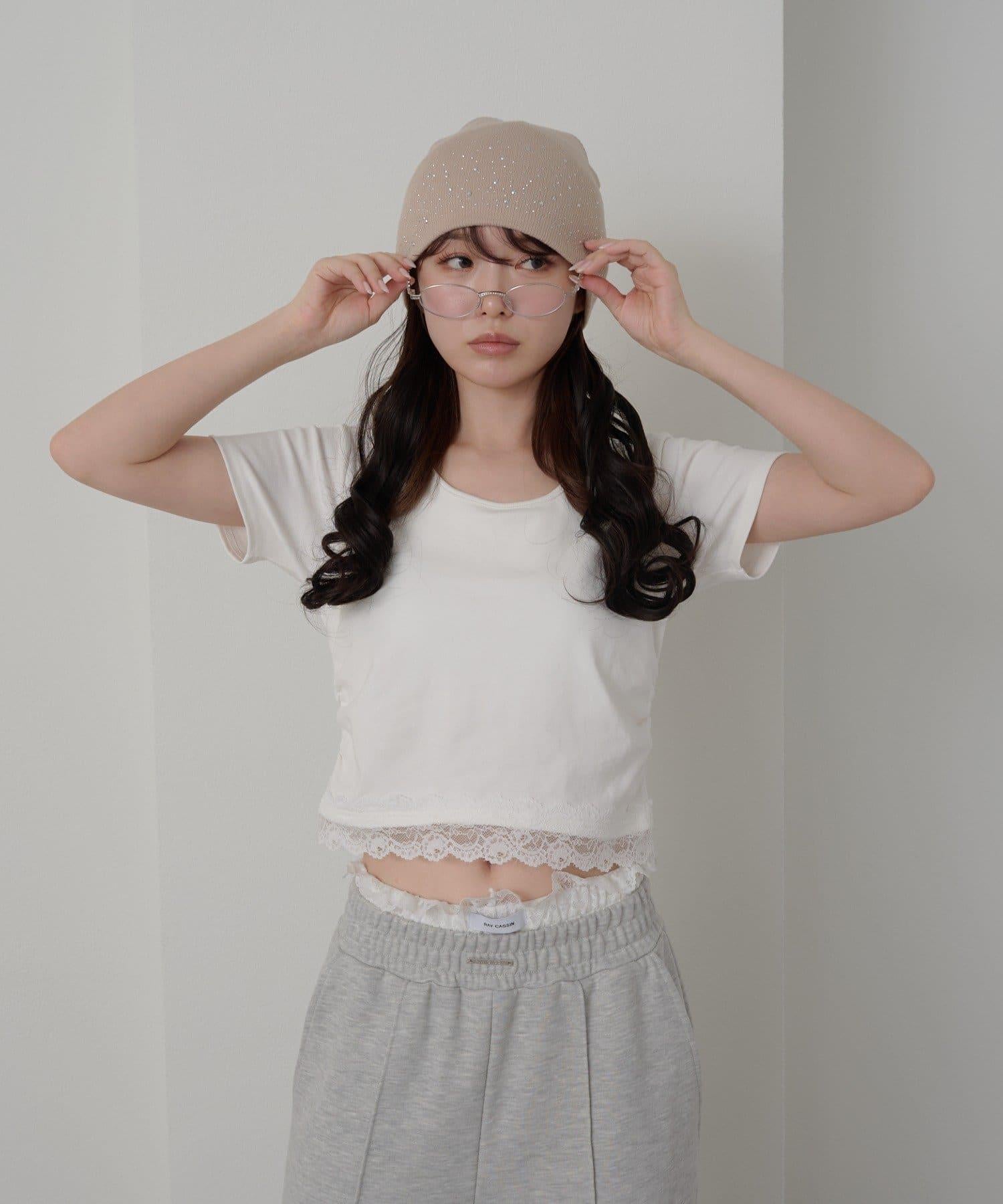 這是一款後背帶有蕾絲花邊的 T 恤,給人一種女性化的寬鬆感覺。