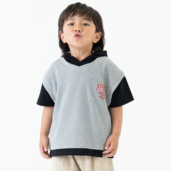 背心疊穿短袖連帽衛衣