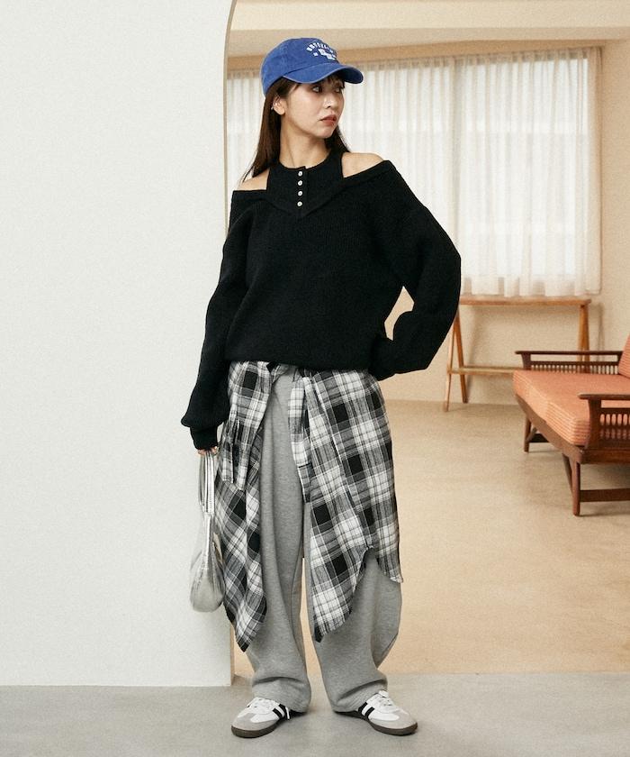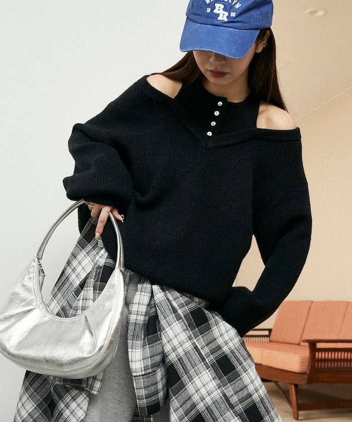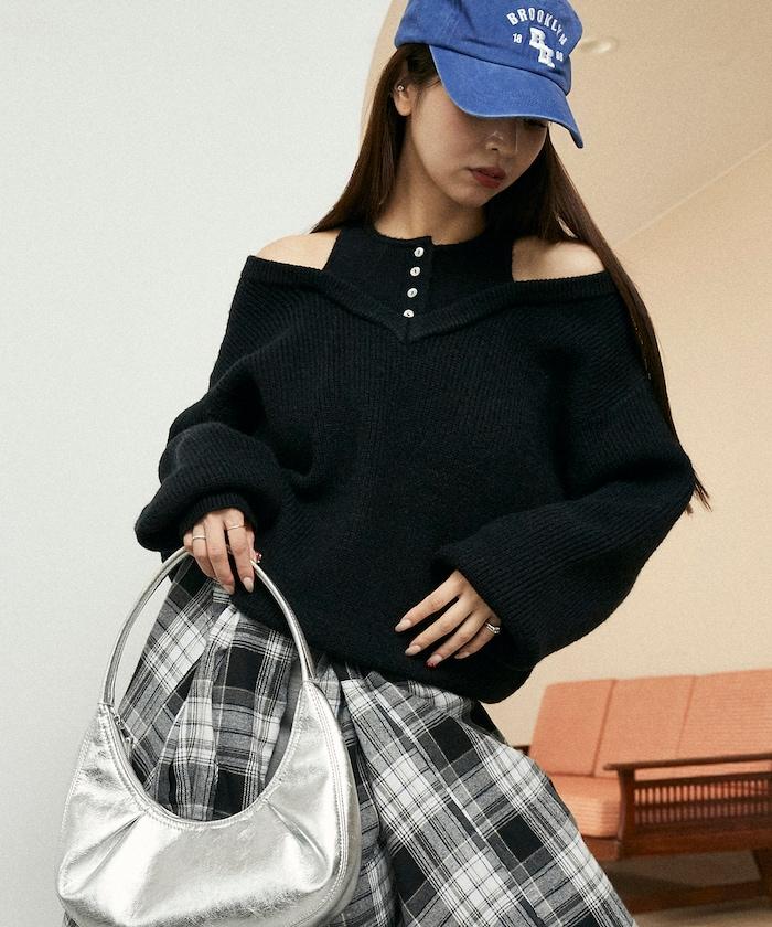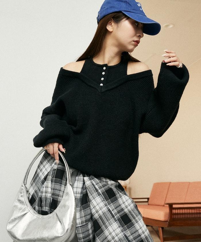 這款針織衫採用多層次設計,是全場的主角。