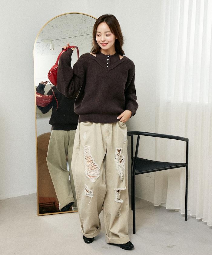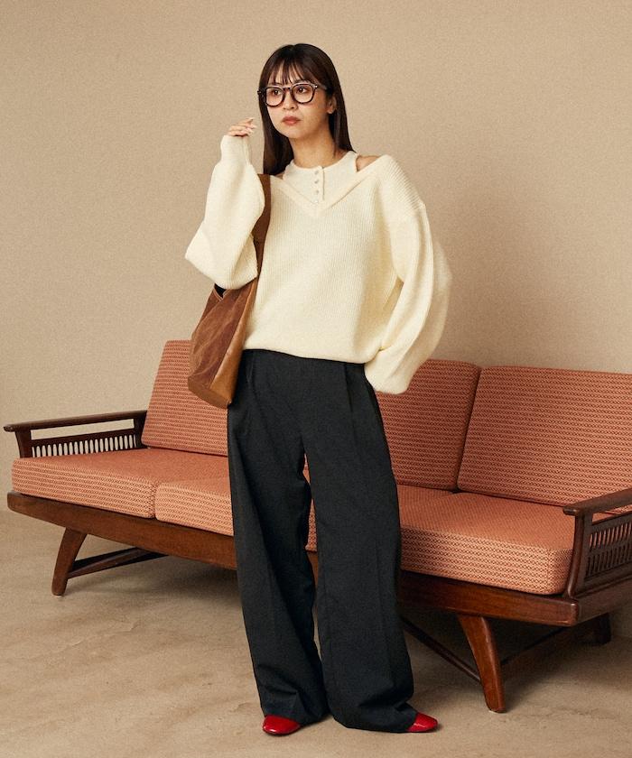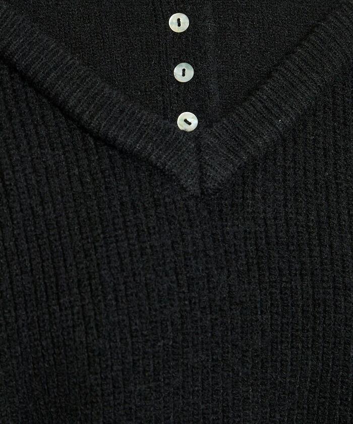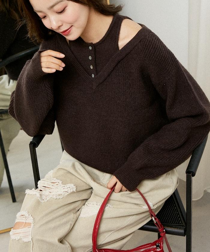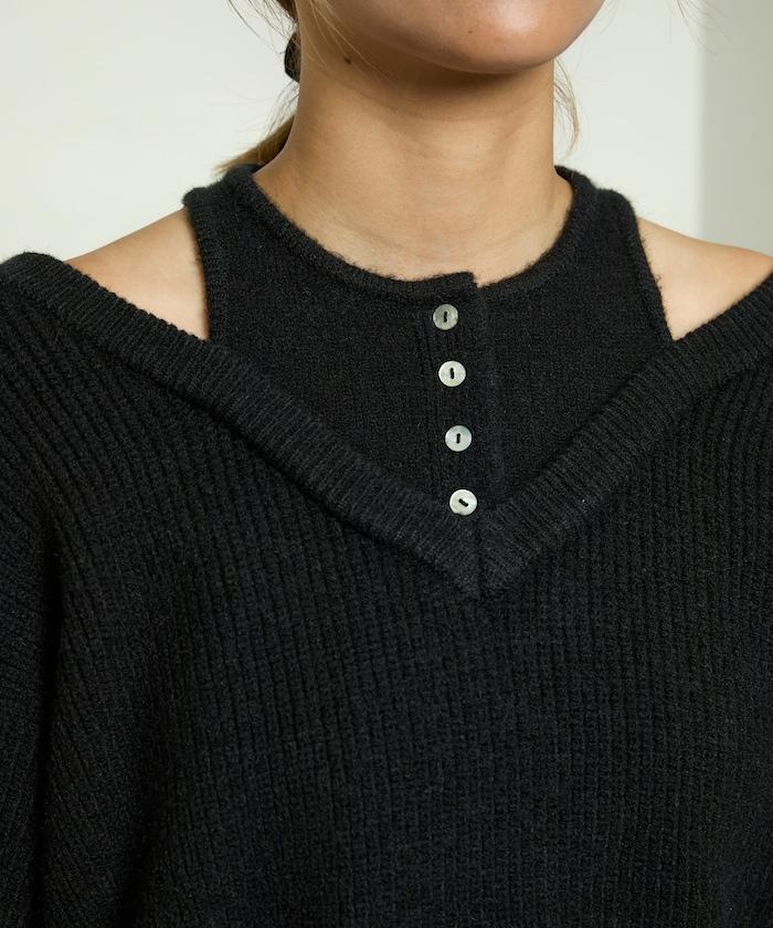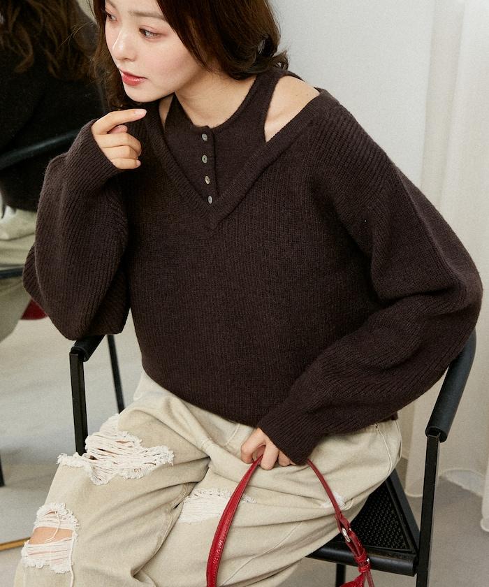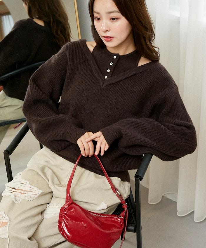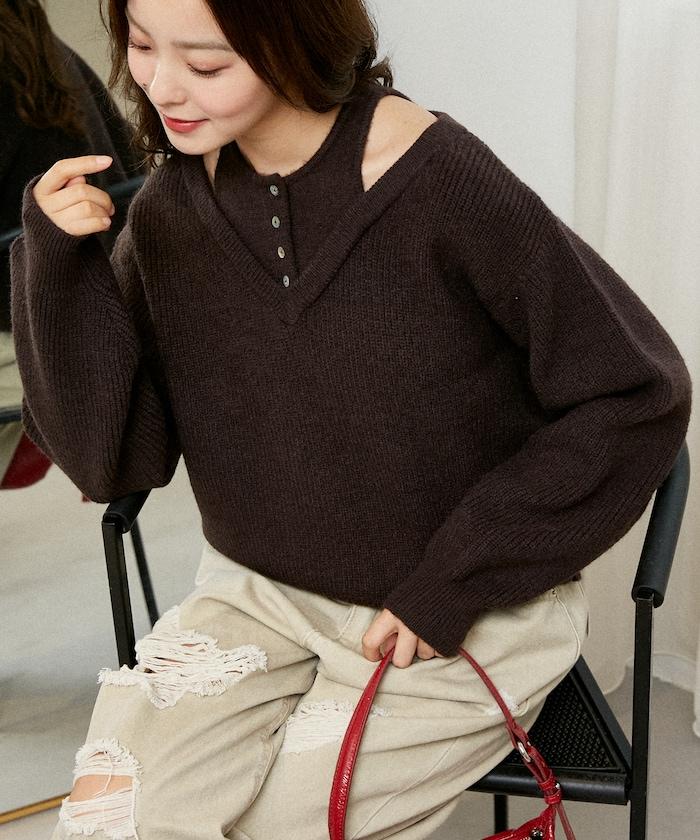 背心疊穿風格亨利領開口針織套頭衫