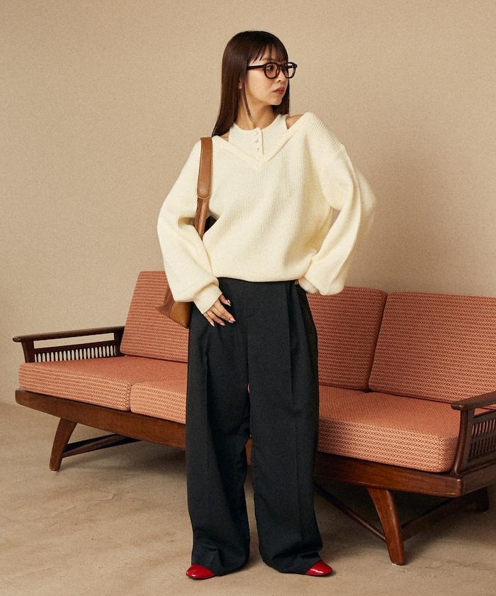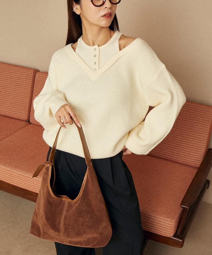 背心和 V 領針織衫疊穿的設計,讓您只需一件單品就能完成時尚造型。