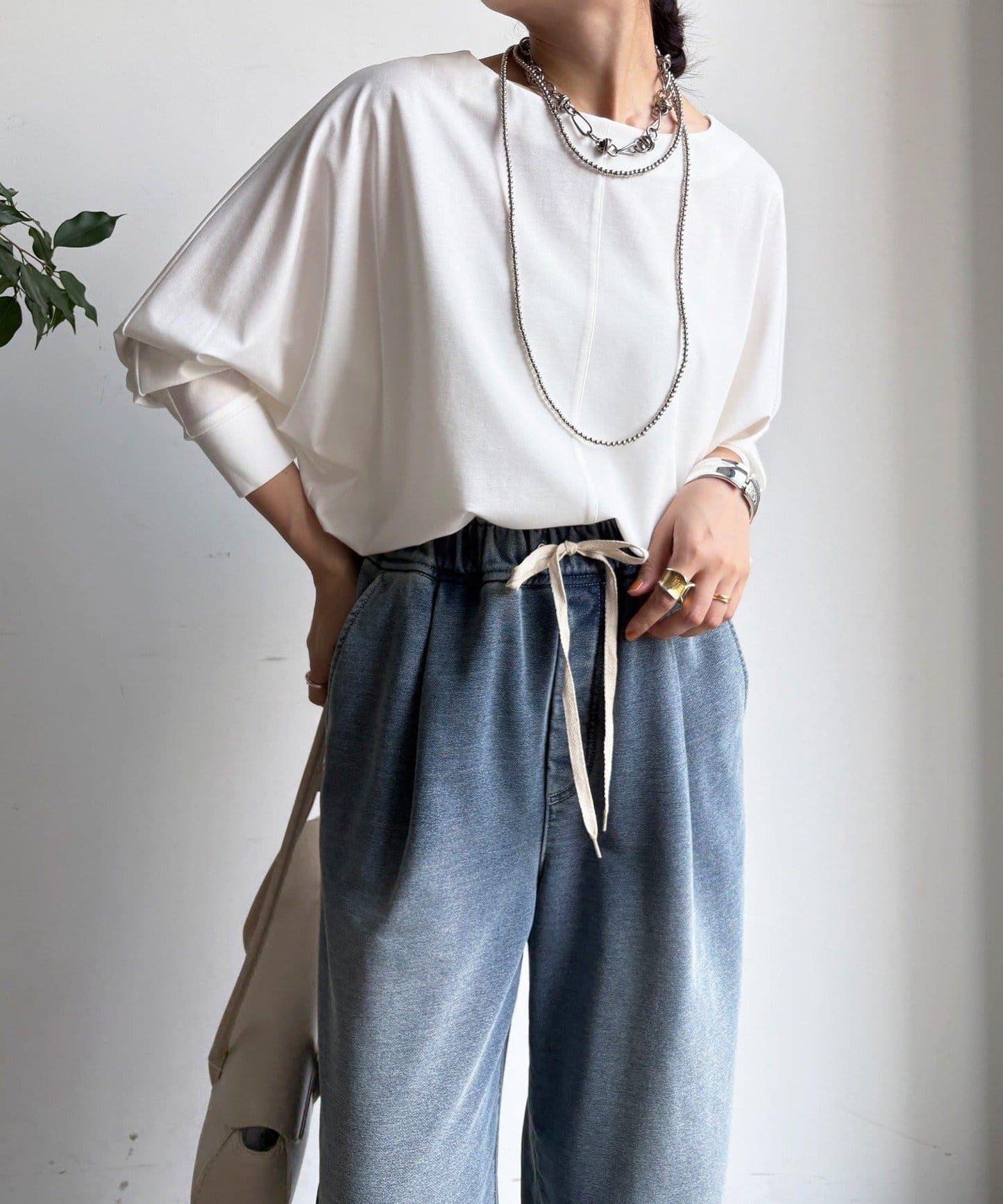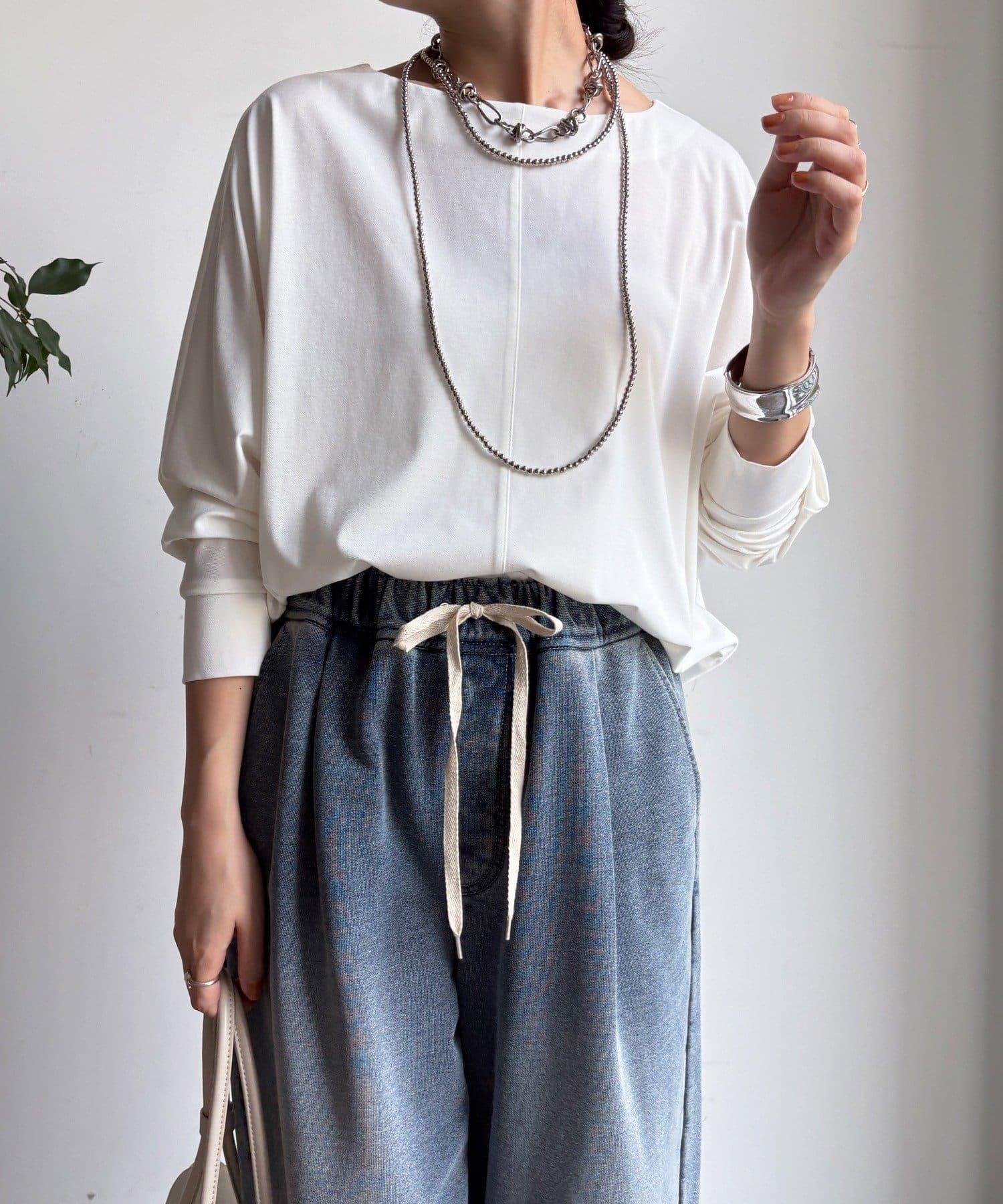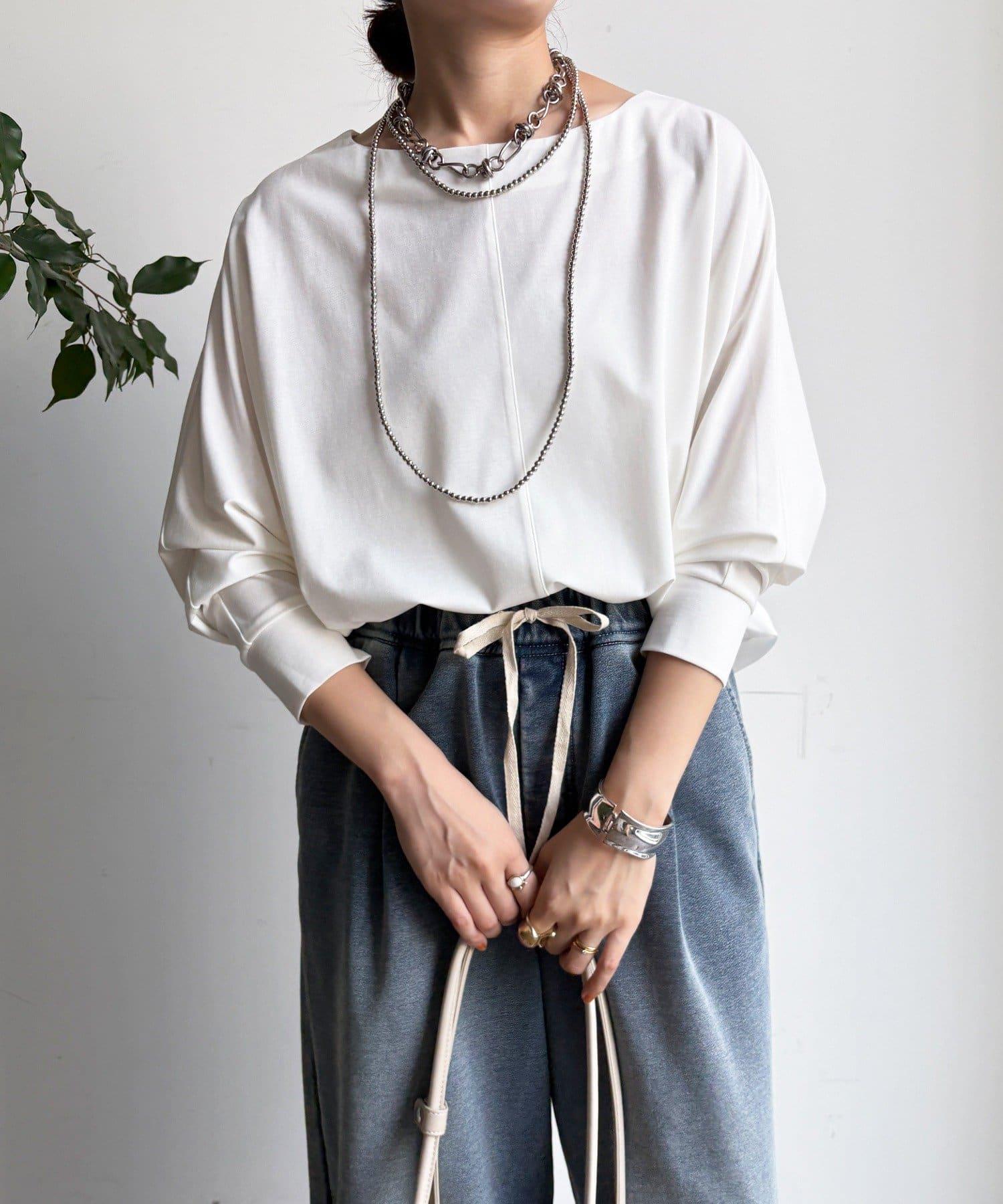 簡單的 T 恤,巧妙的開關和背部開衩設計,時尚感十足。