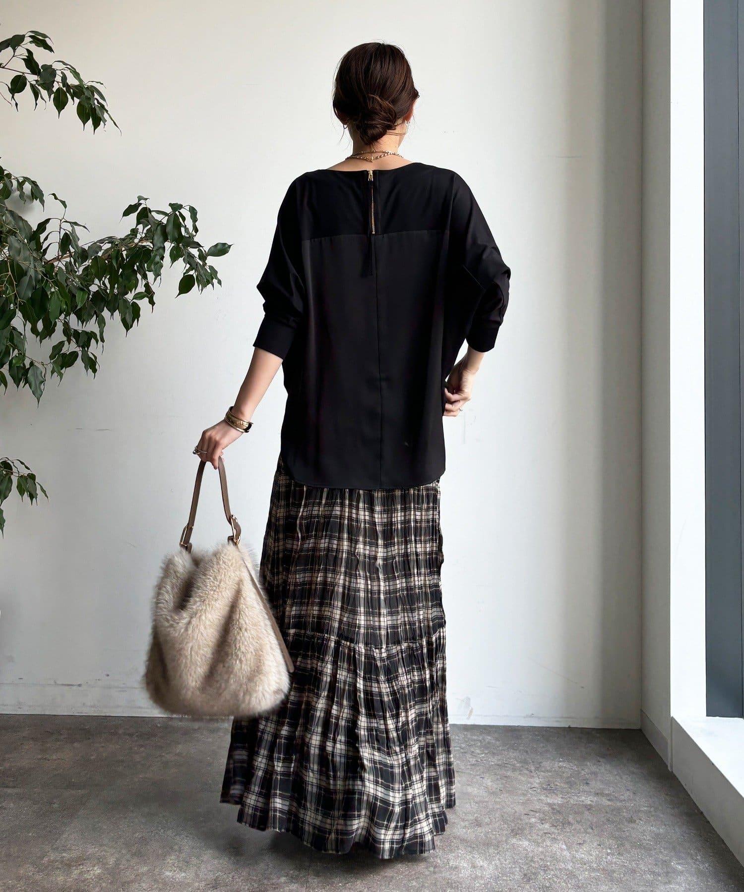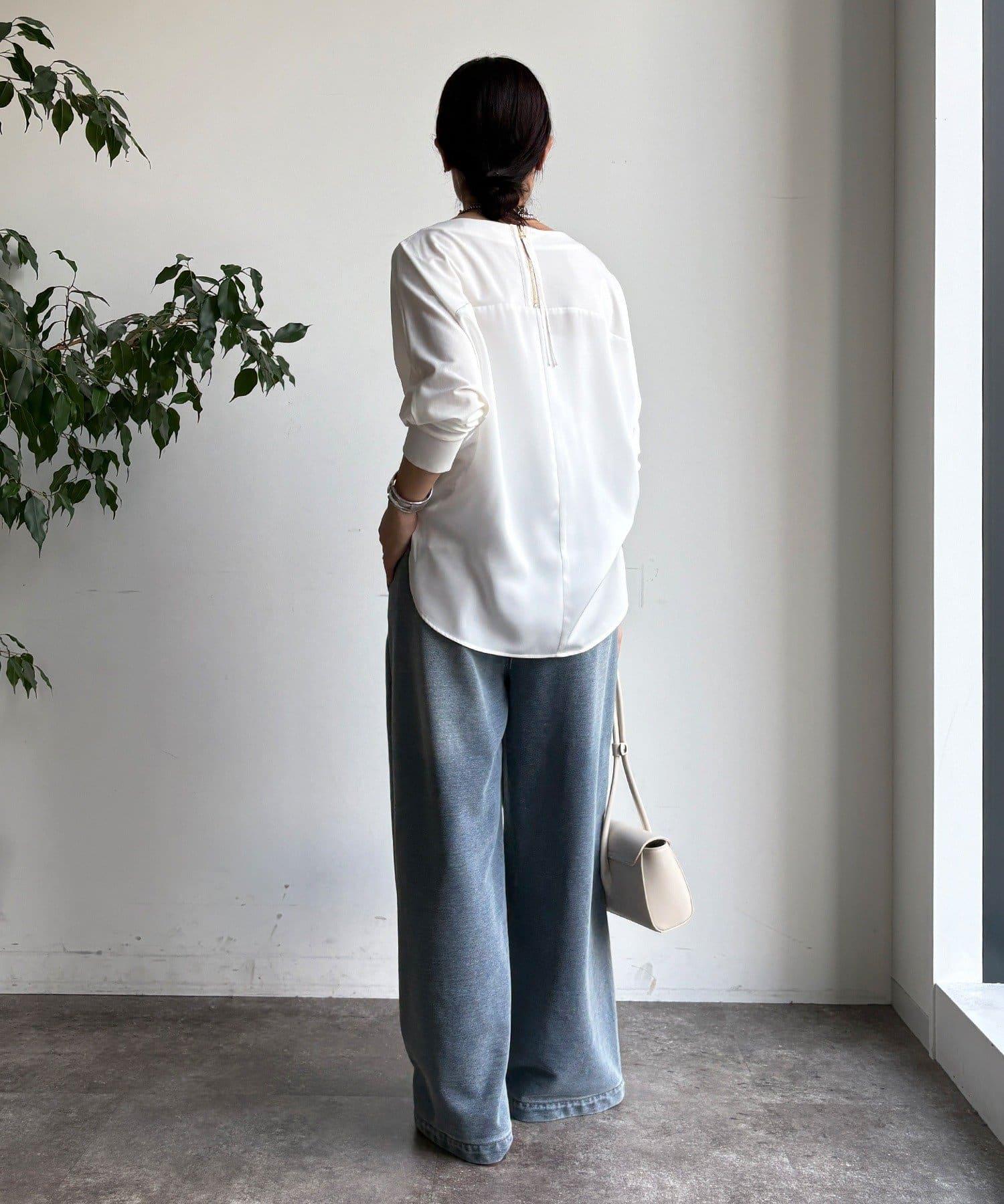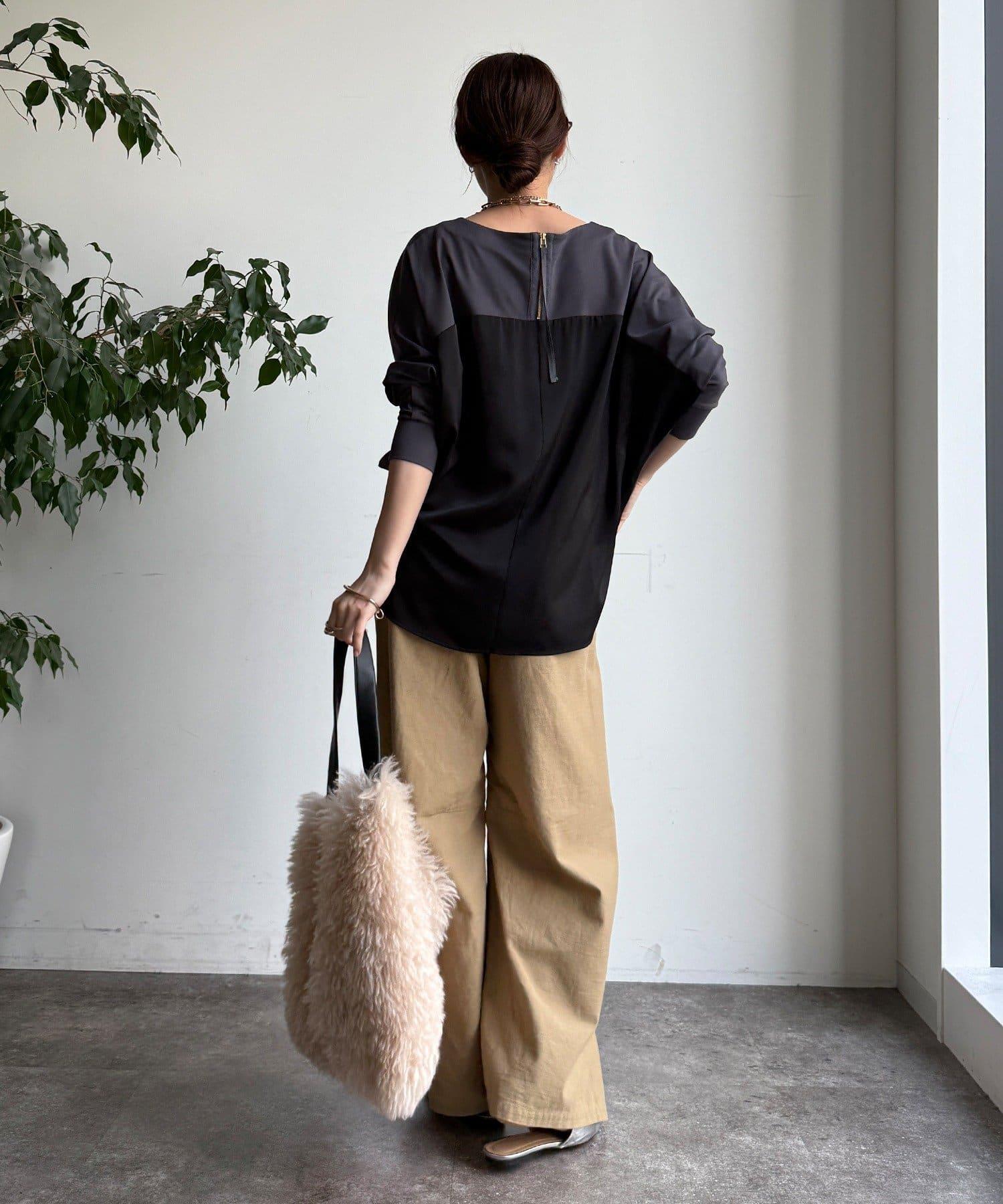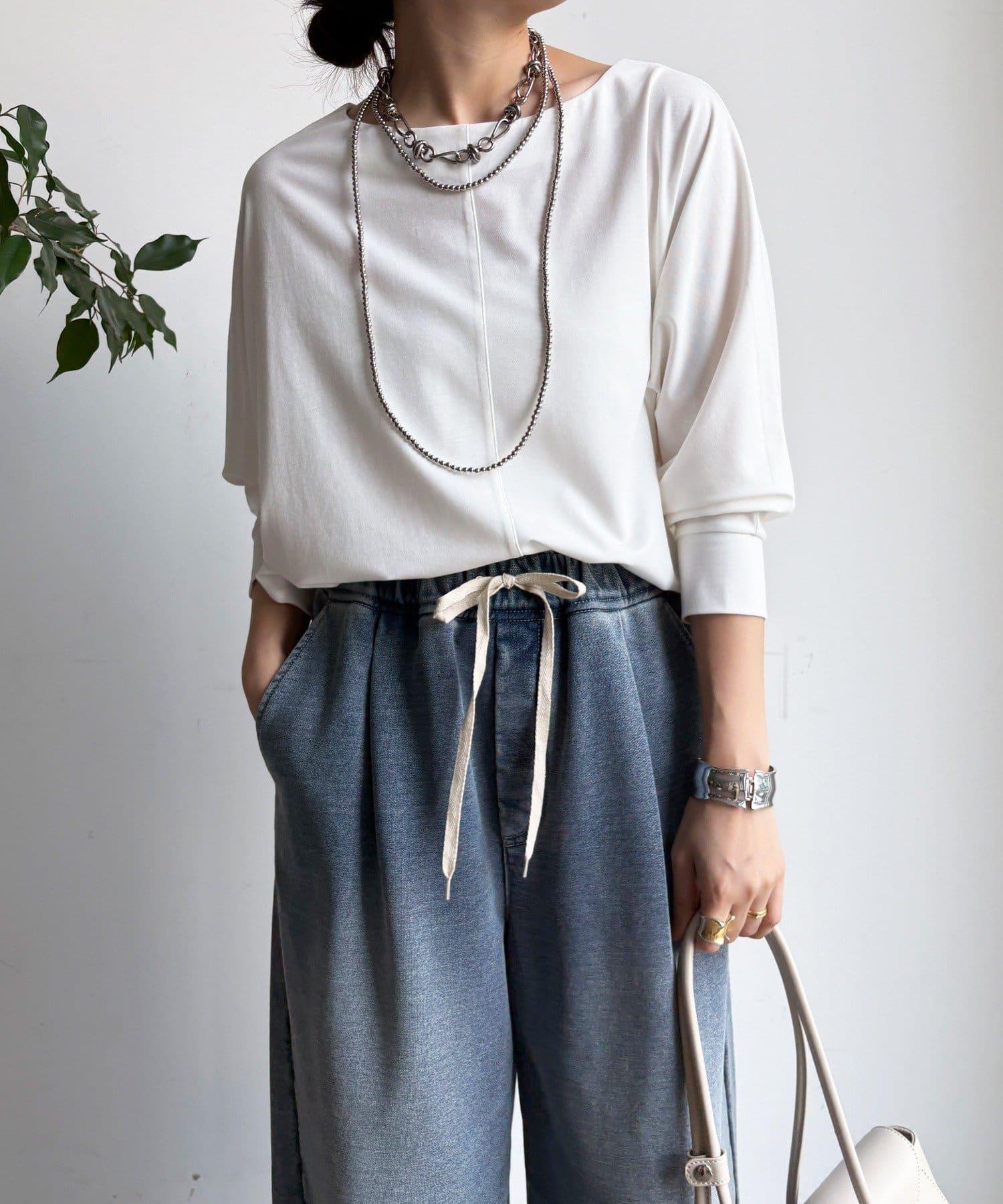 簡單的 T 恤,巧妙的開關和背部開衩設計,時尚感十足。