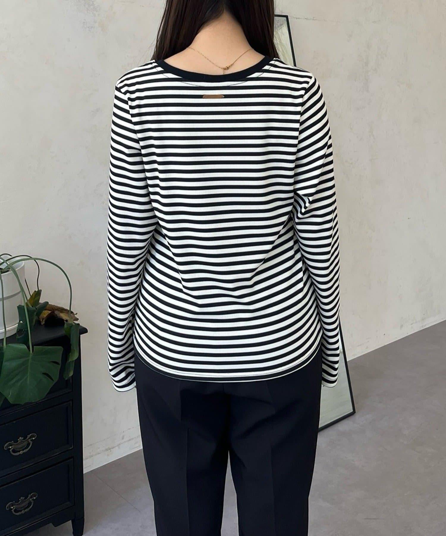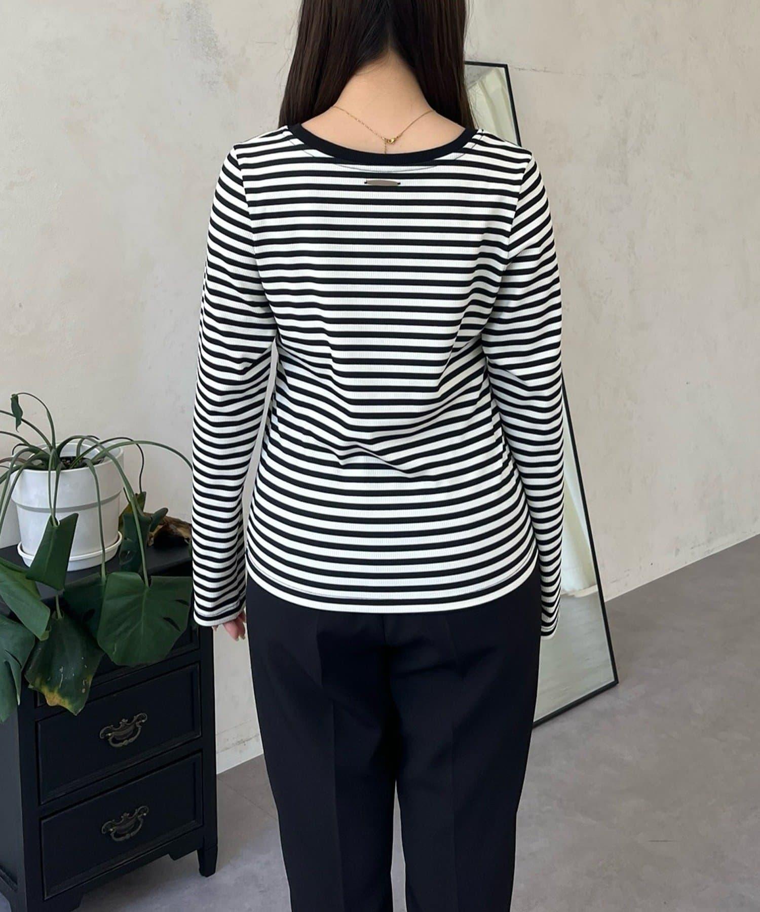 背部金屬條紋羅紋長袖T恤