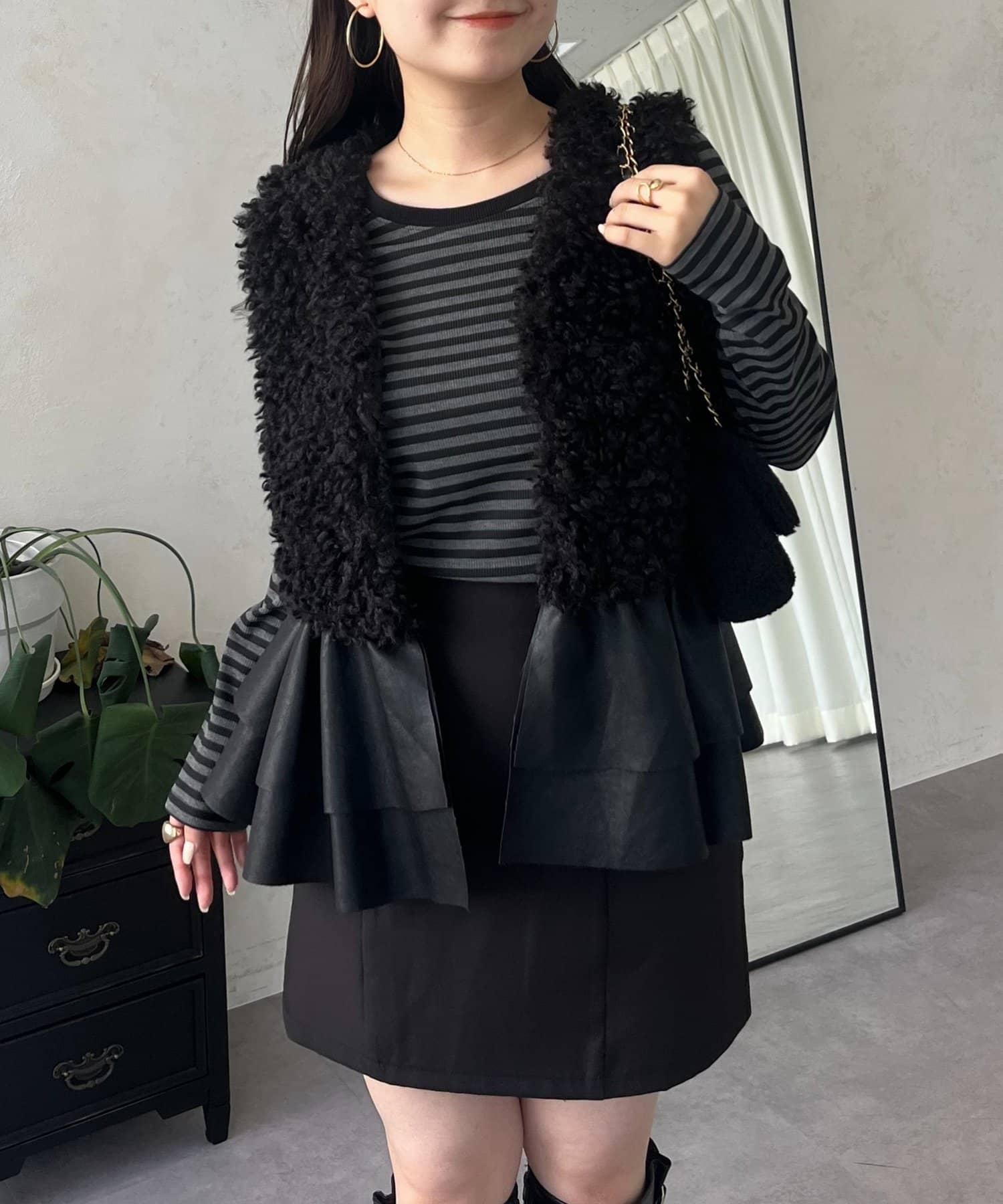 羅紋裁剪縫製的面料帶有些許彈力,給人一種成熟的感覺。