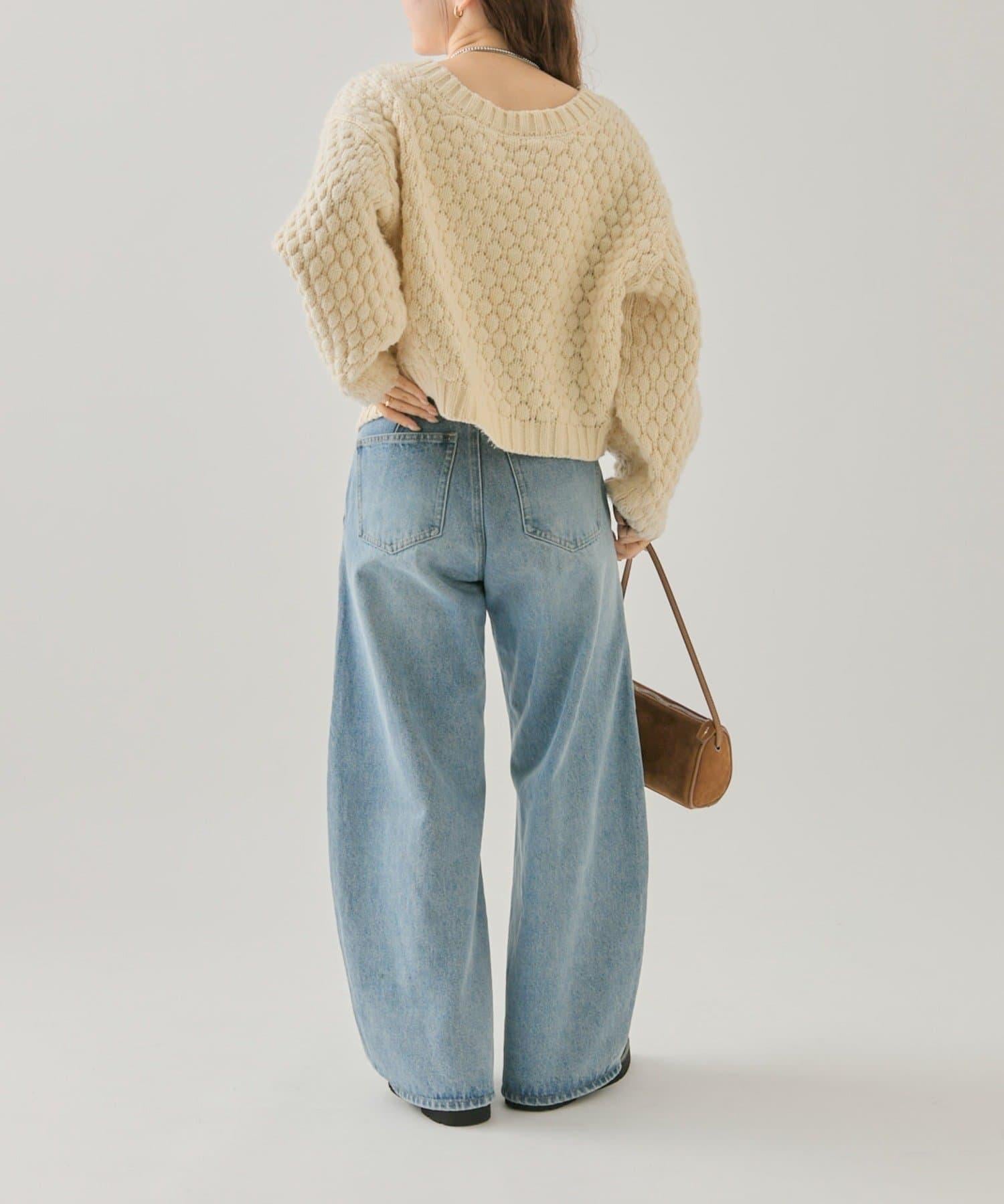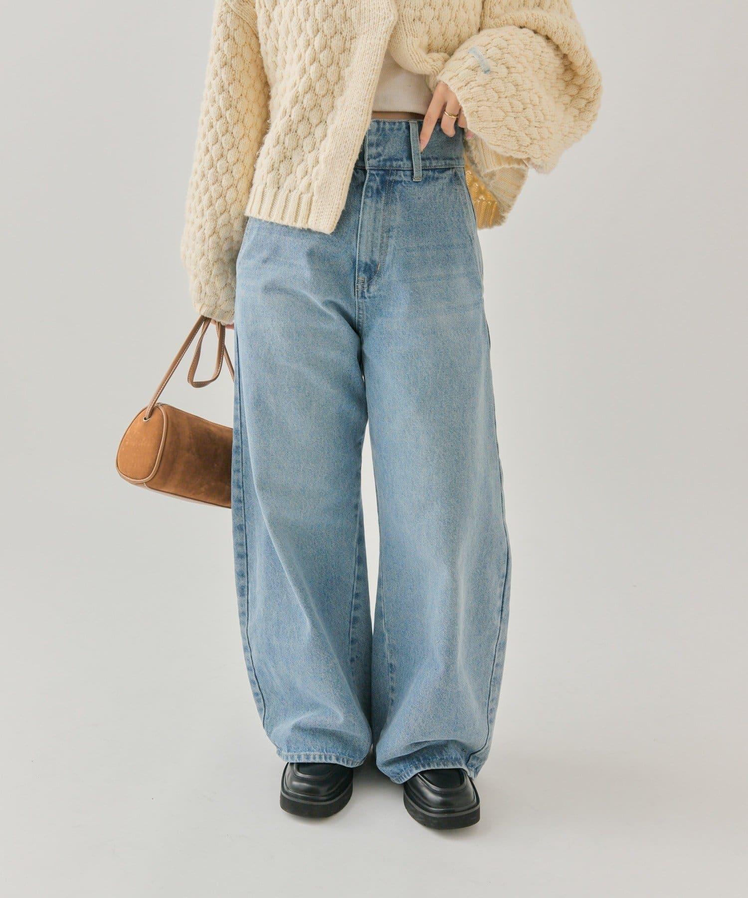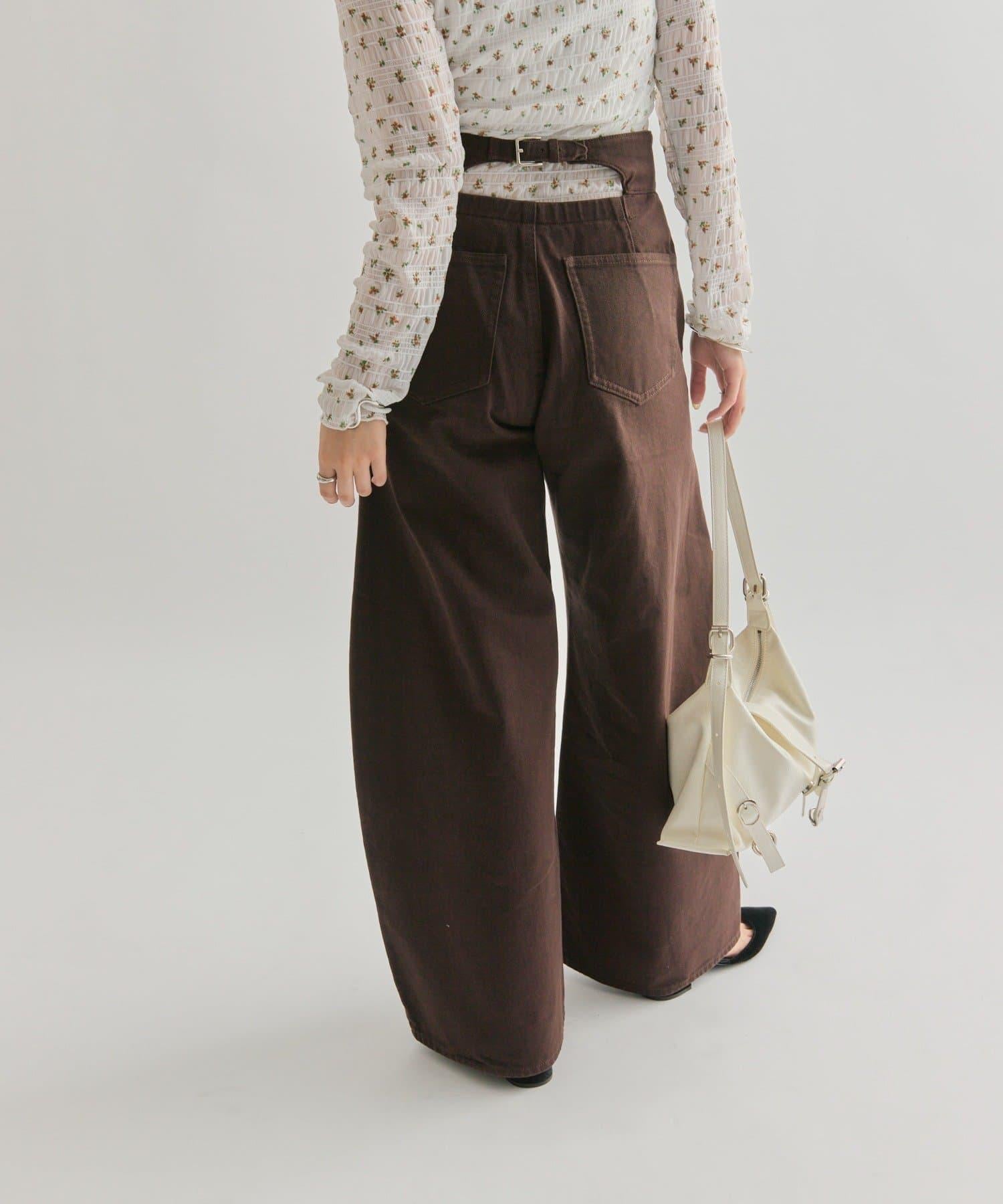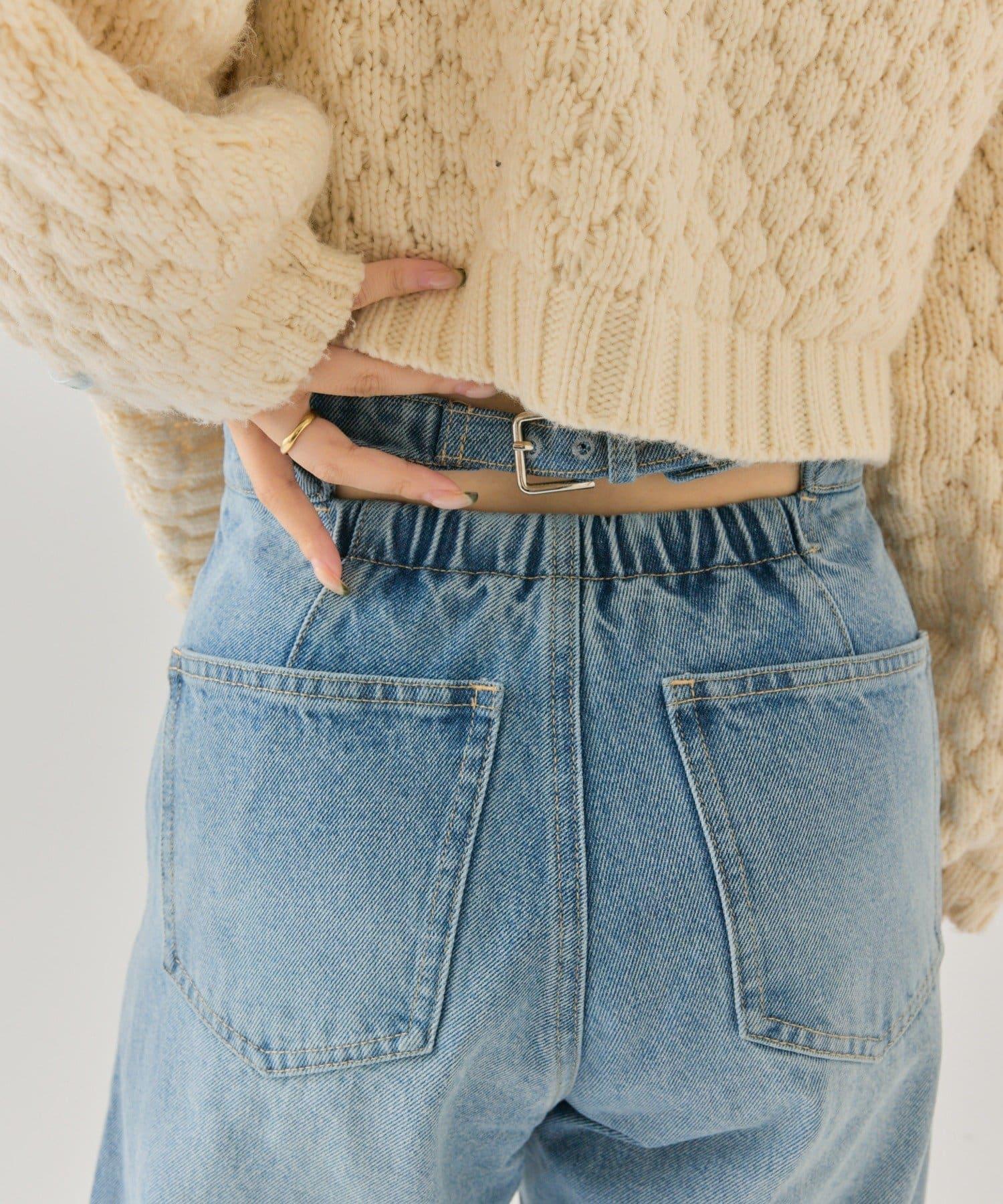 這款牛仔褲的背面有設計,因此可以搭配透視上衣,打造時尚的層次感。