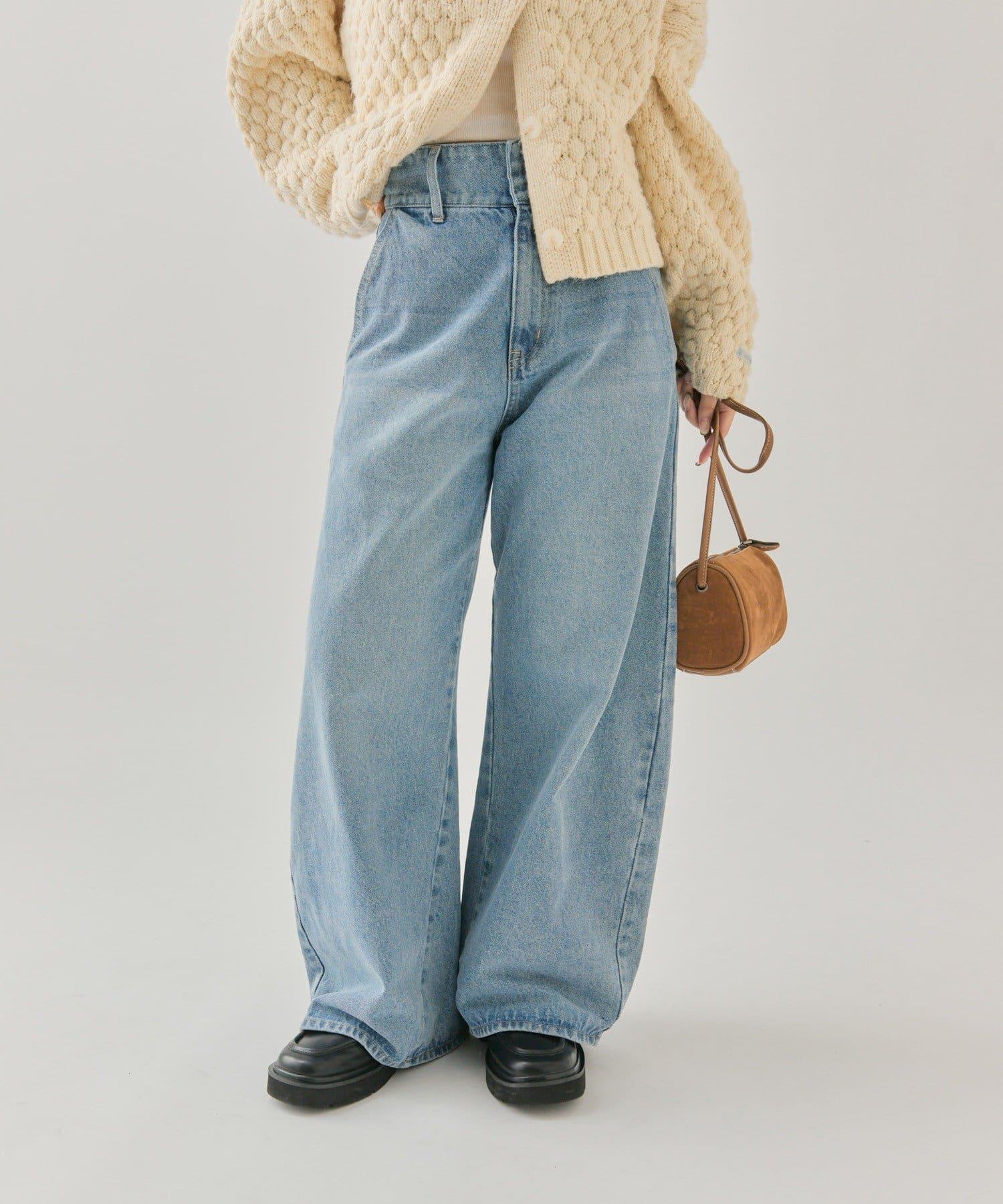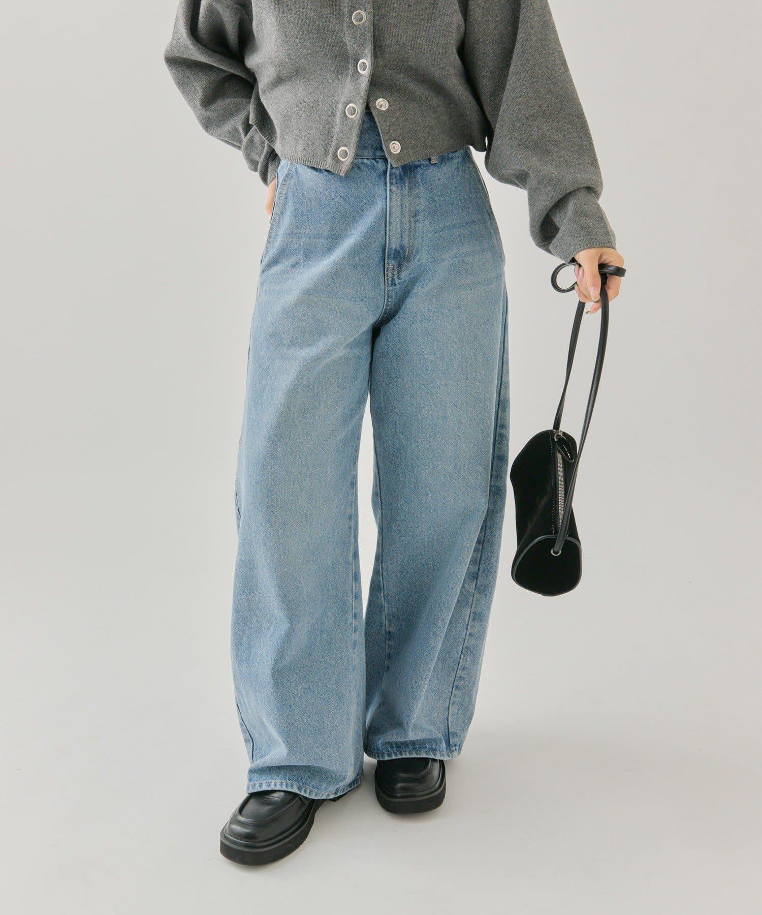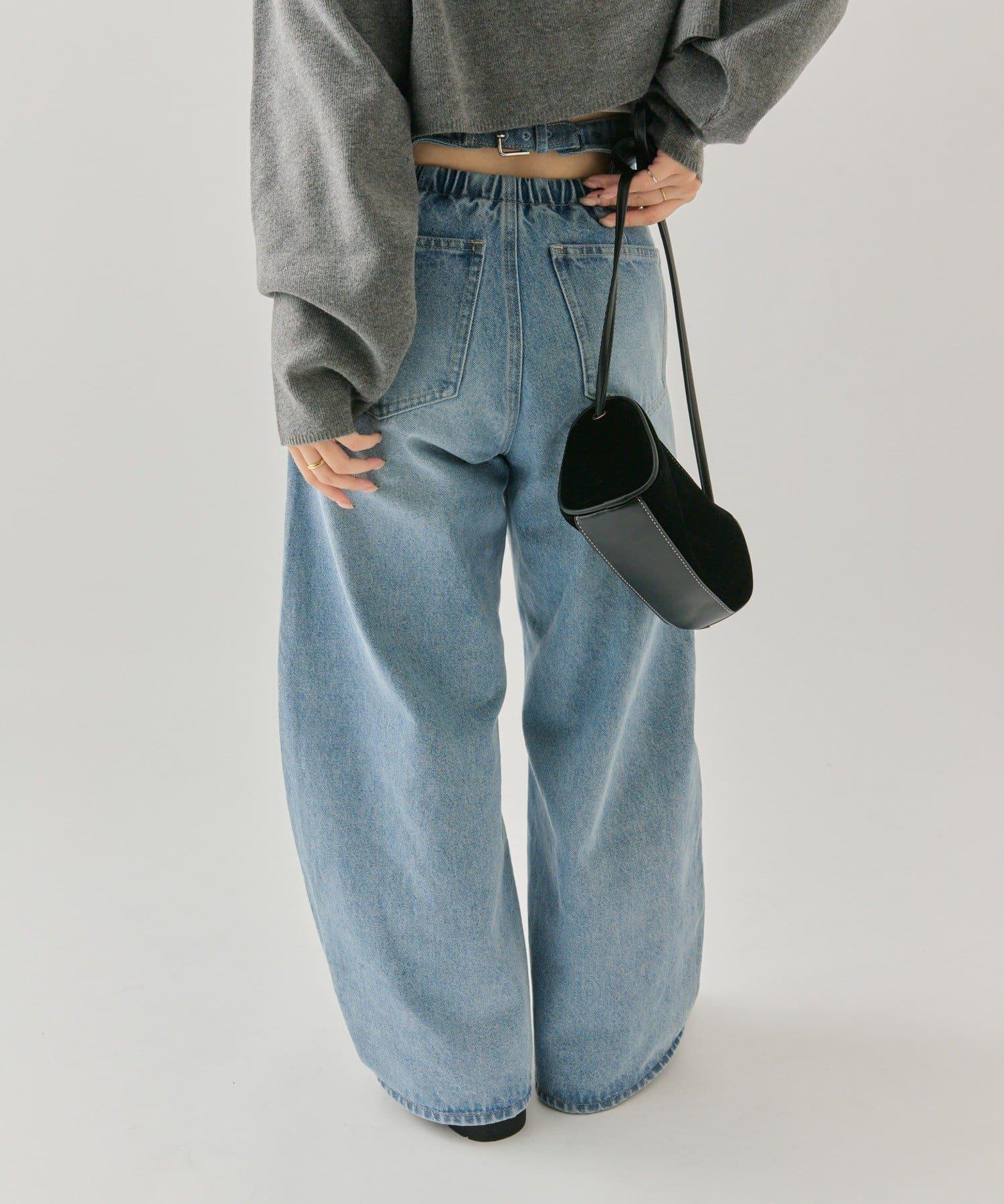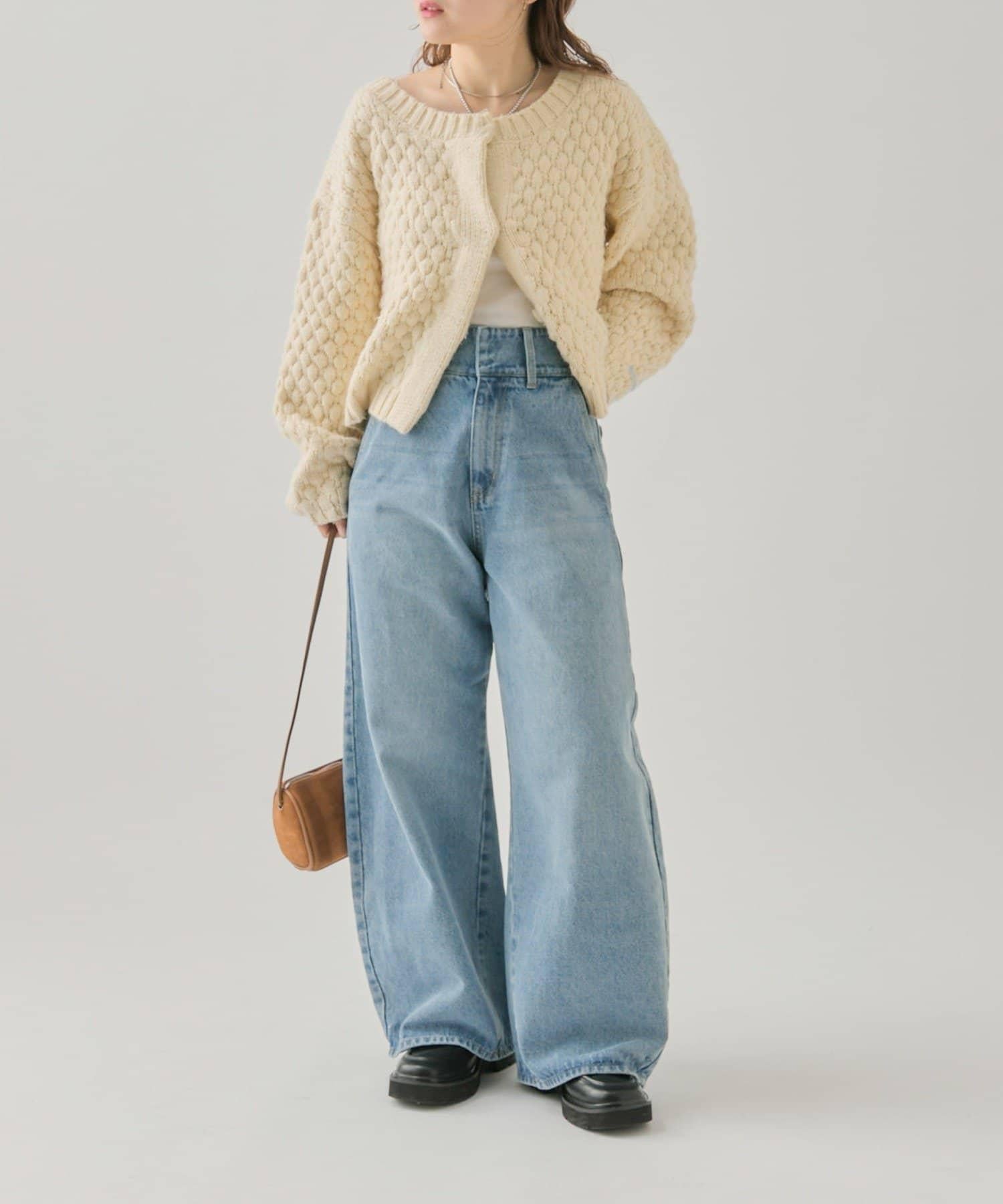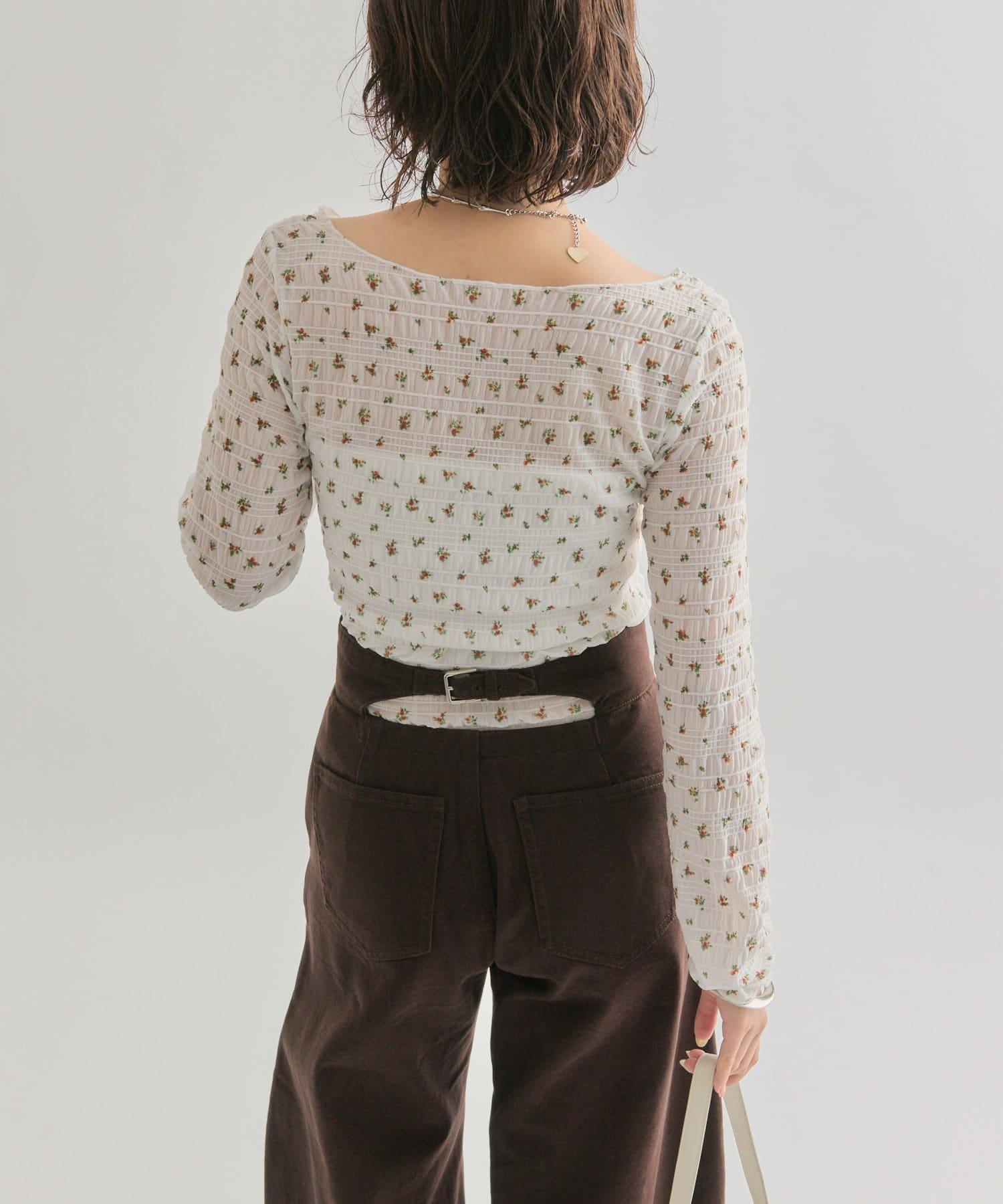 這款牛仔褲的背面有設計,因此可以搭配透視上衣,打造時尚的層次感。