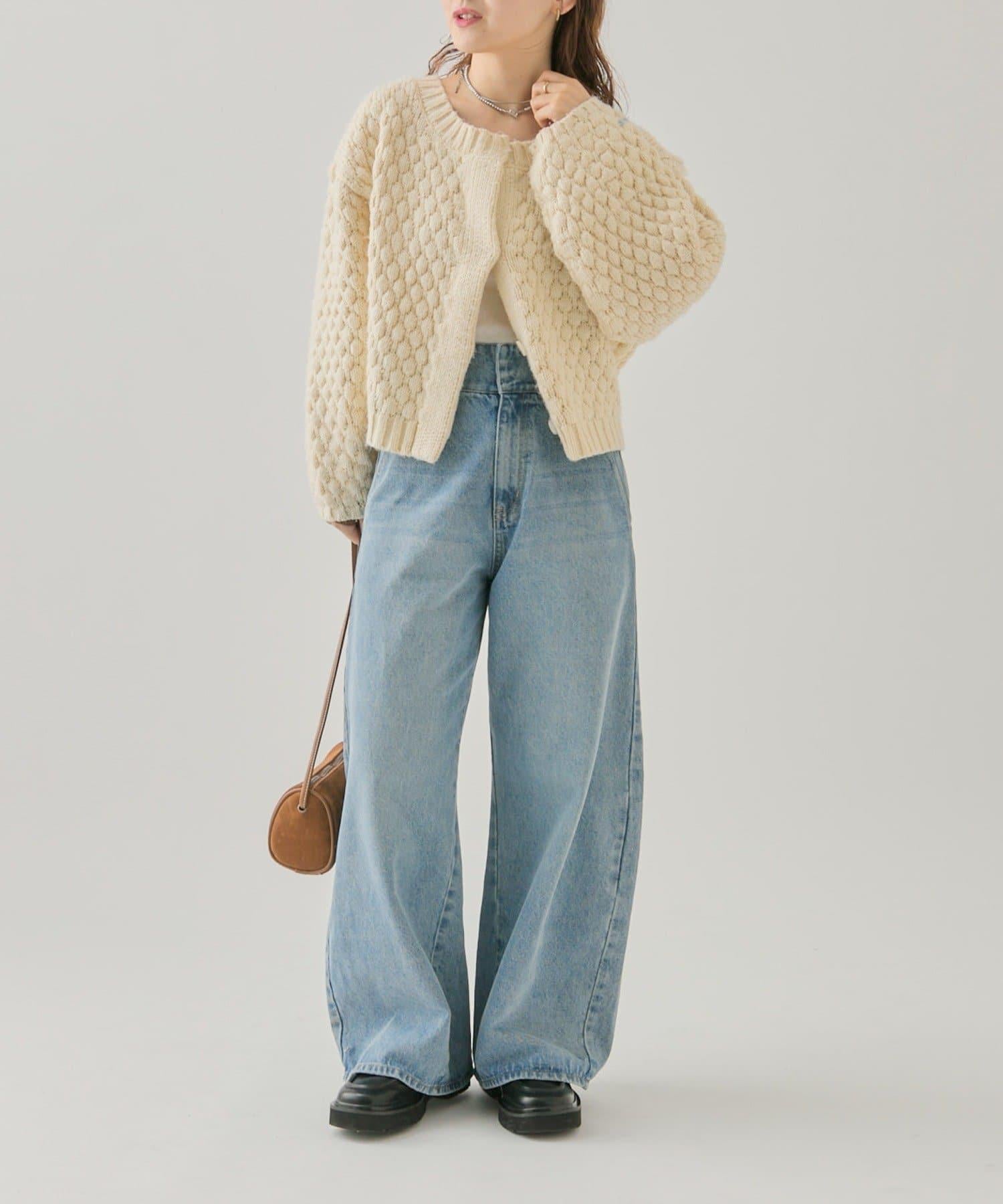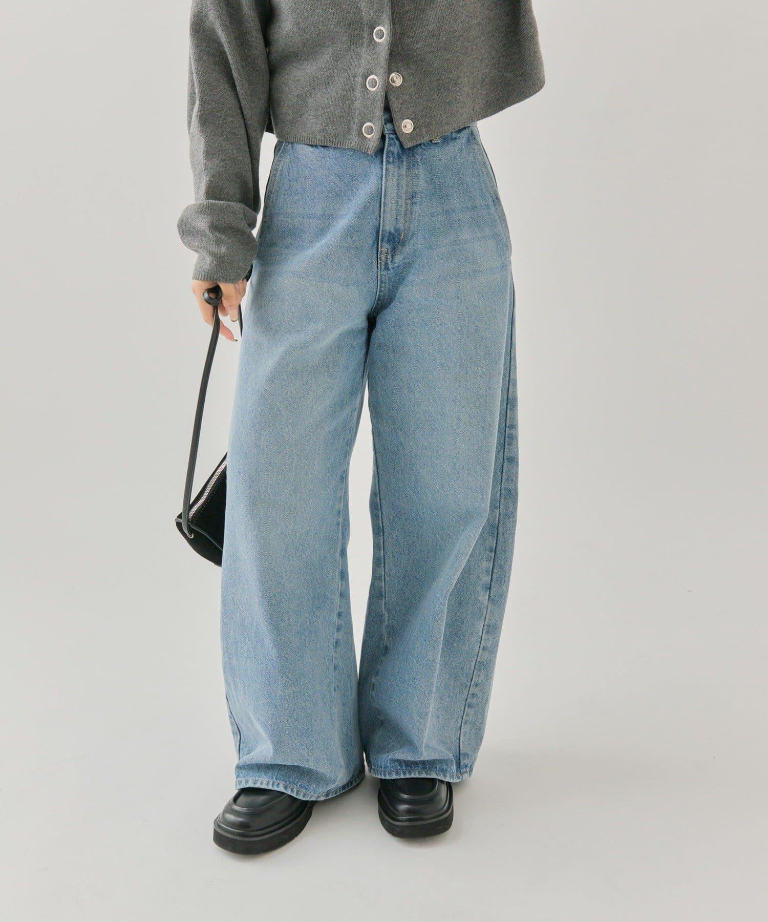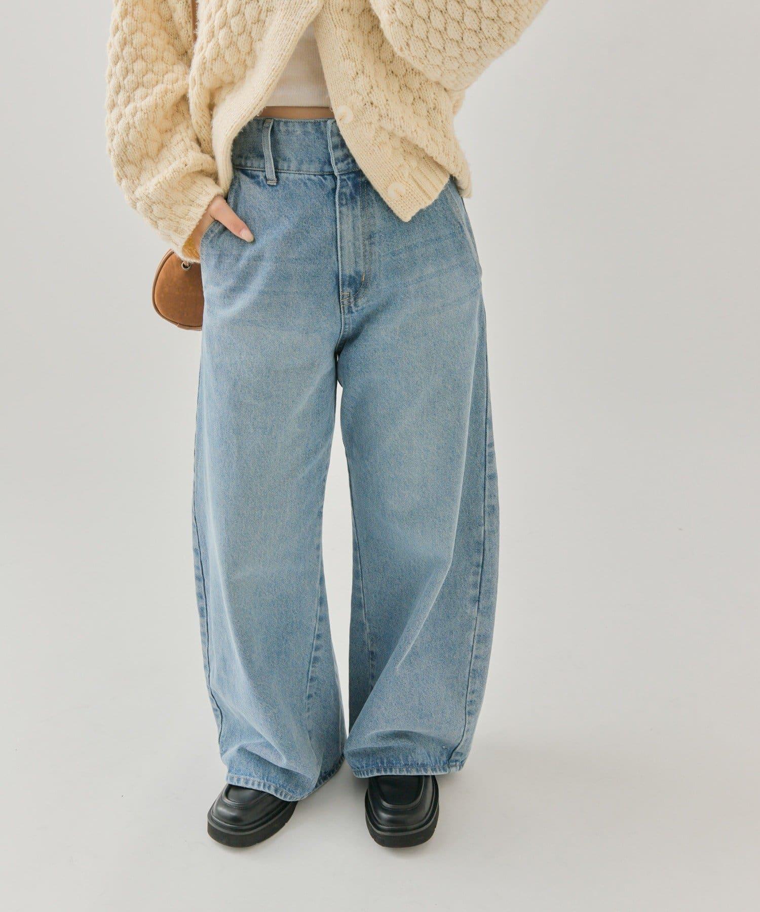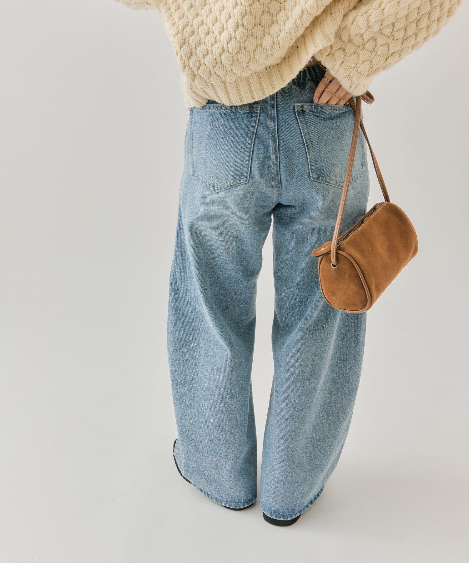 這款牛仔褲的背面有設計,因此可以搭配透視上衣,打造時尚的層次感。