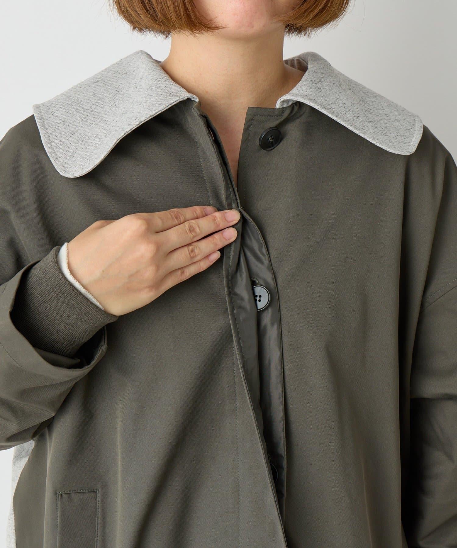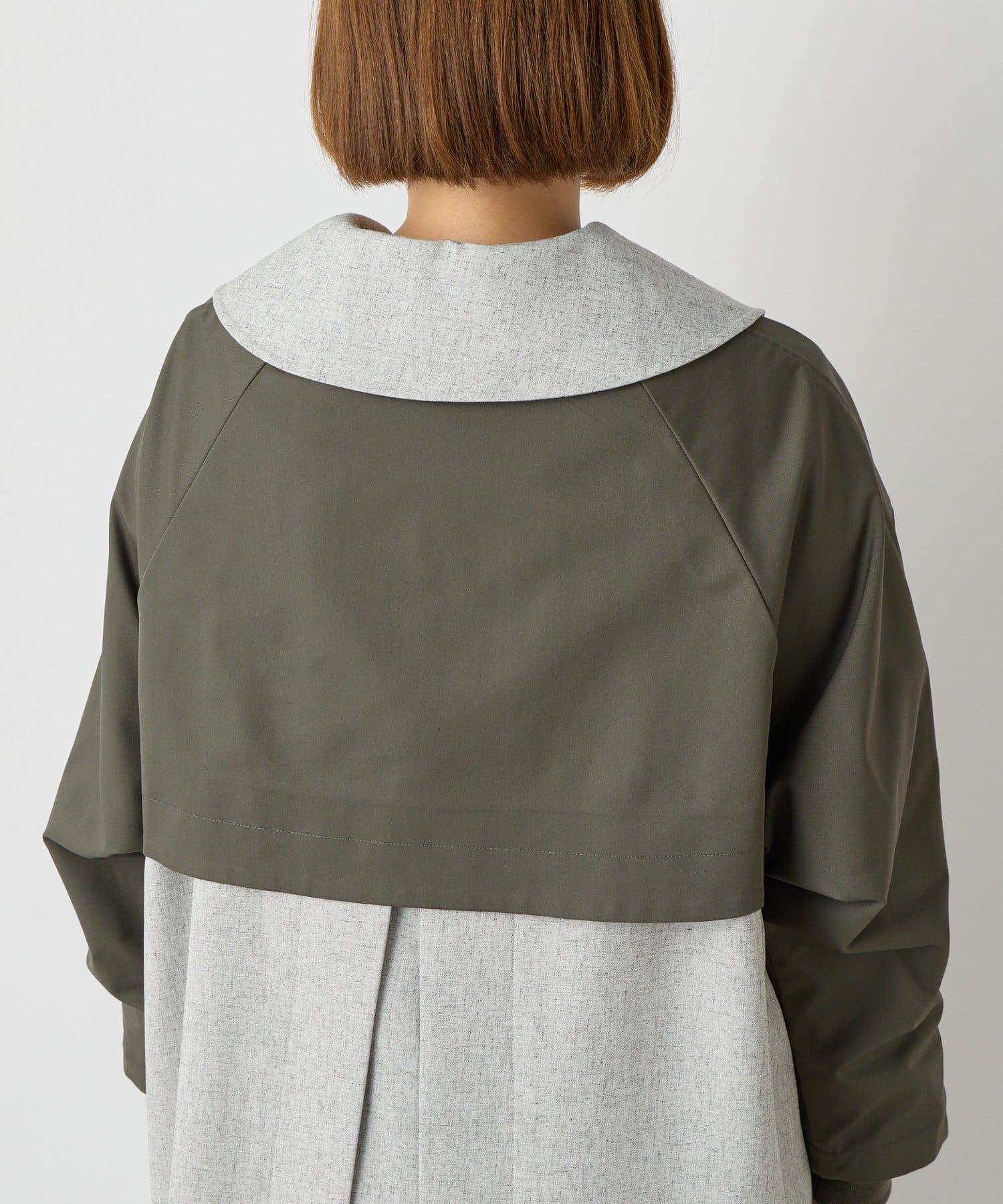 這款大衣的設計融合了不同的材質,打造出精緻俏皮的成人造型。
