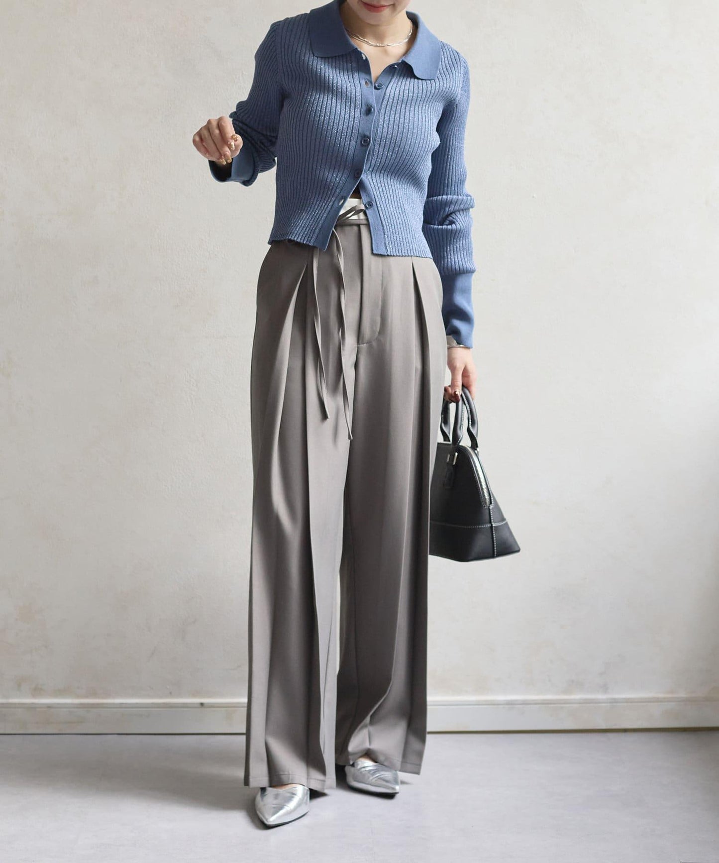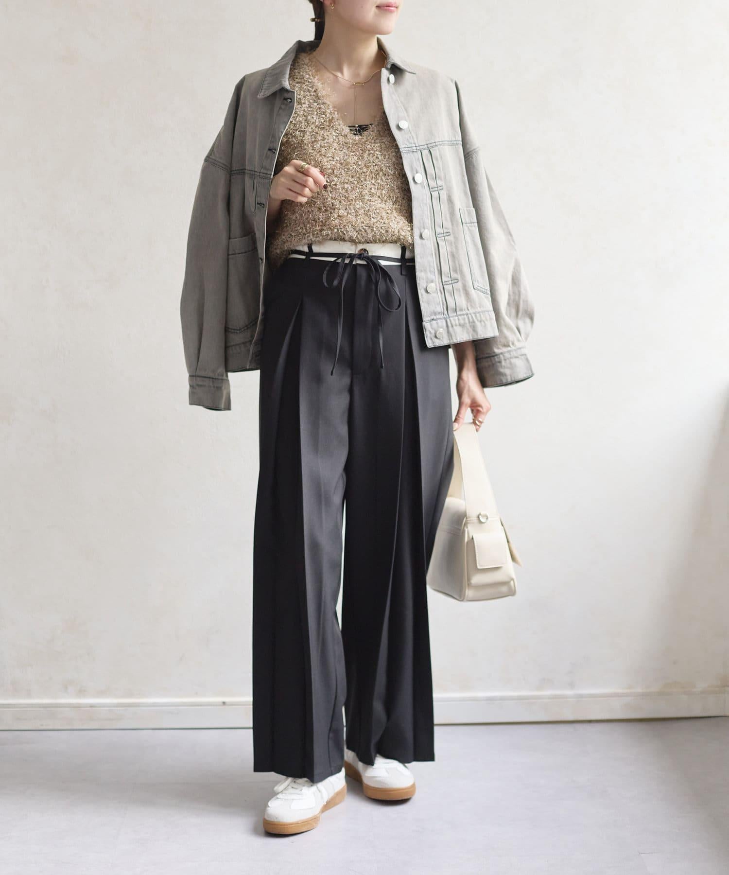 搭配緊身針織衫或剪裁縫製的上衣,或搭配短款上衣,突出腰部線條。