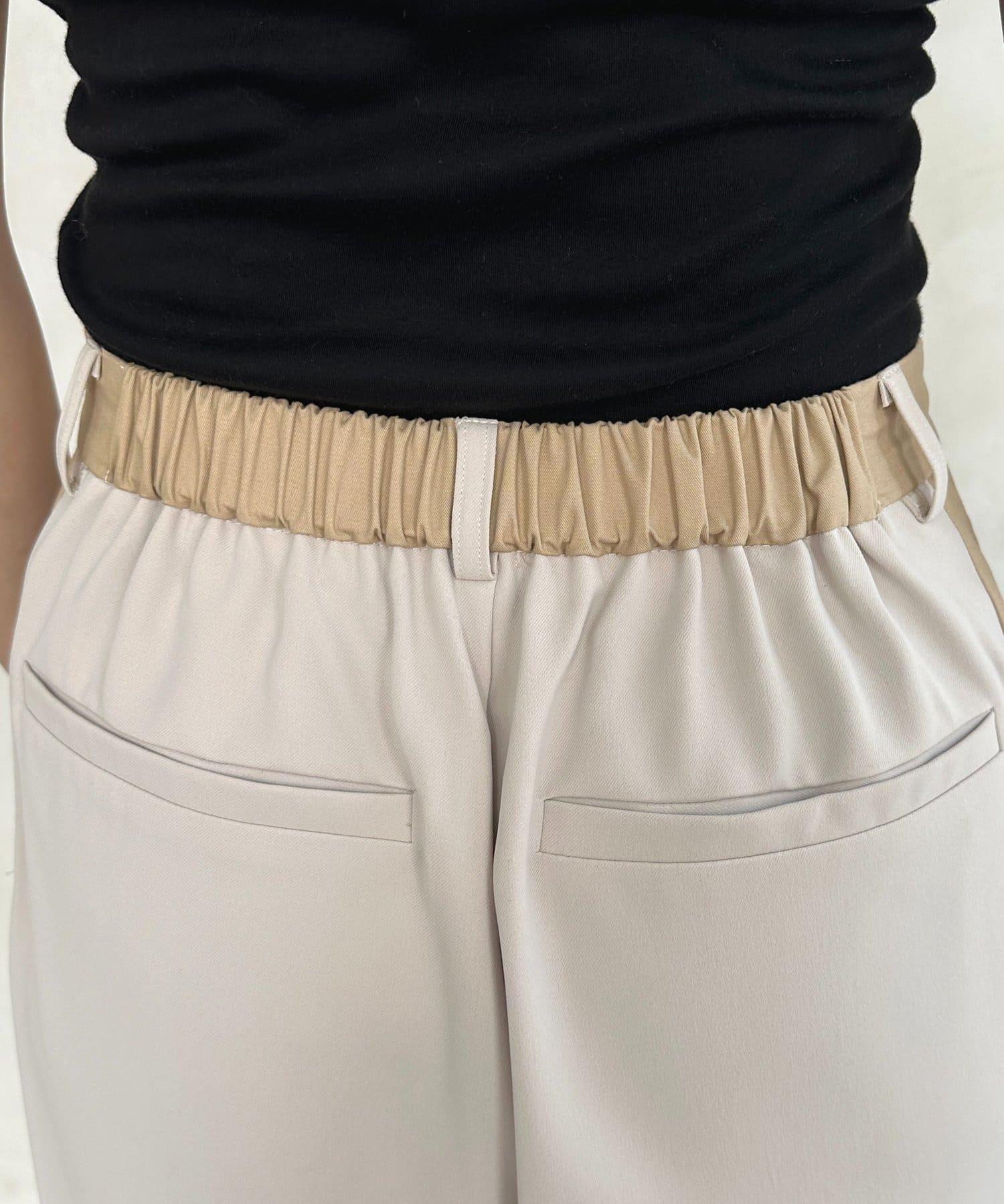 腰部掛鉤雙色拼接褲