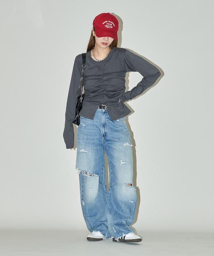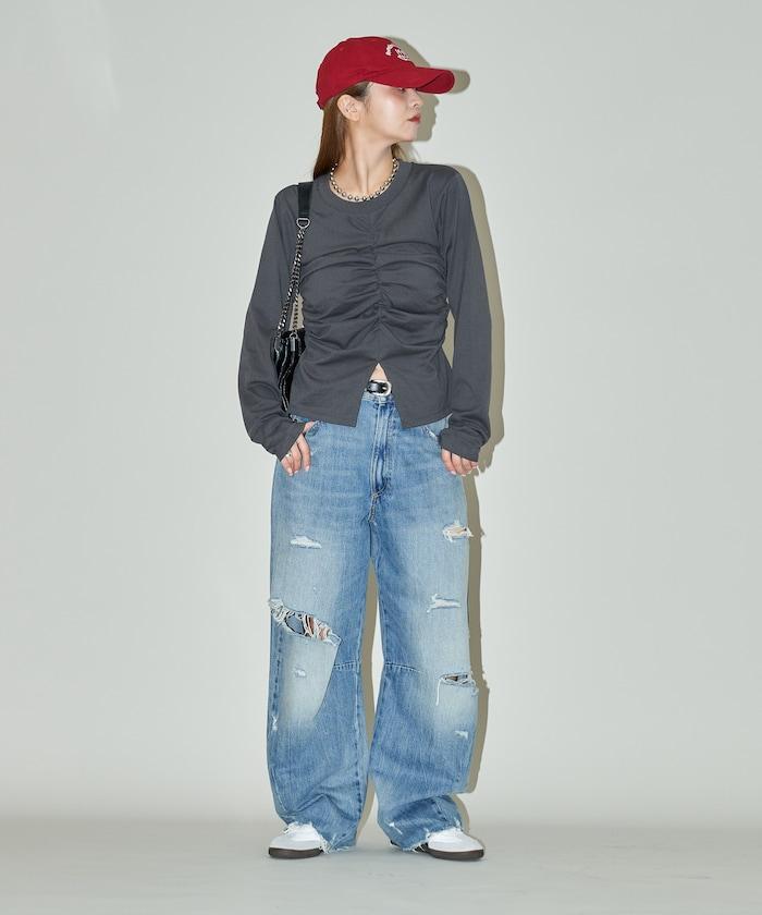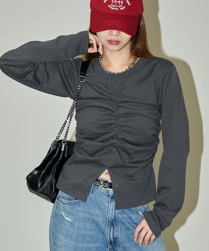 下襬的開衩設計可與蕾絲裙等寬鬆下裝搭配,與 Y2K 和芭蕾舞核心的低腰迷你裙搭配,打造時髦造型。