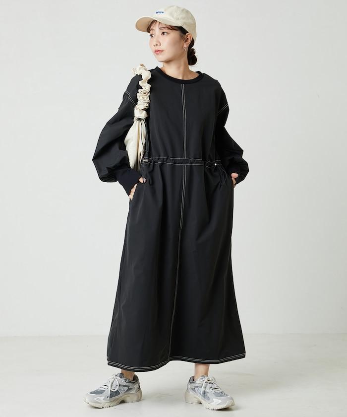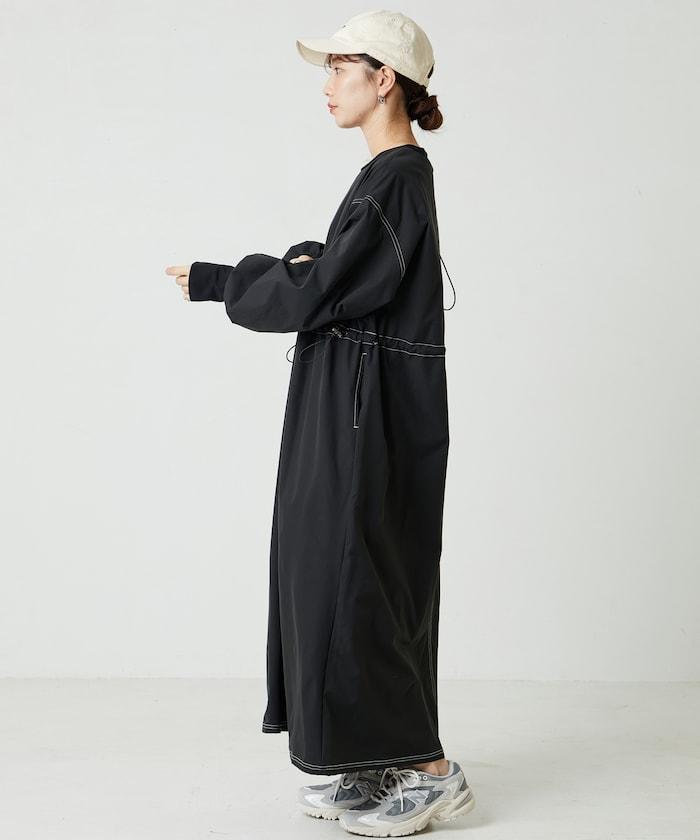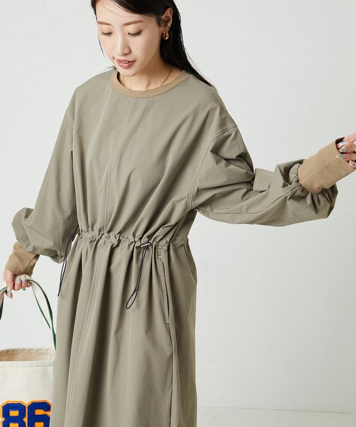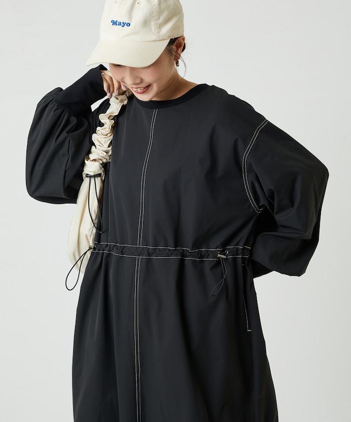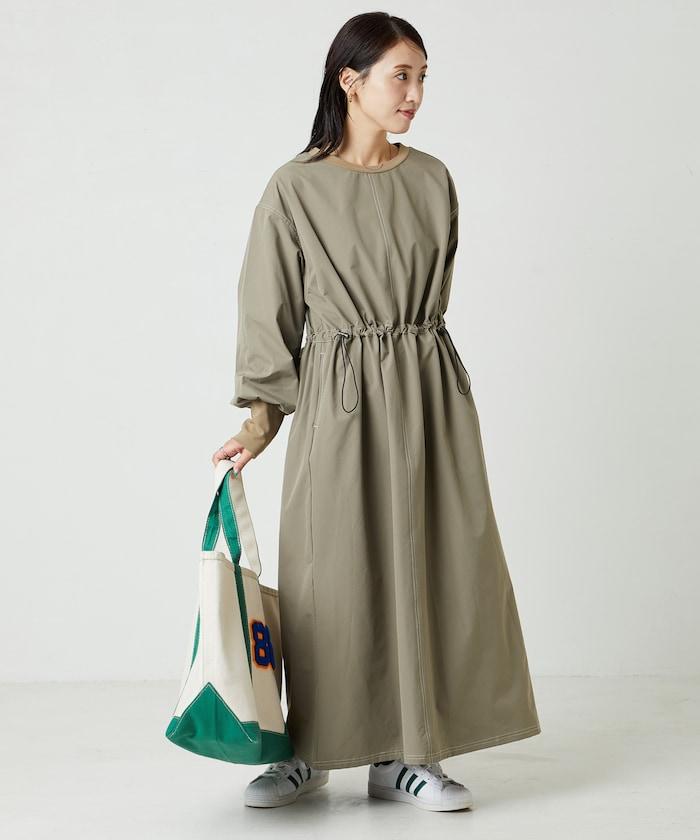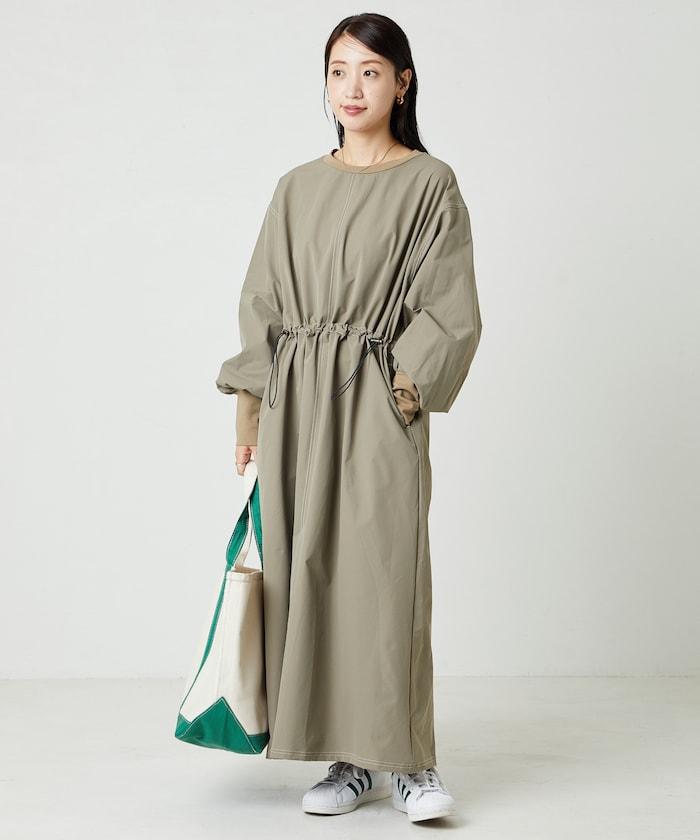 略帶運動風格的喇叭連衣裙(帶抽繩
