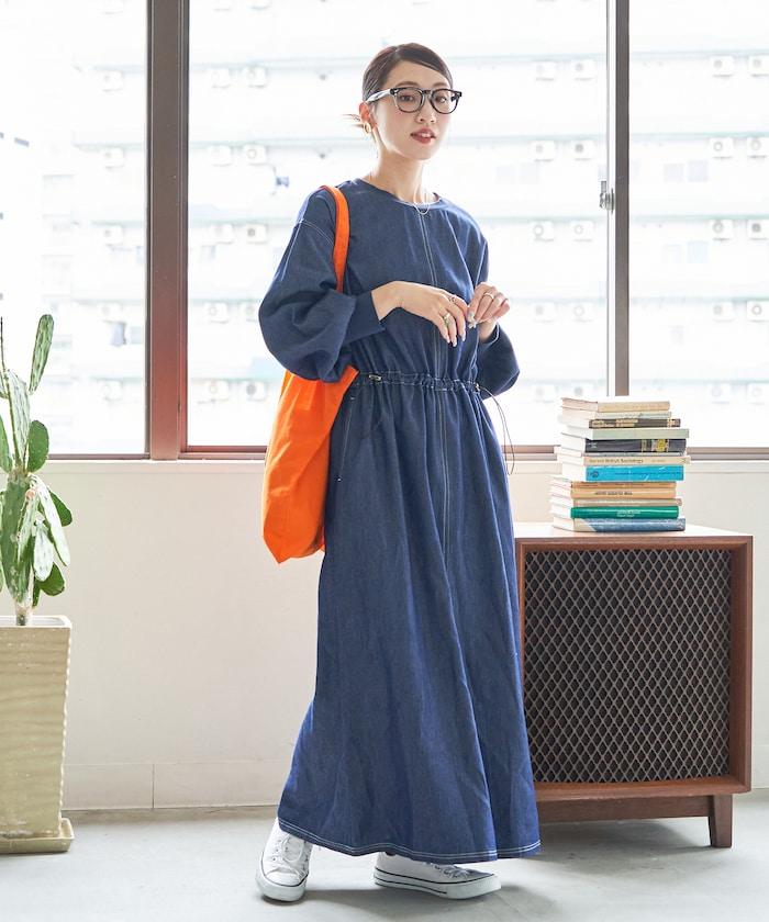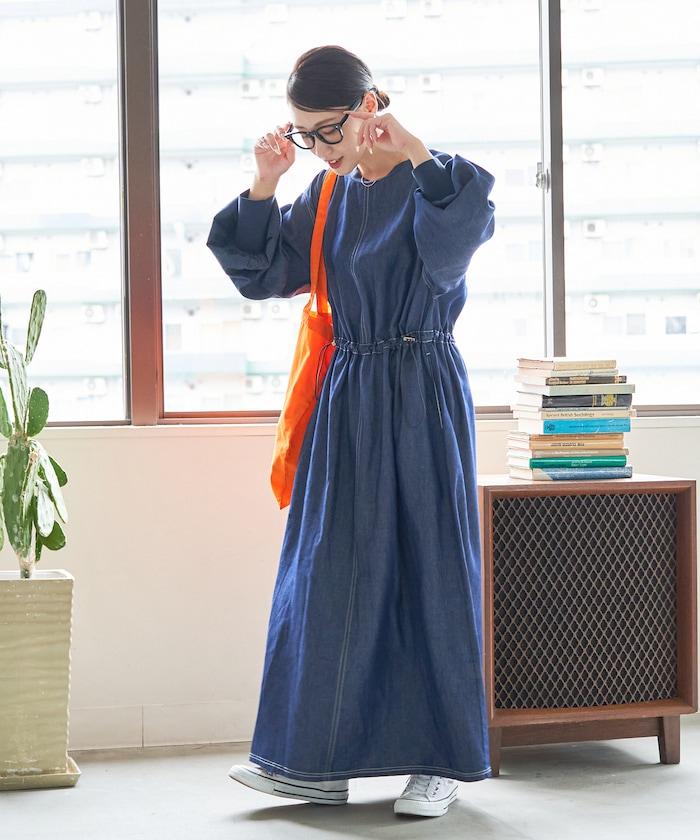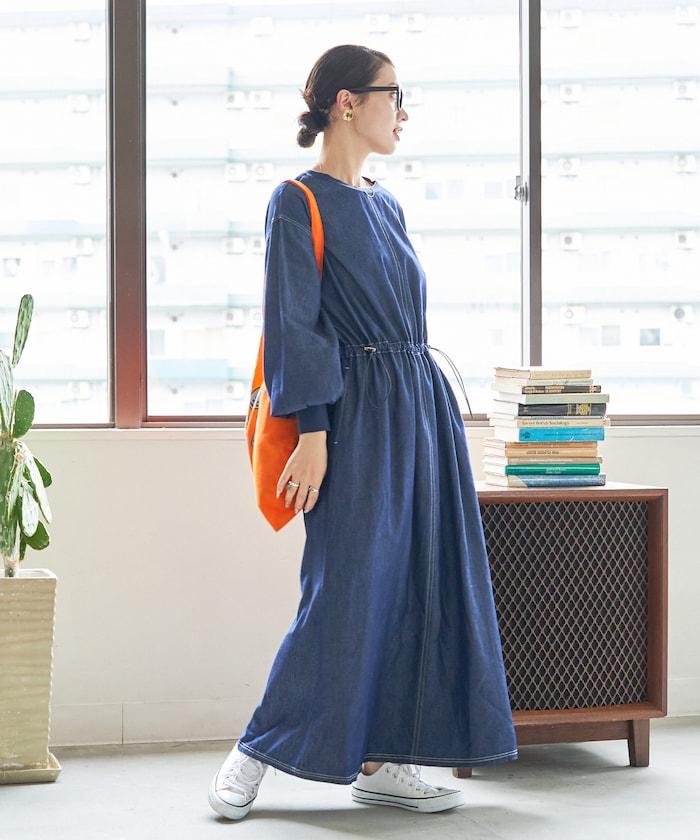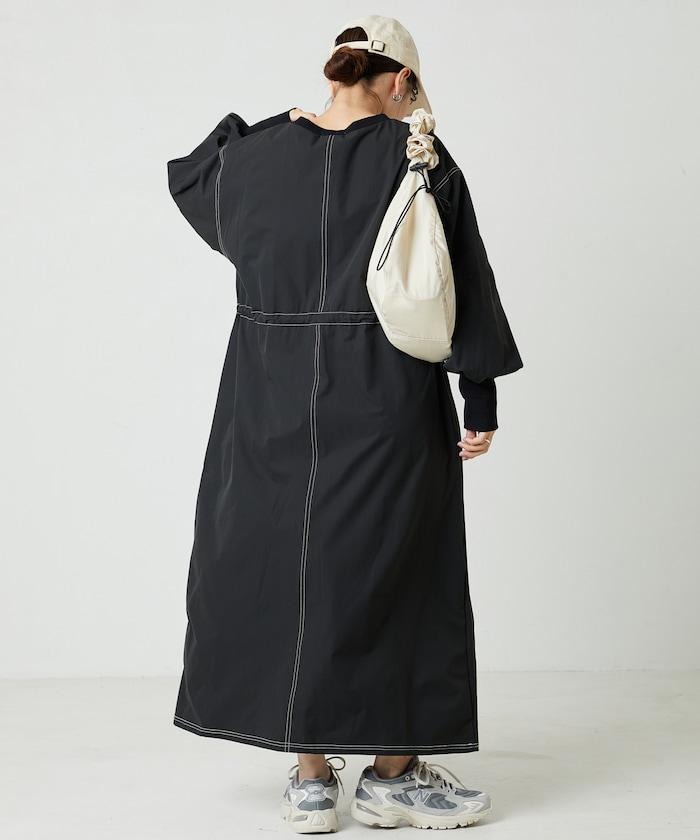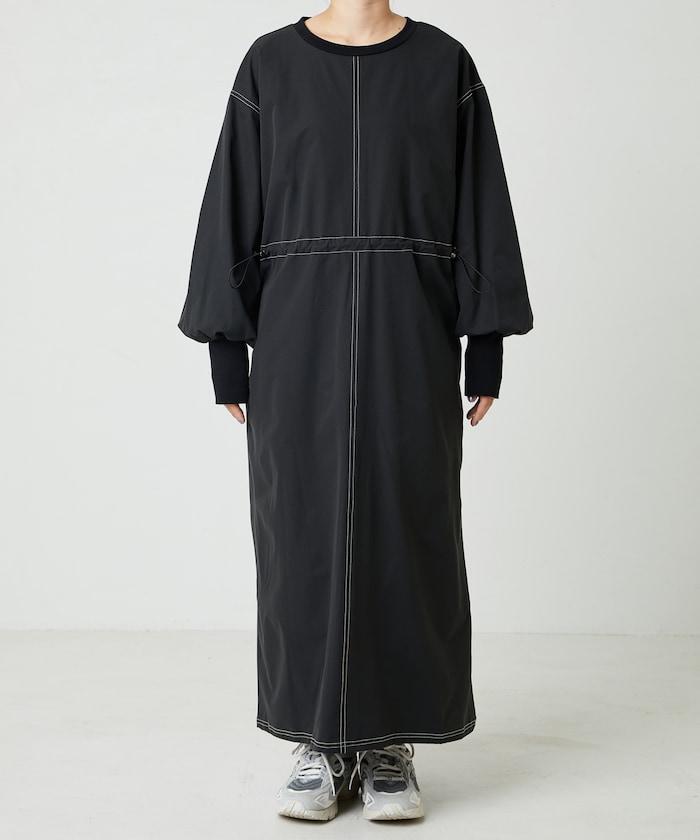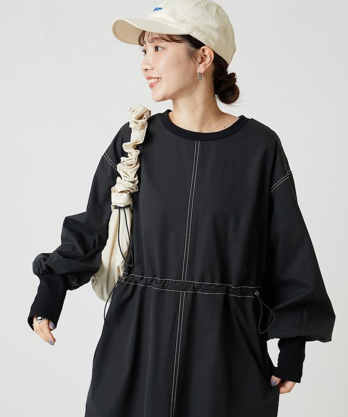 略帶運動風格的喇叭連衣裙(帶抽繩