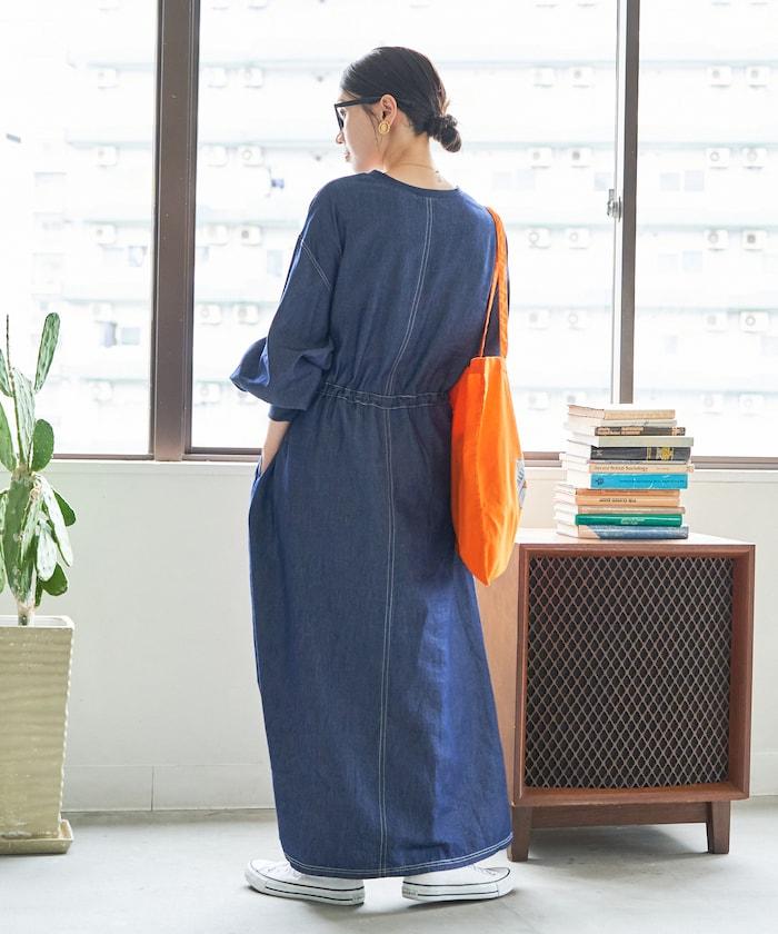 這款連衣裙的腰部有細繩裝飾。
