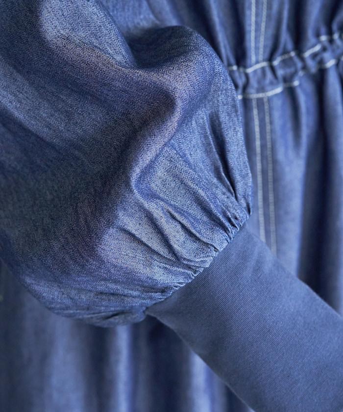 蓬鬆的袖子與緊身羅紋袖子之間的縫隙形成鮮明對比。