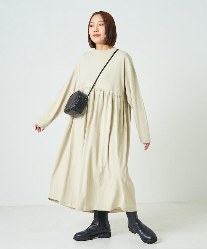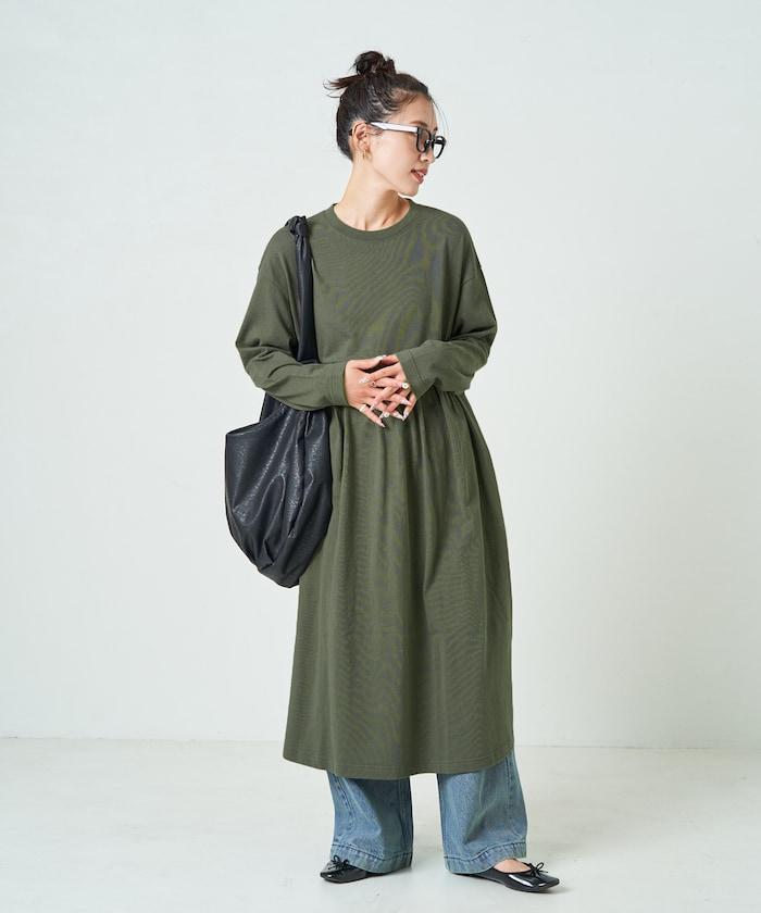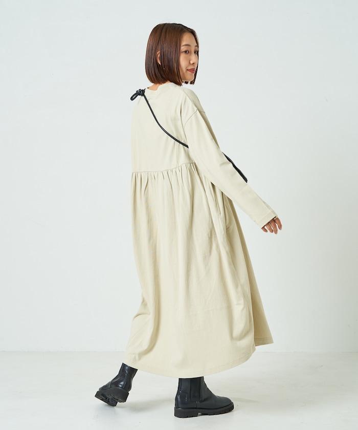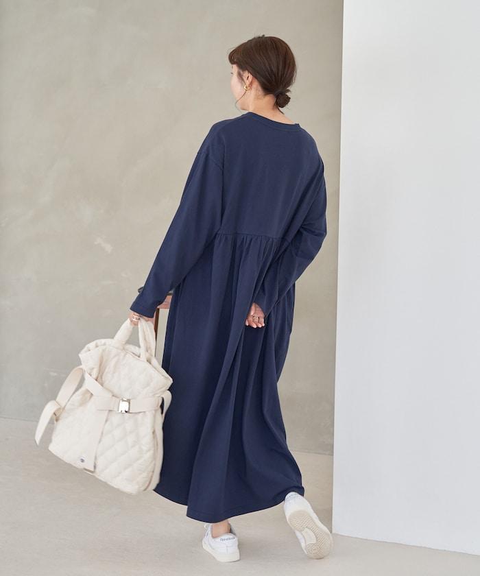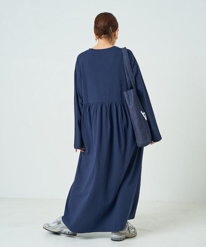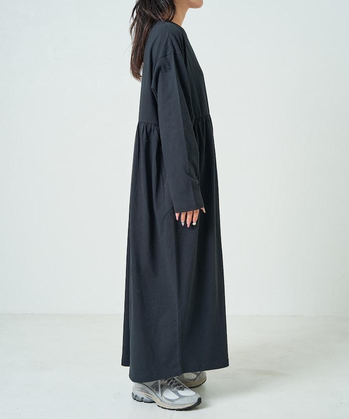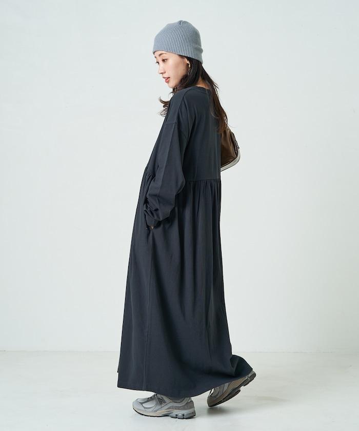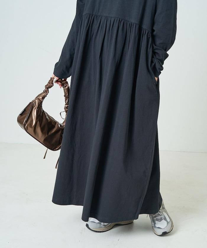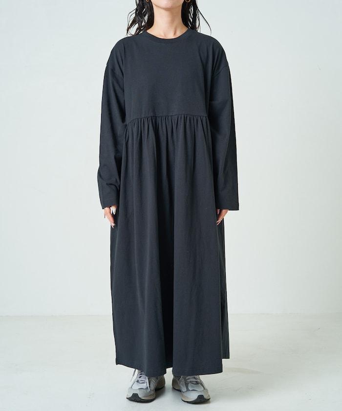 腰部褶皺拼接長款連衣裙【限定款】