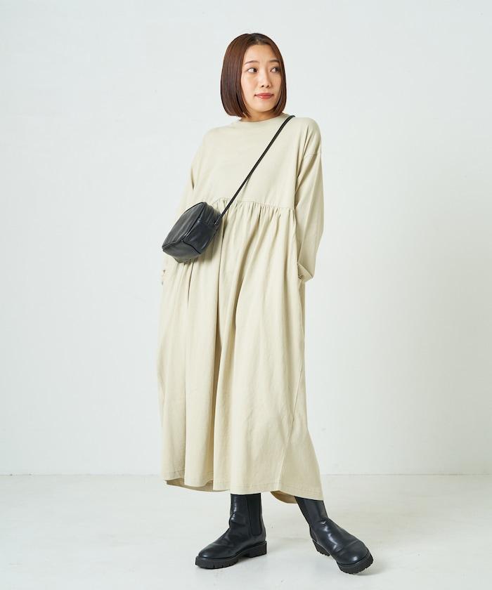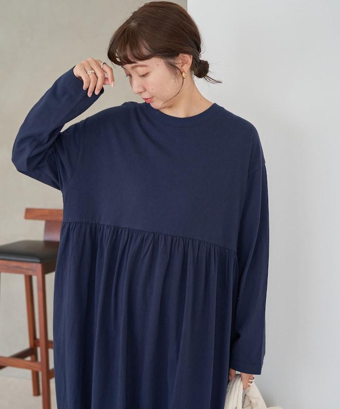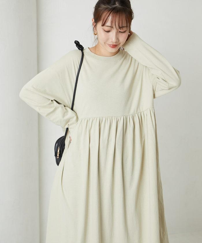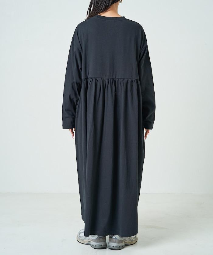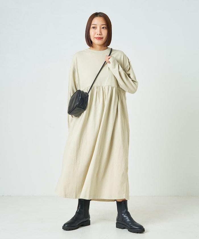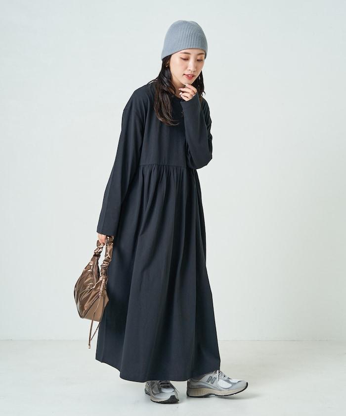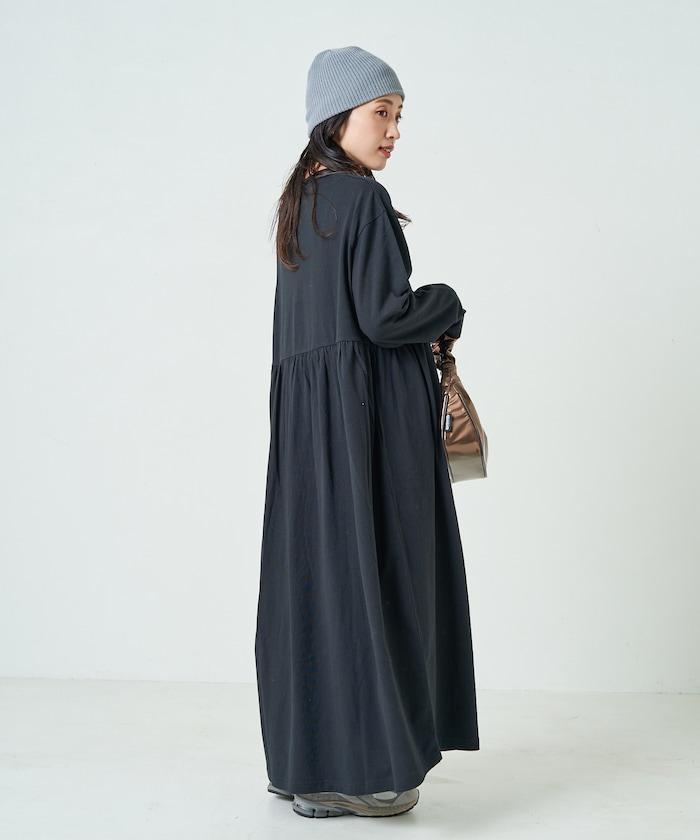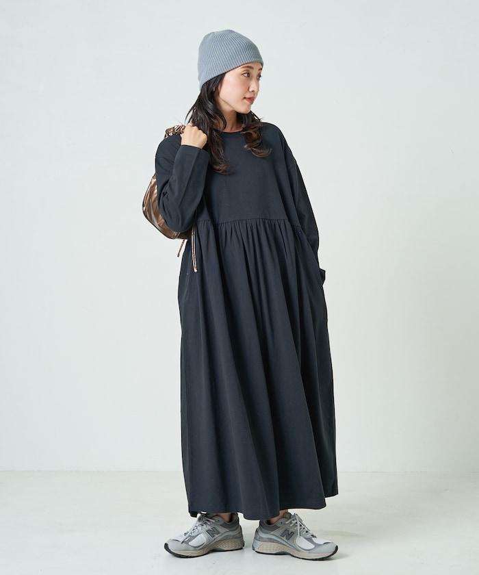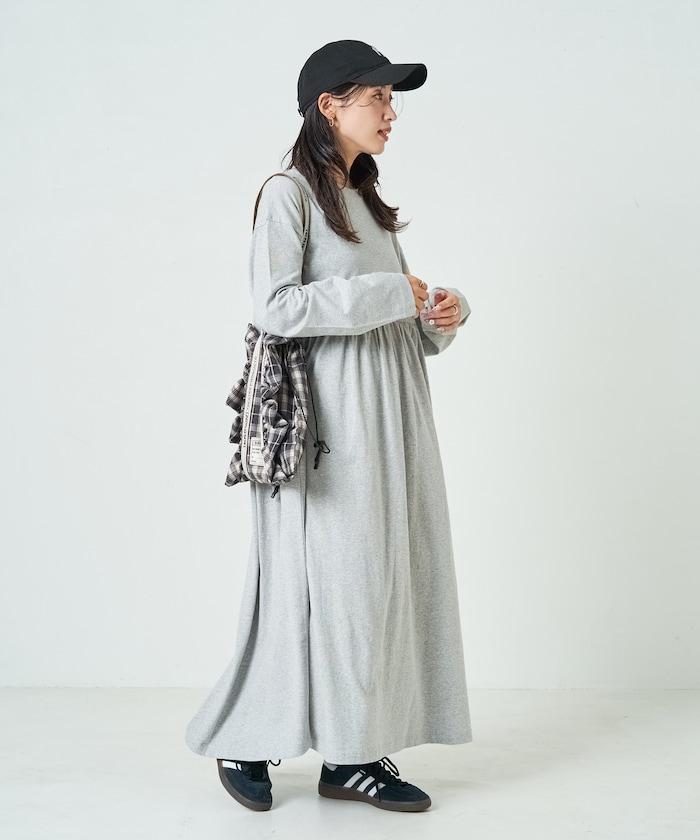 腰部褶皺拼接長款連衣裙【限定款】