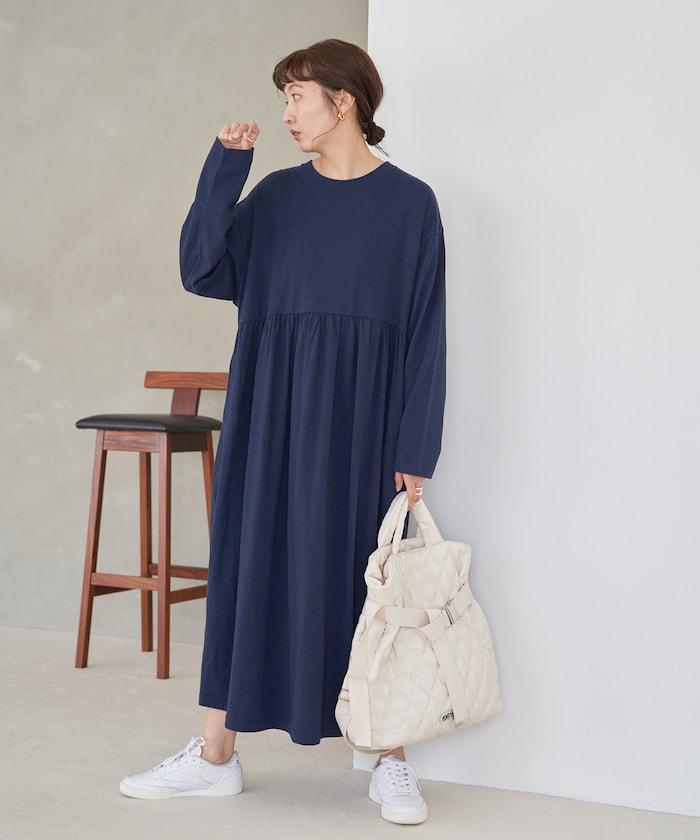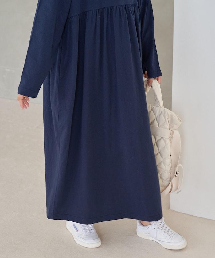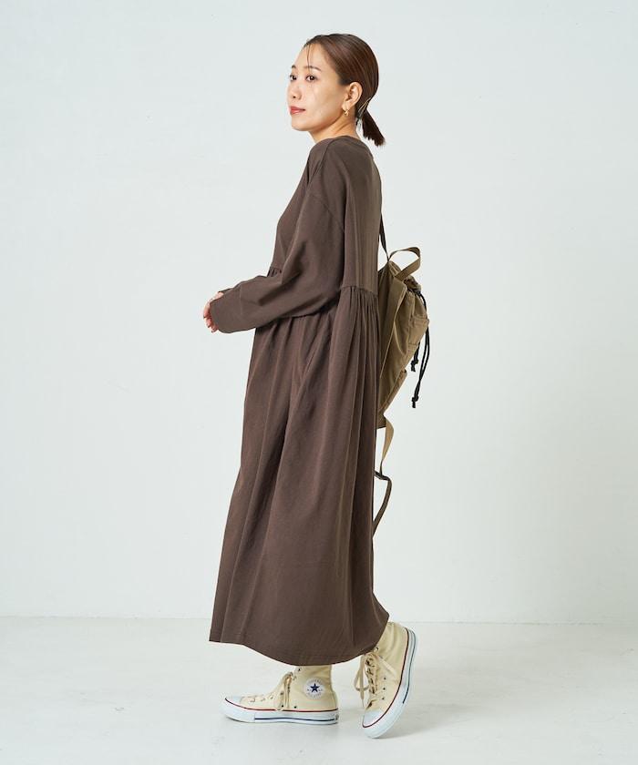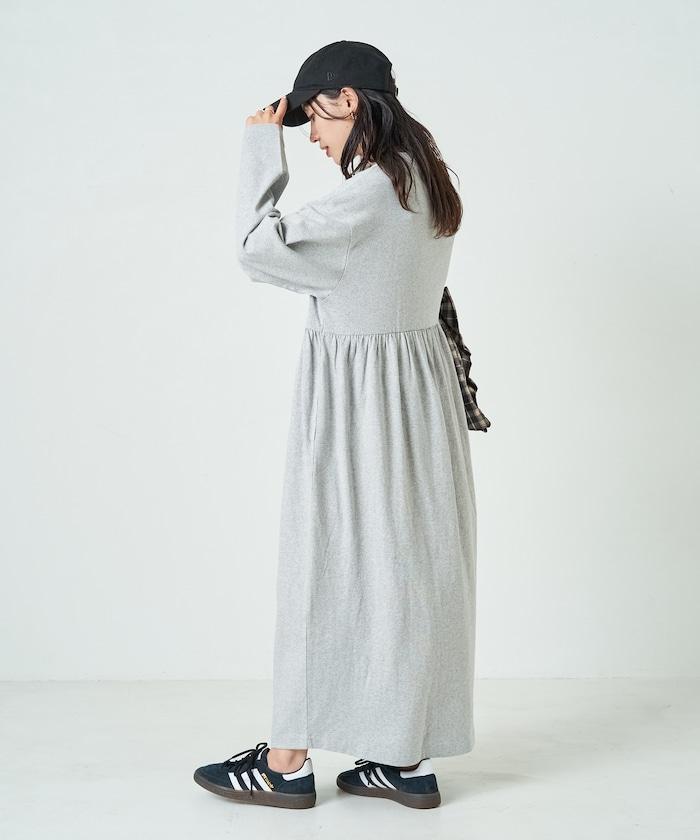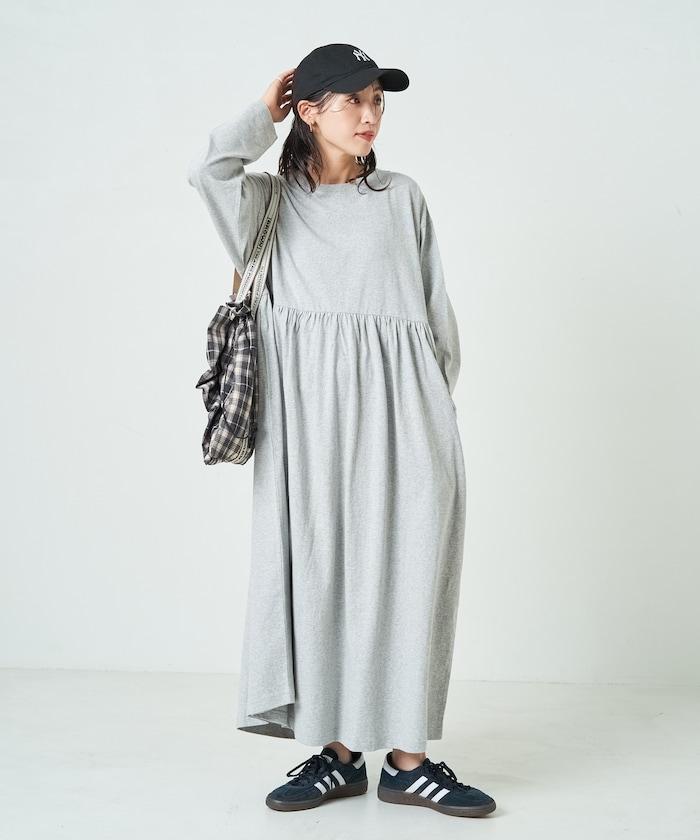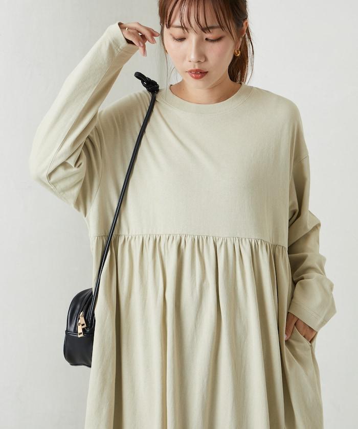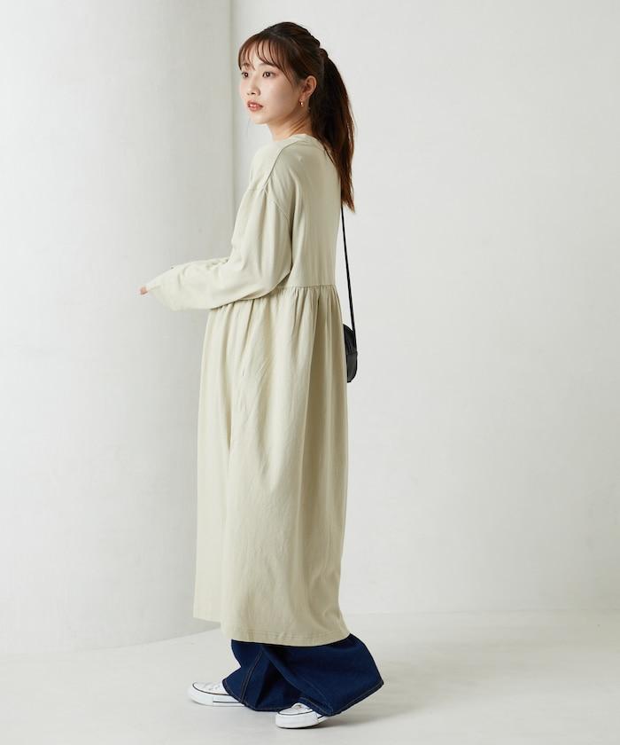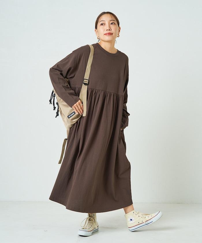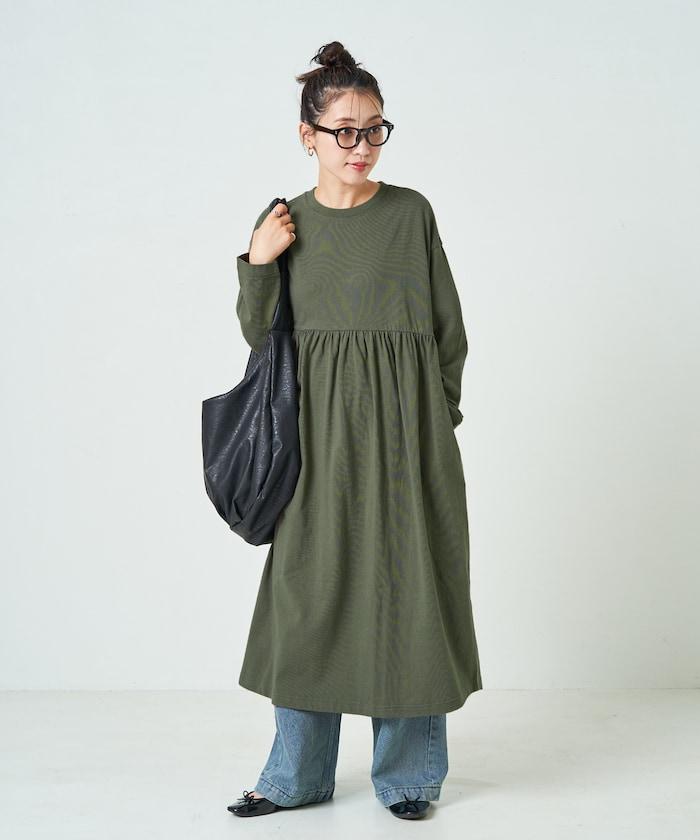 腰部褶皺拼接長款連衣裙【限定款】