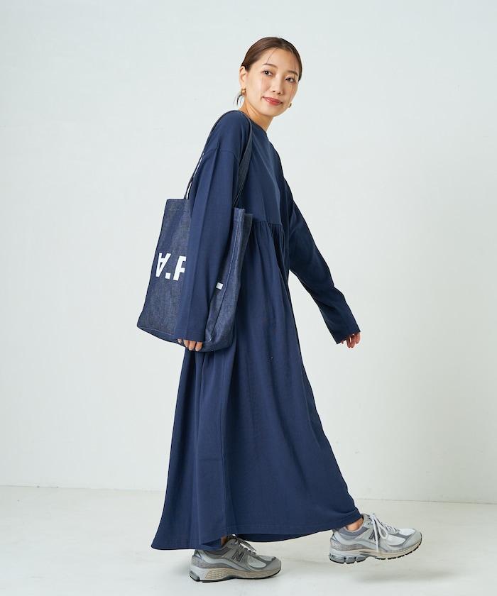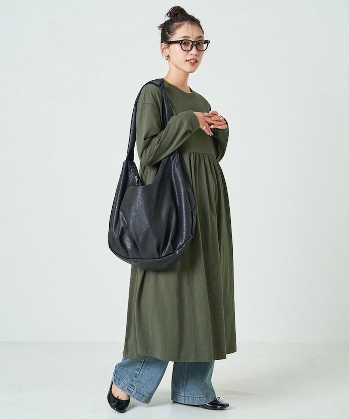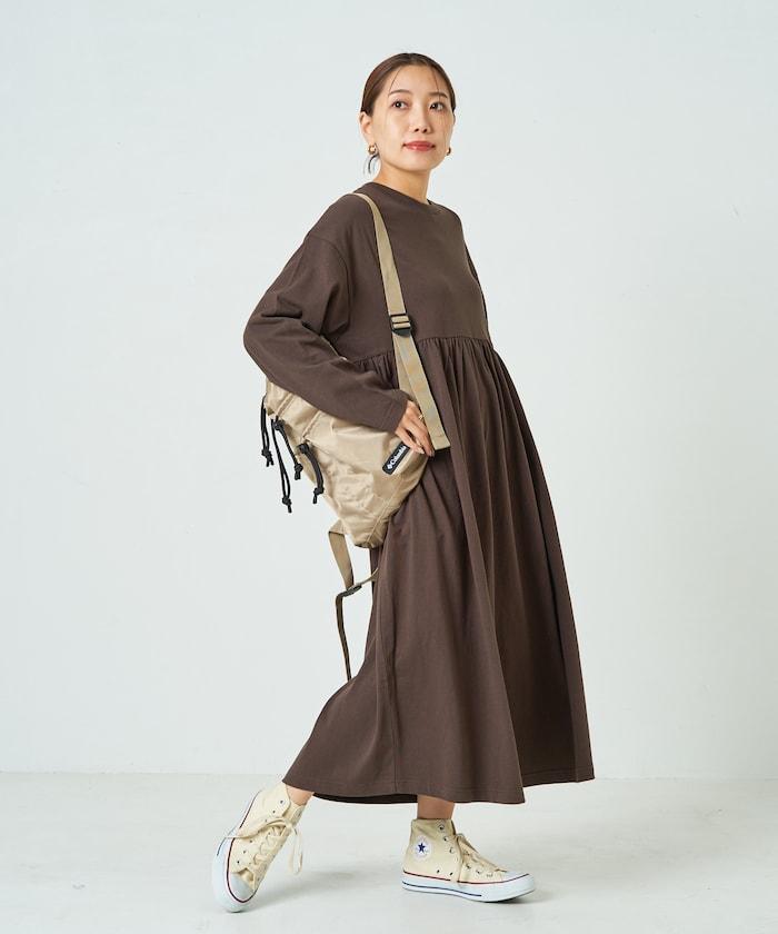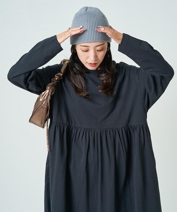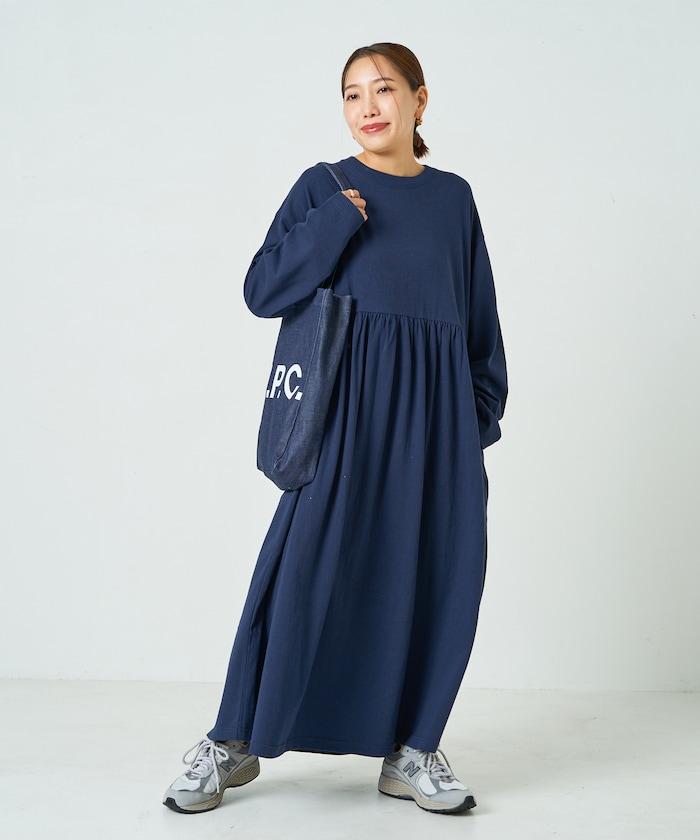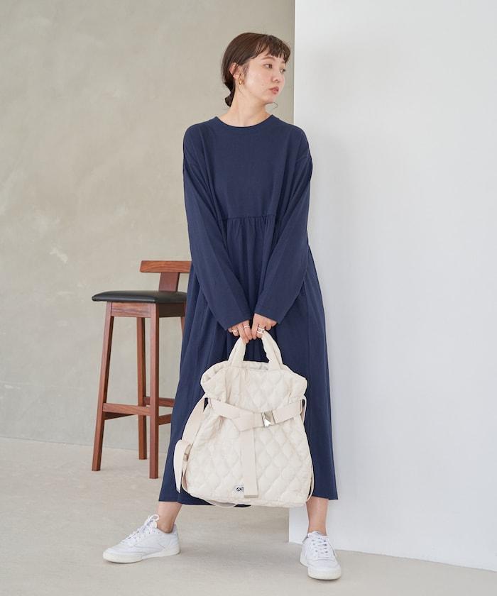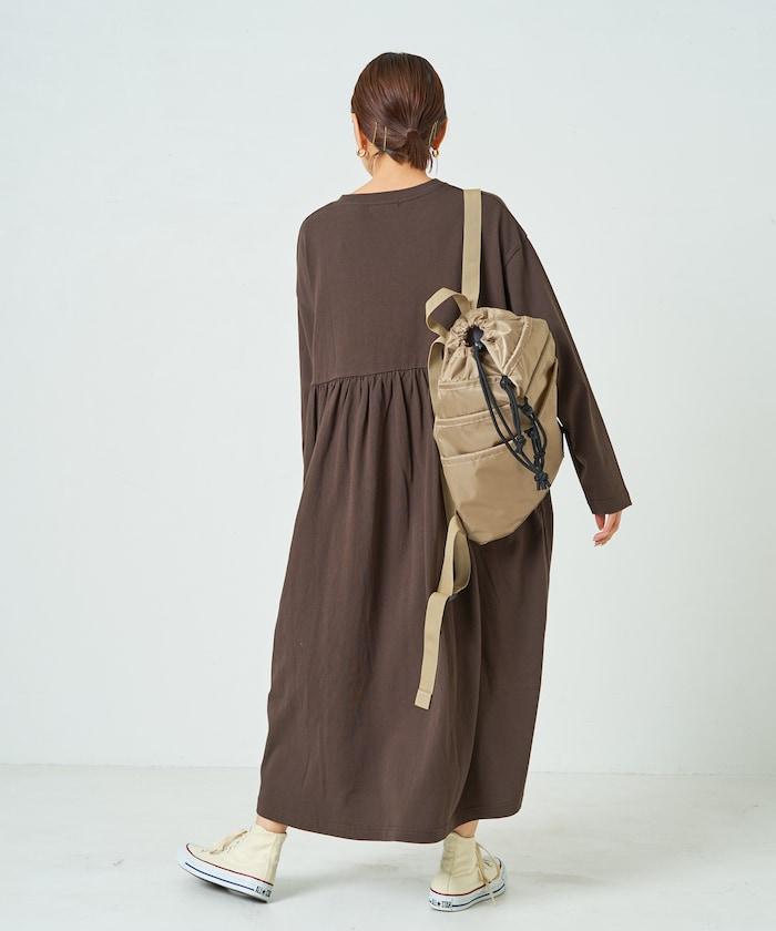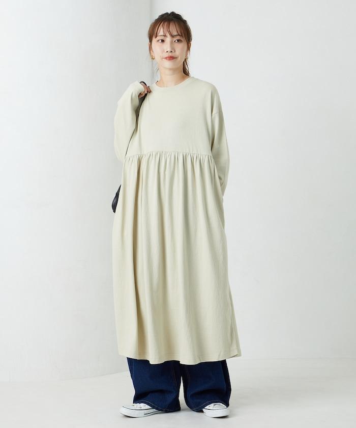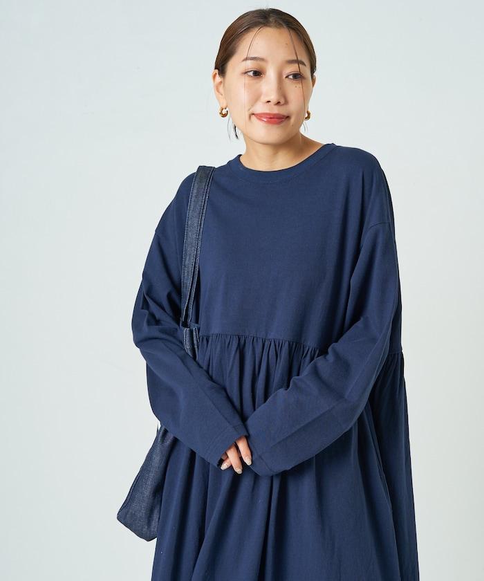 腰部褶皺拼接長款連衣裙【限定款】
