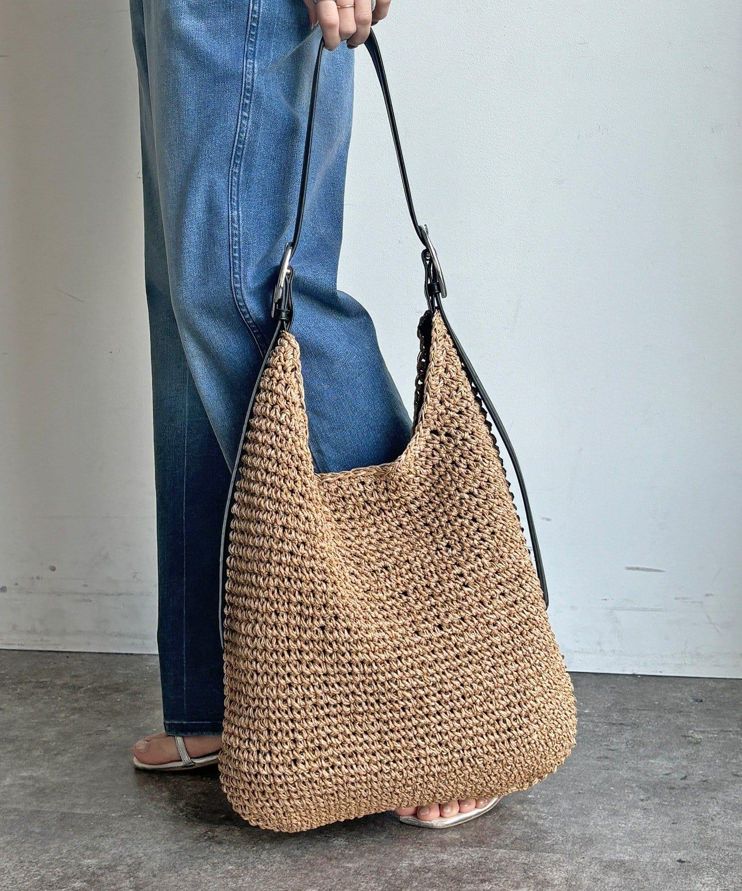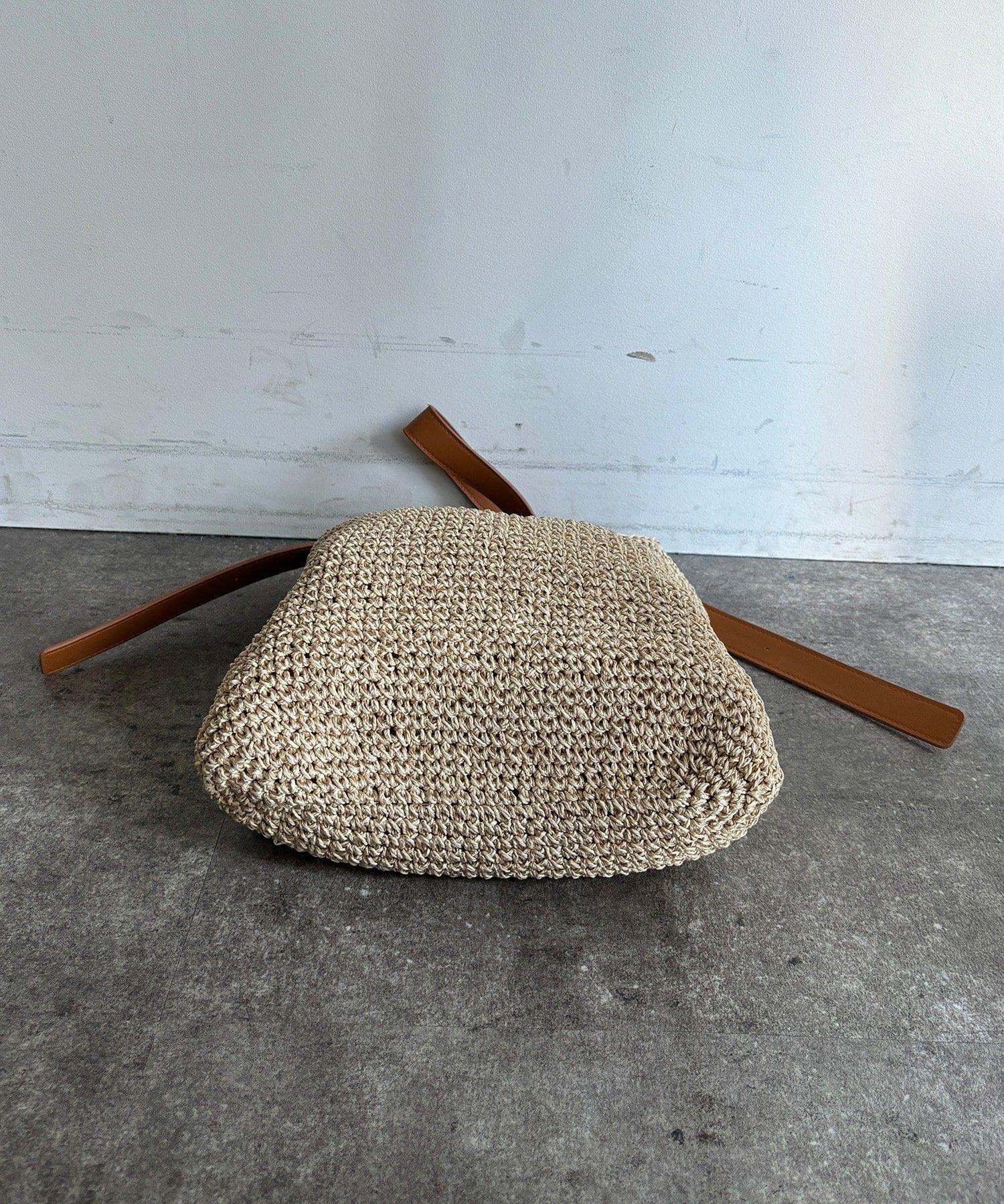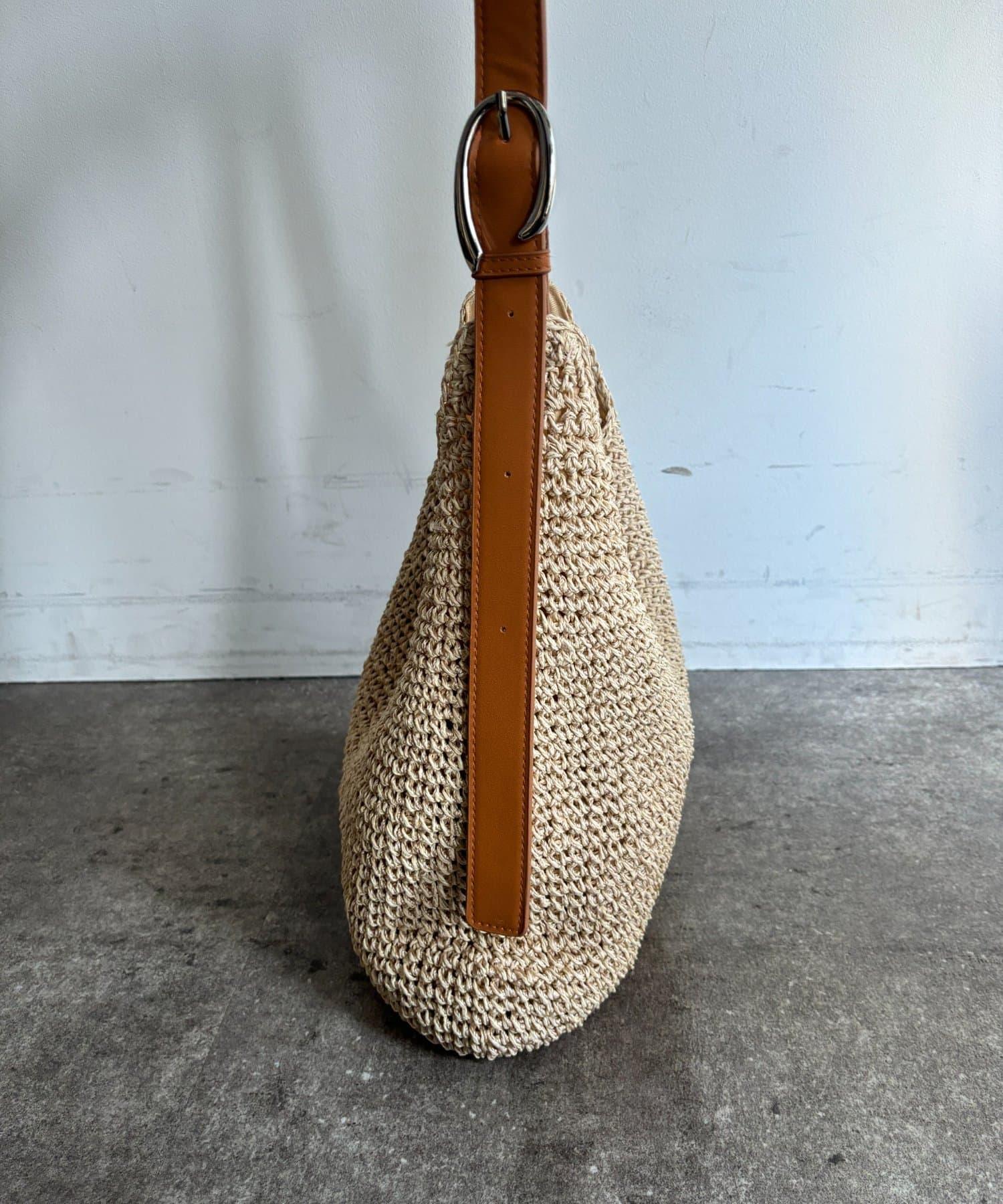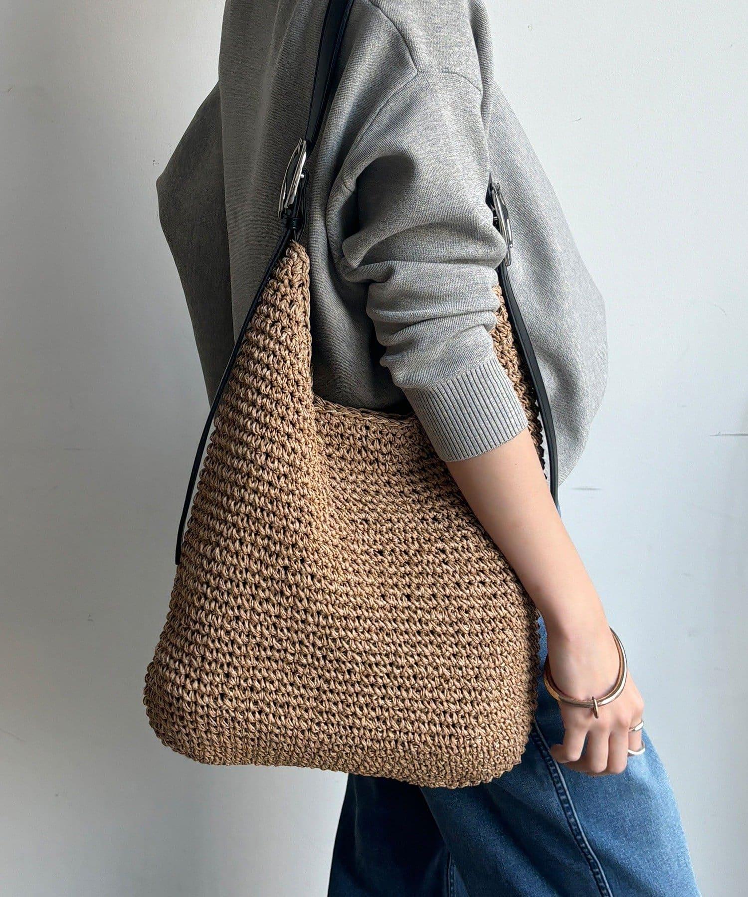 天然鉤編手提包,質地粗糙。