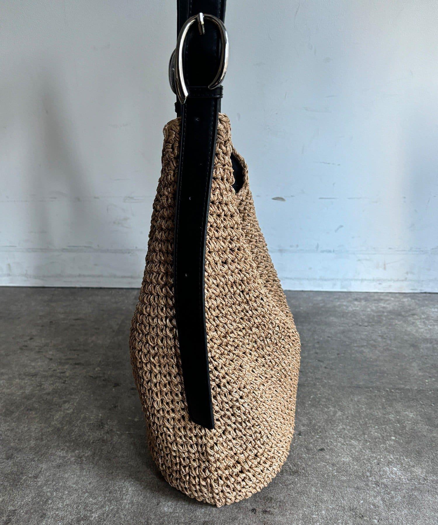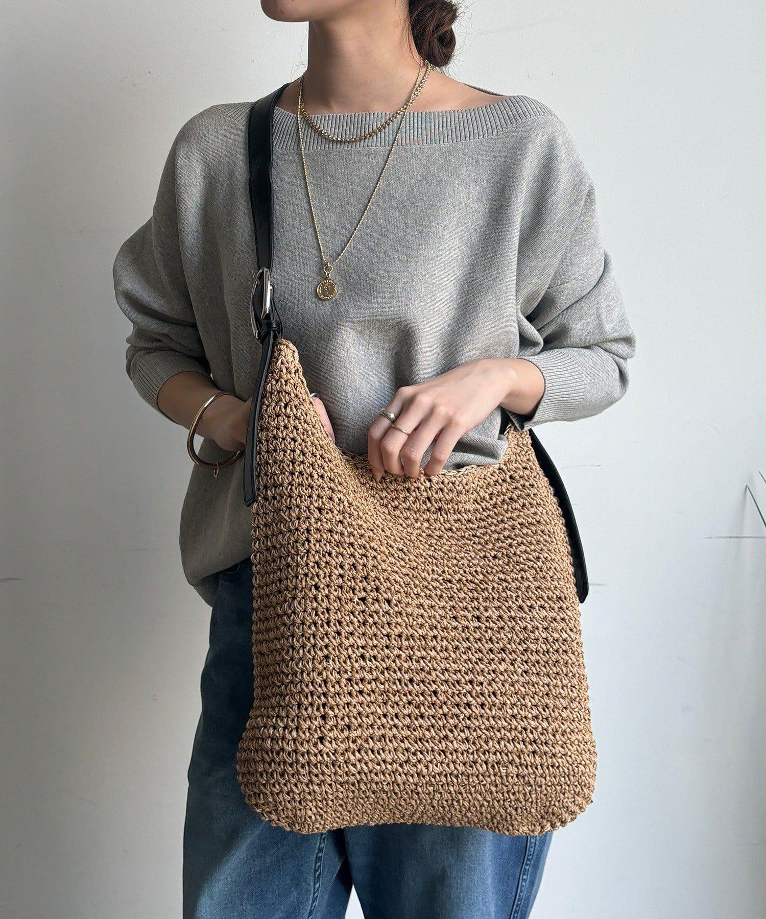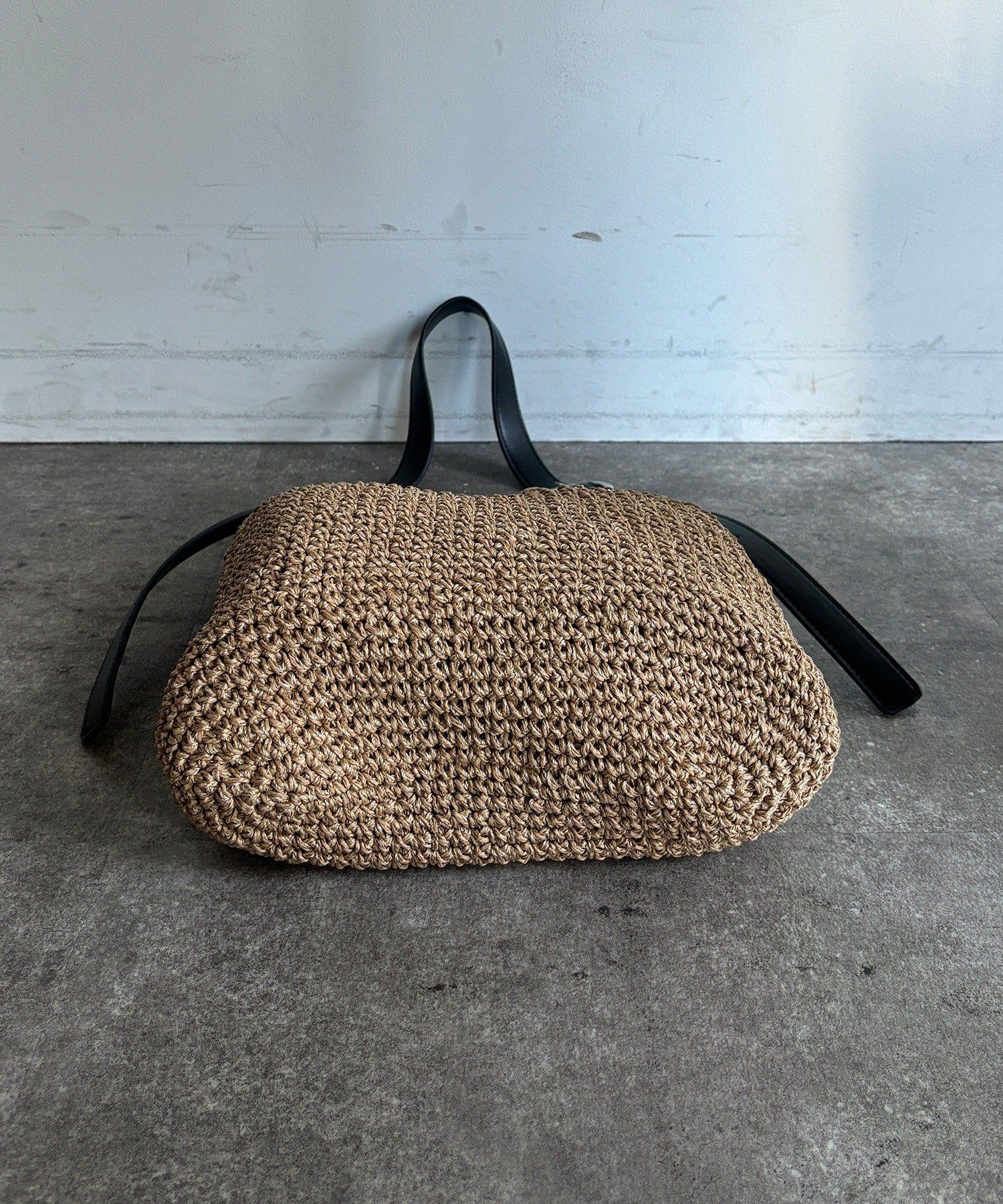 天然鉤編手提包,質地粗糙。