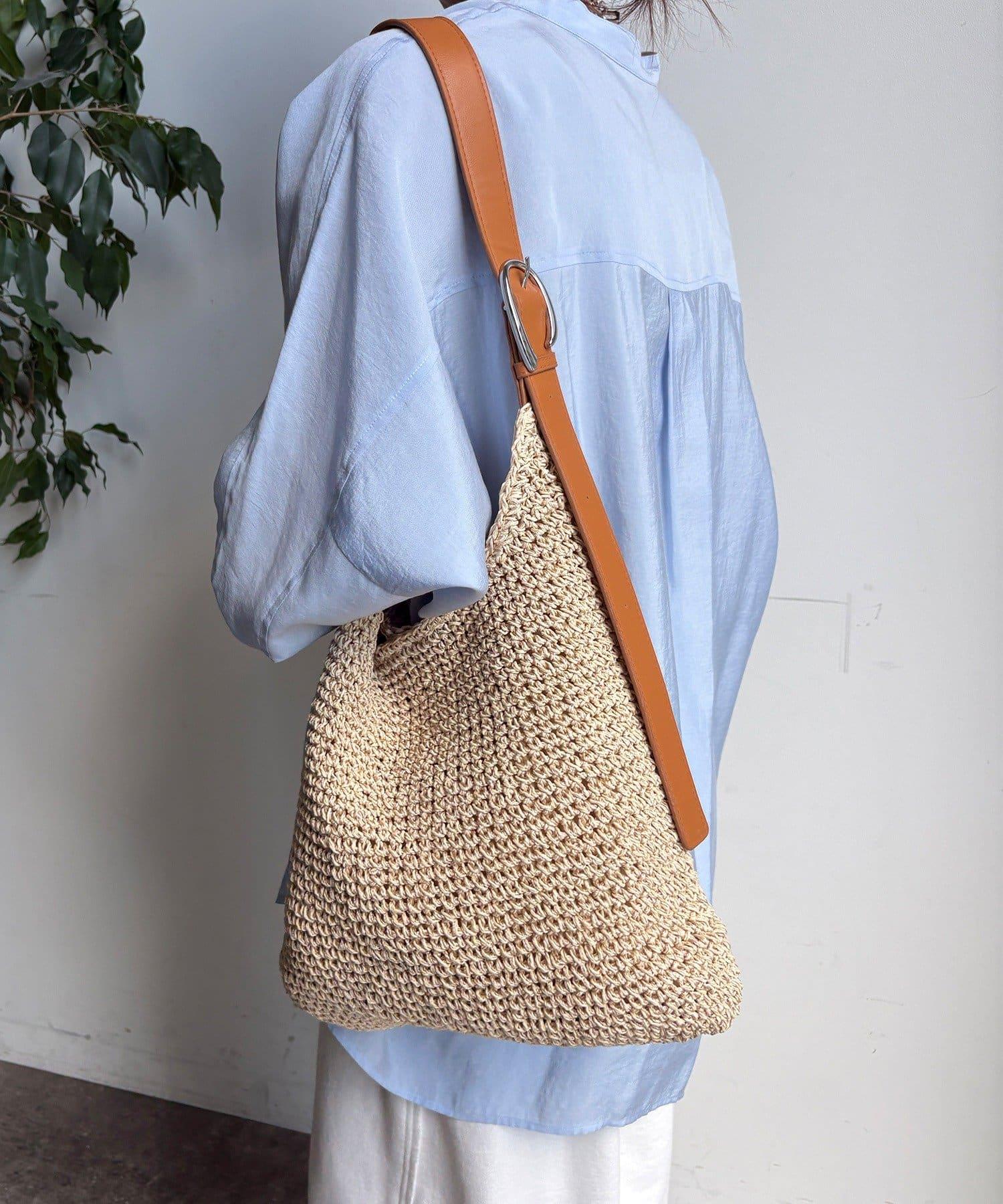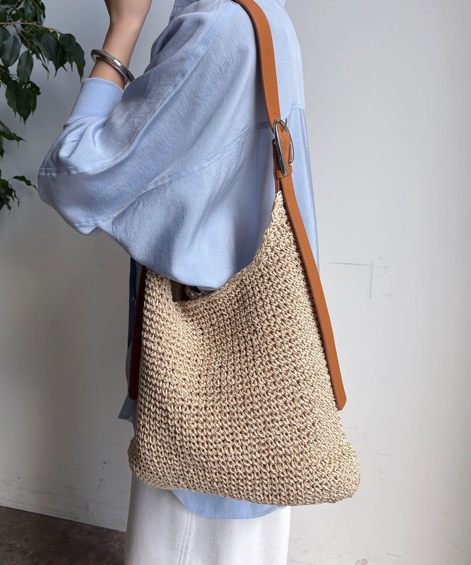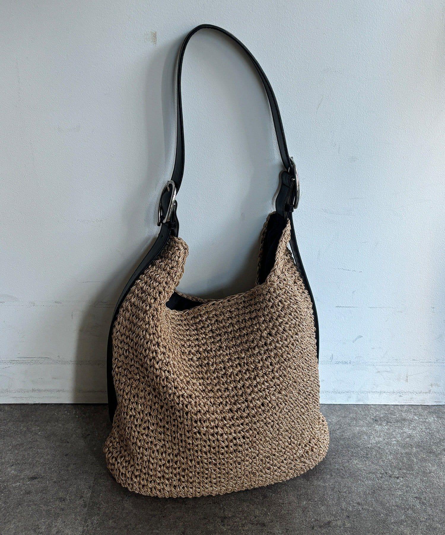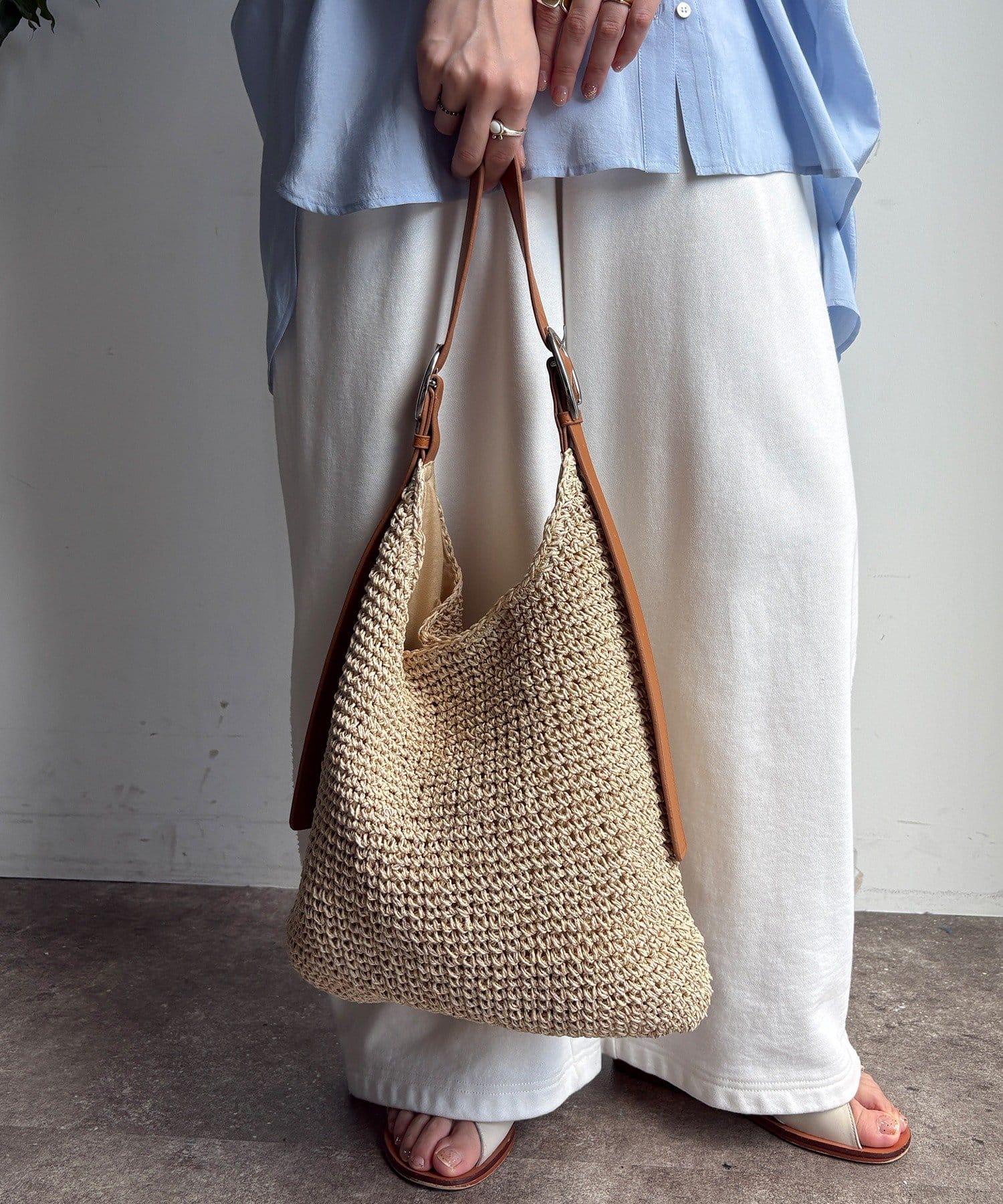 天然鉤編手提包,質地粗糙。