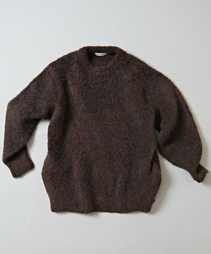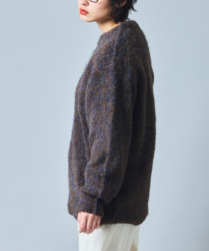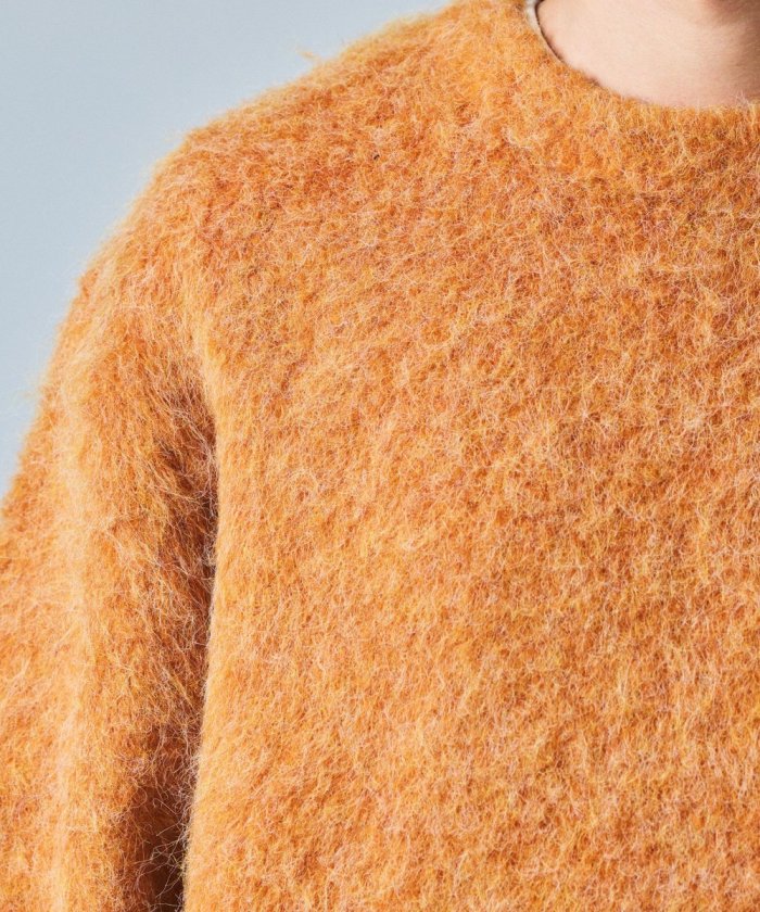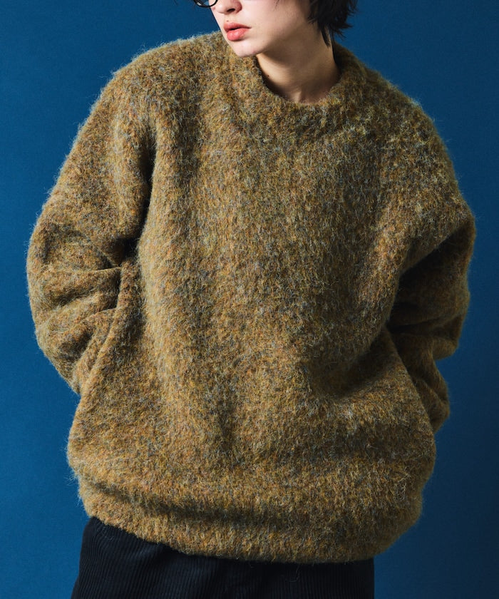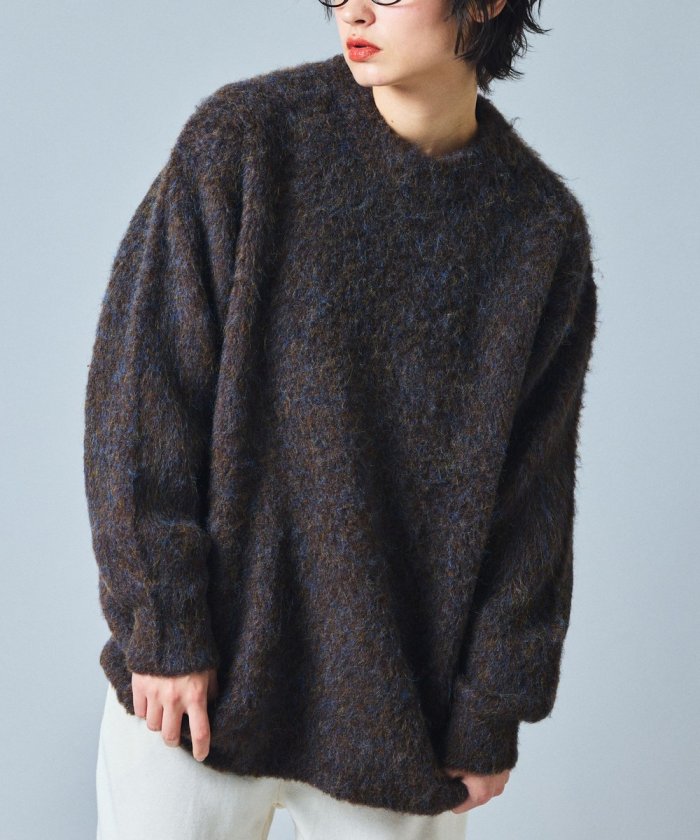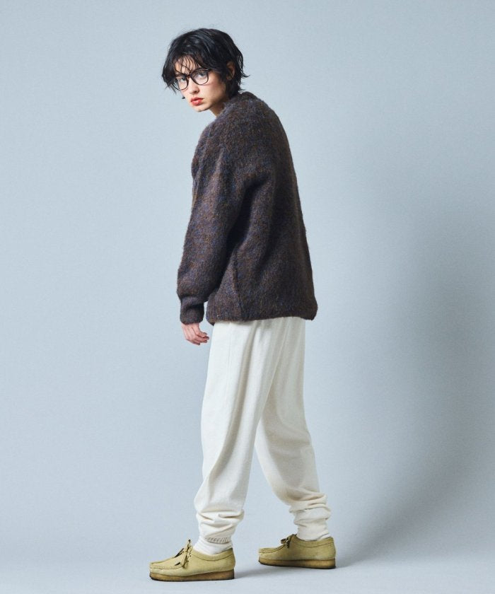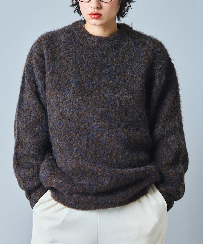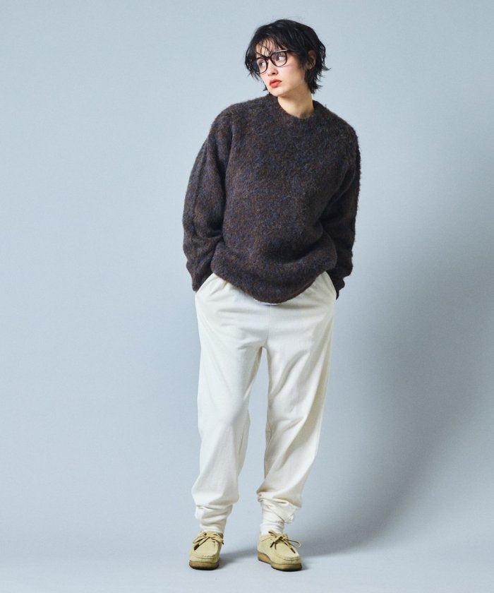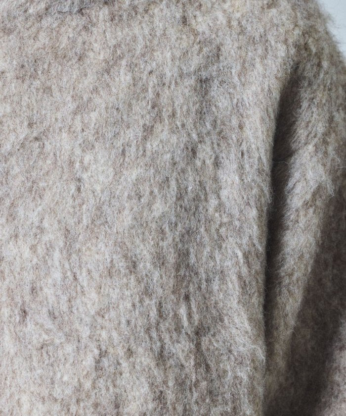 圓領款式設計簡單,但面料的體積感營造出柔和的氛圍。