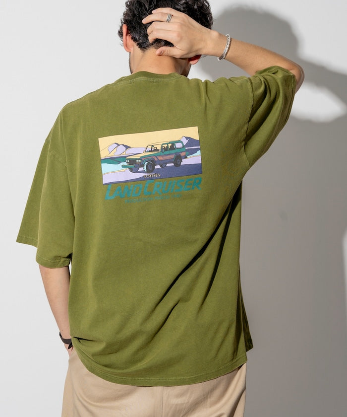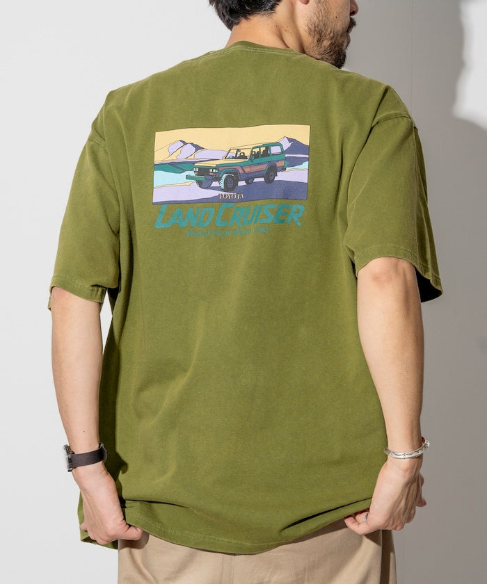 背面印有歷史悠久的👍豐田陸地巡洋艦圖案的短袖 T 恤。