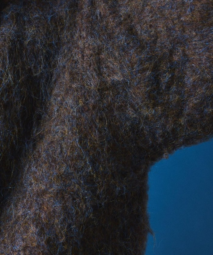 這款開衫設計簡單,但面料的體積營造出柔和的氛圍。