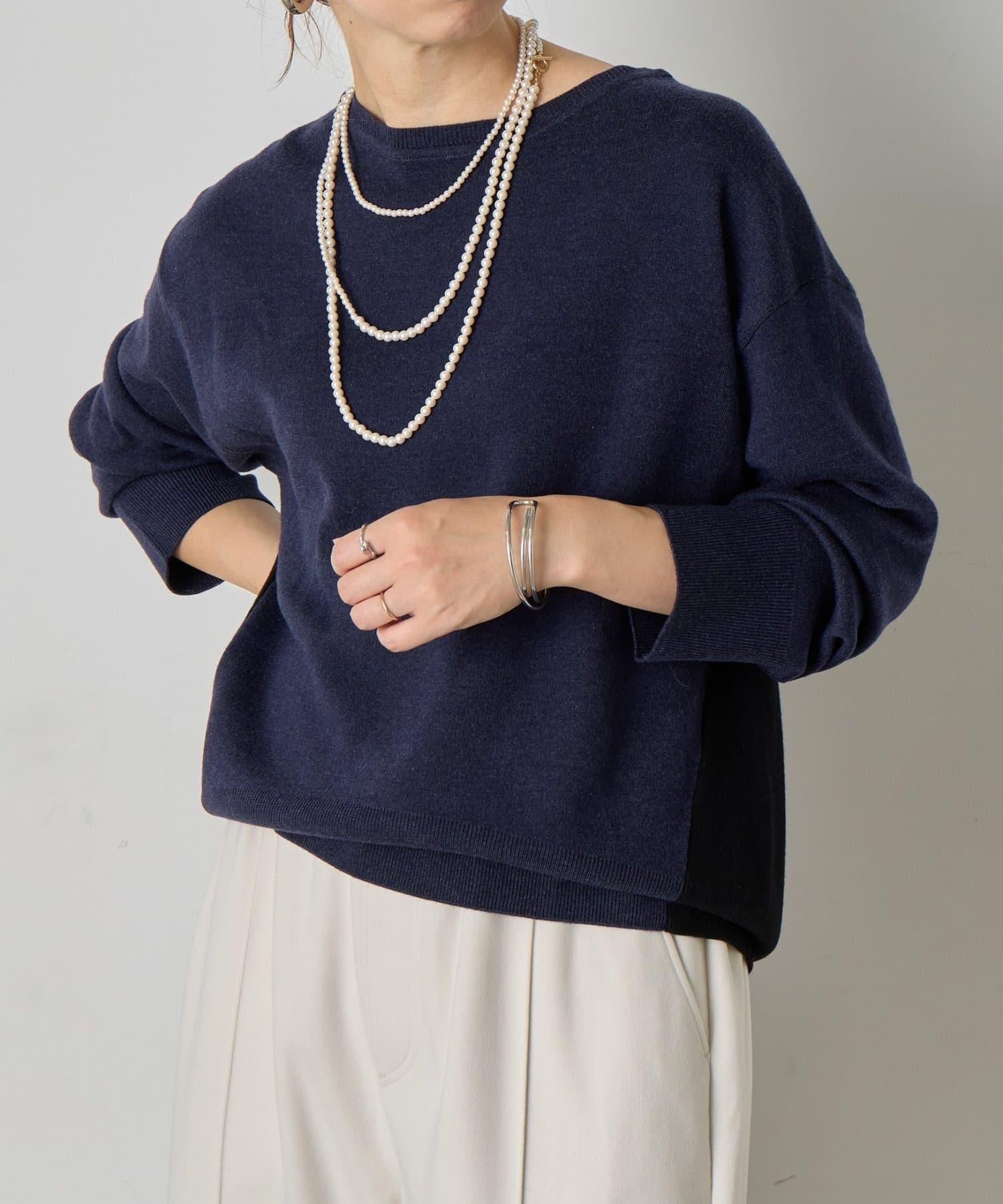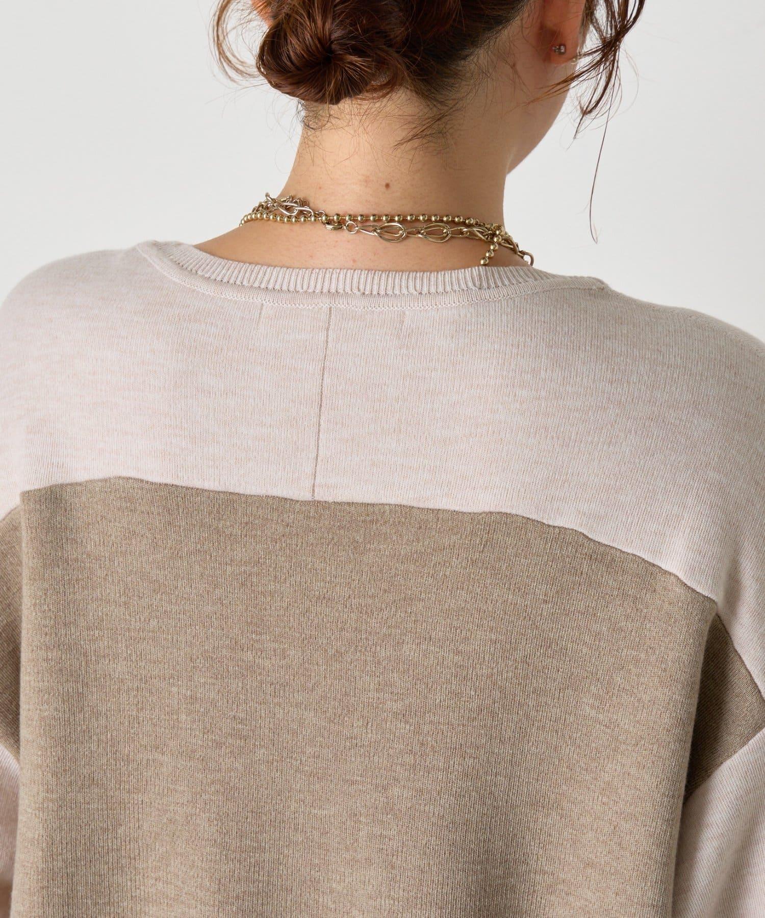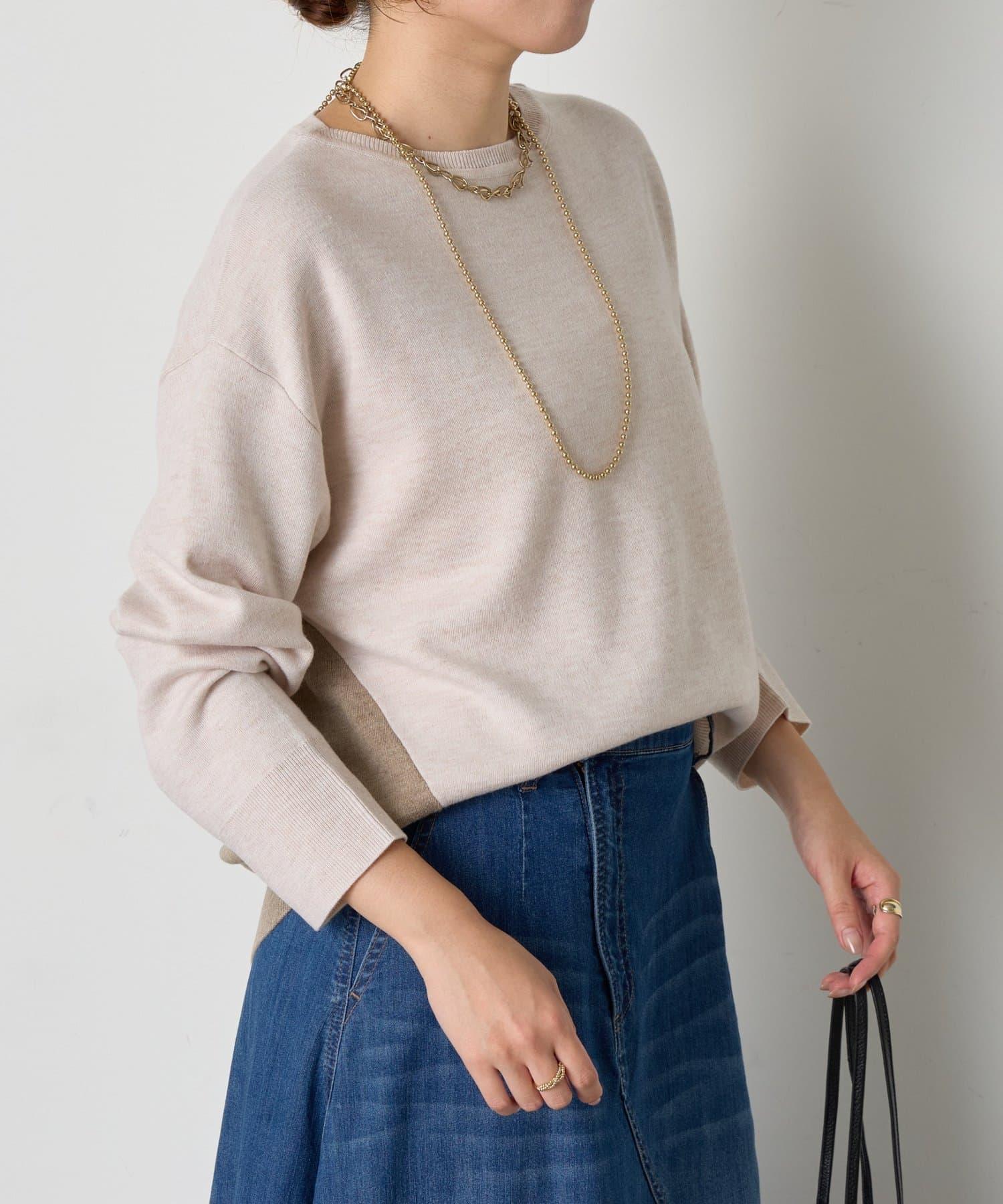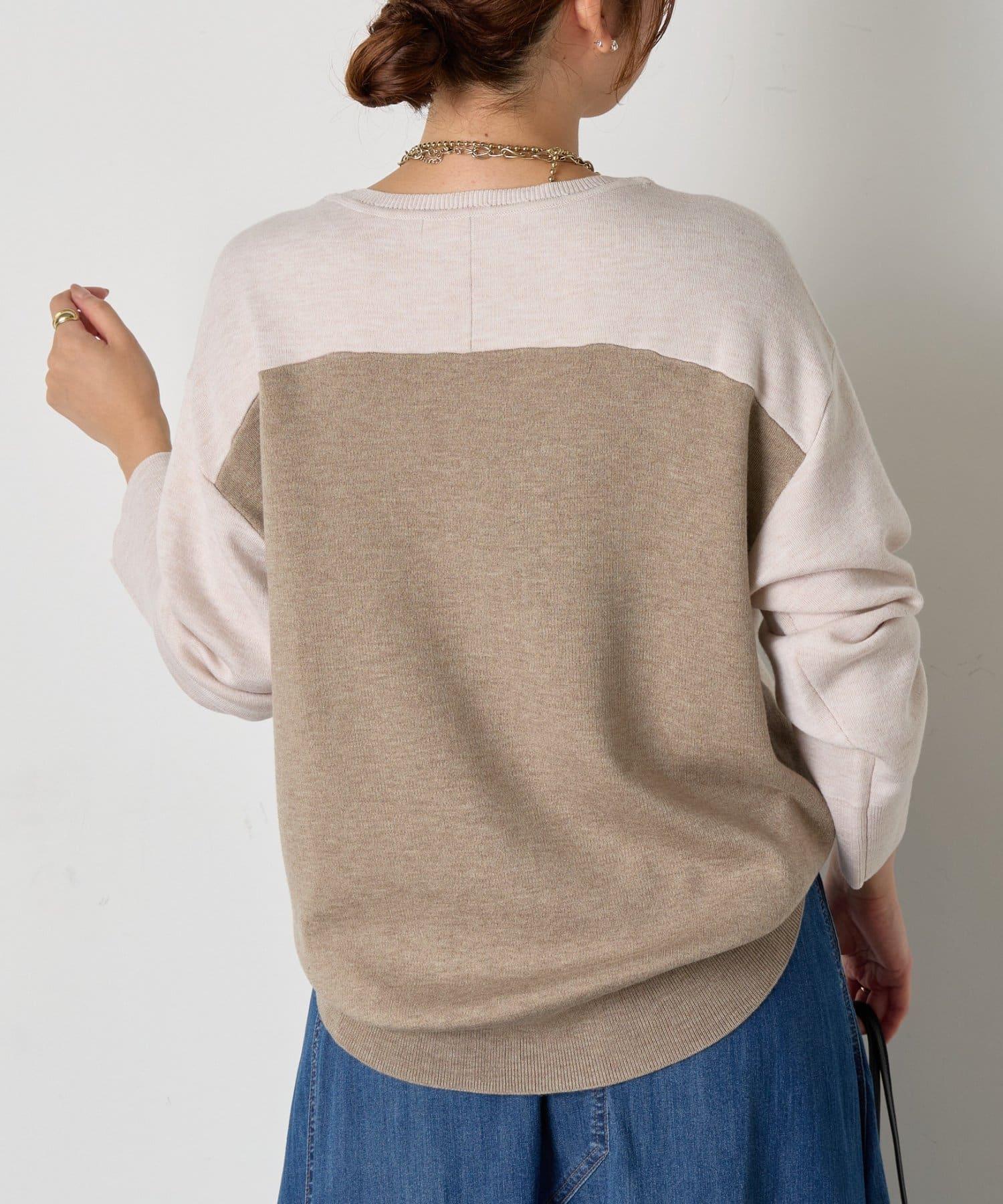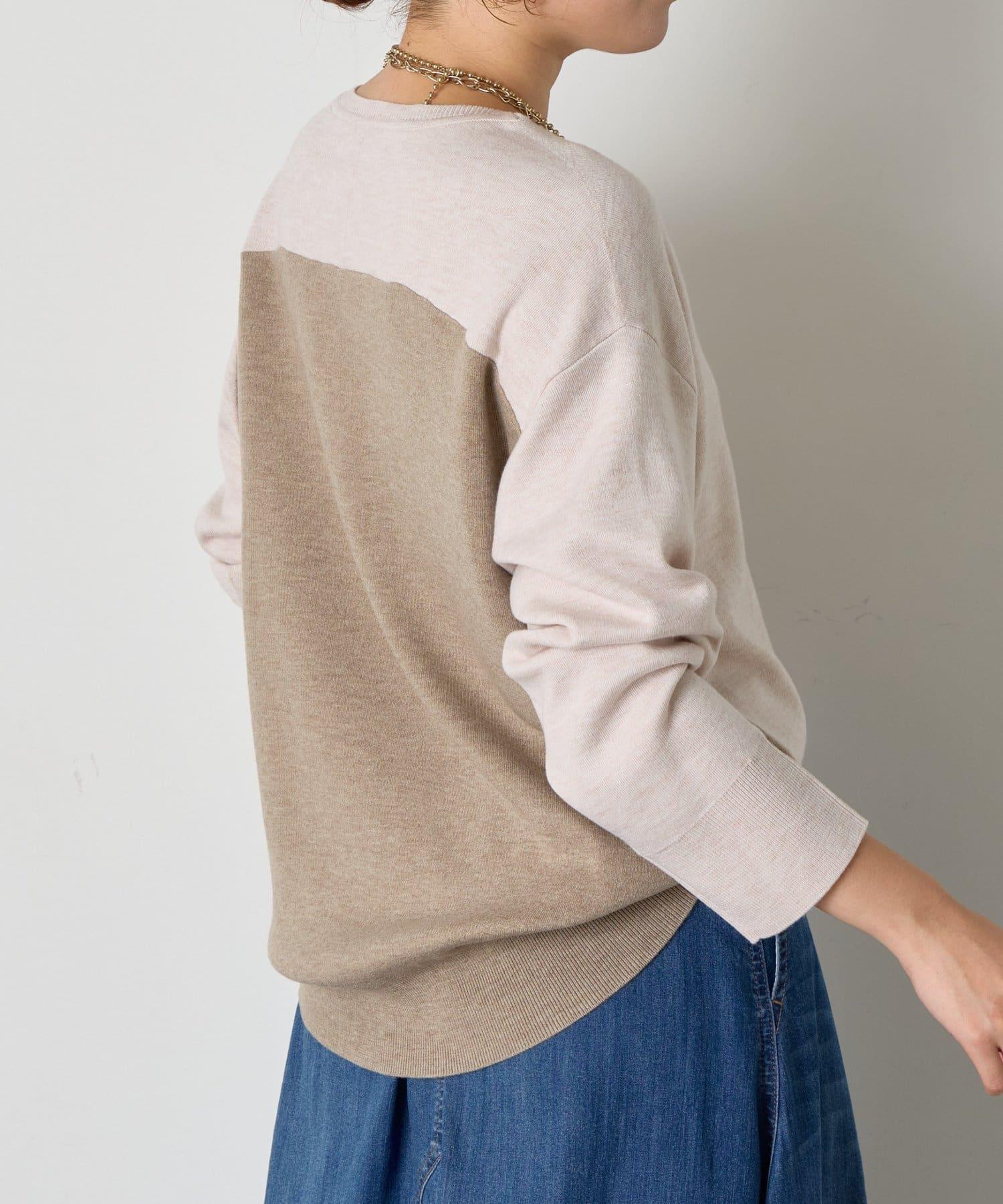 針織衫的下襬採用撞色設計,看起來乾淨利落。