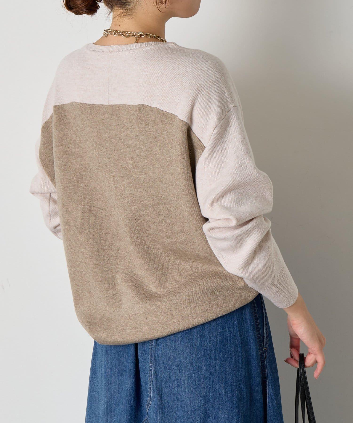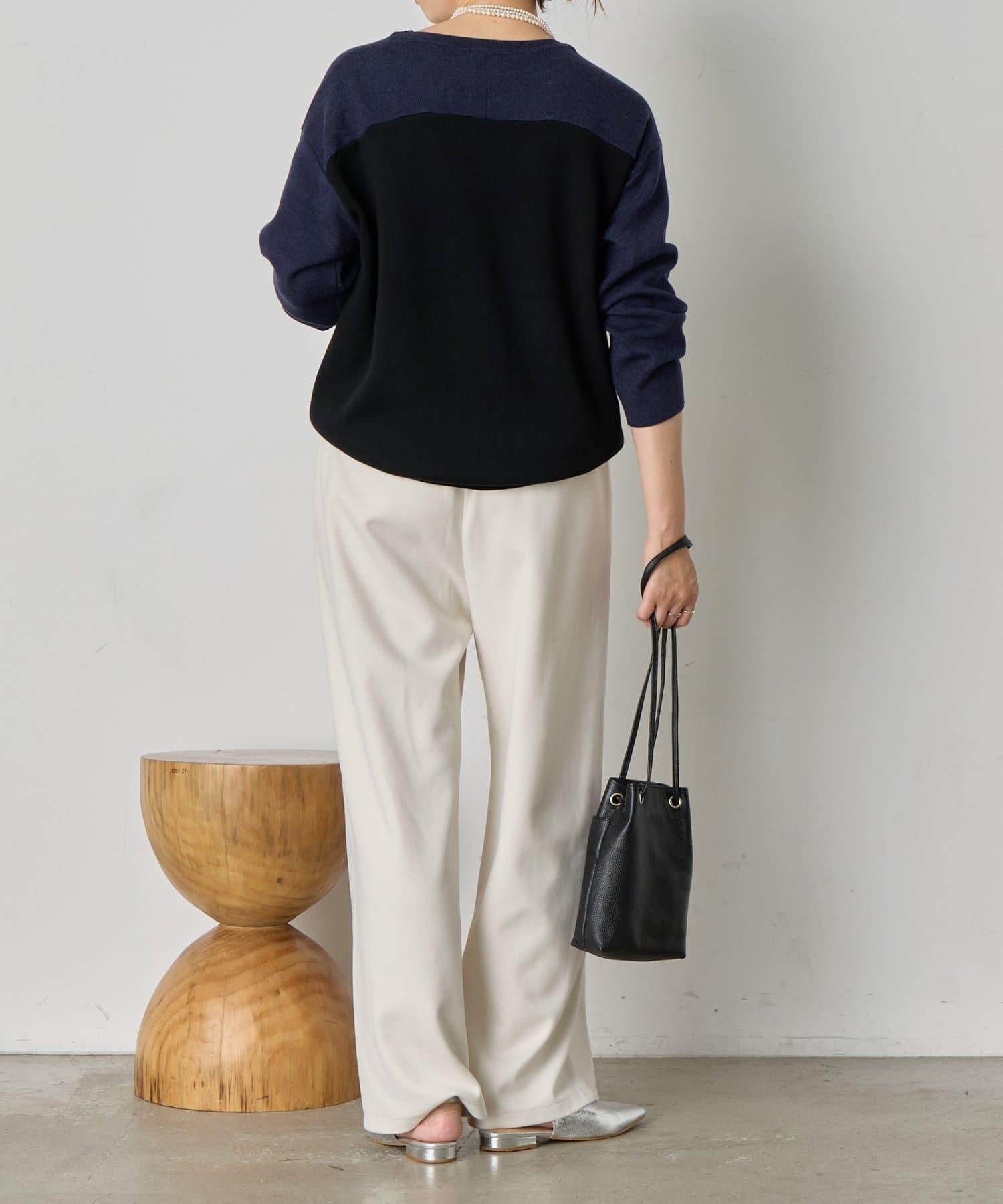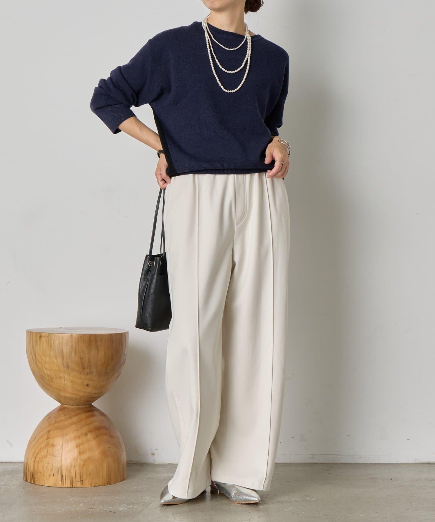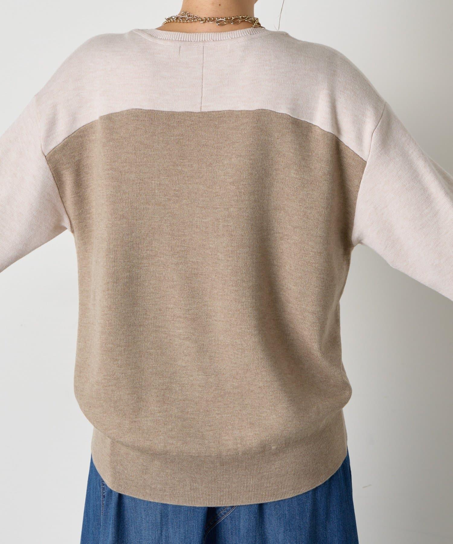 針織衫的下襬採用撞色設計,看起來乾淨利落。