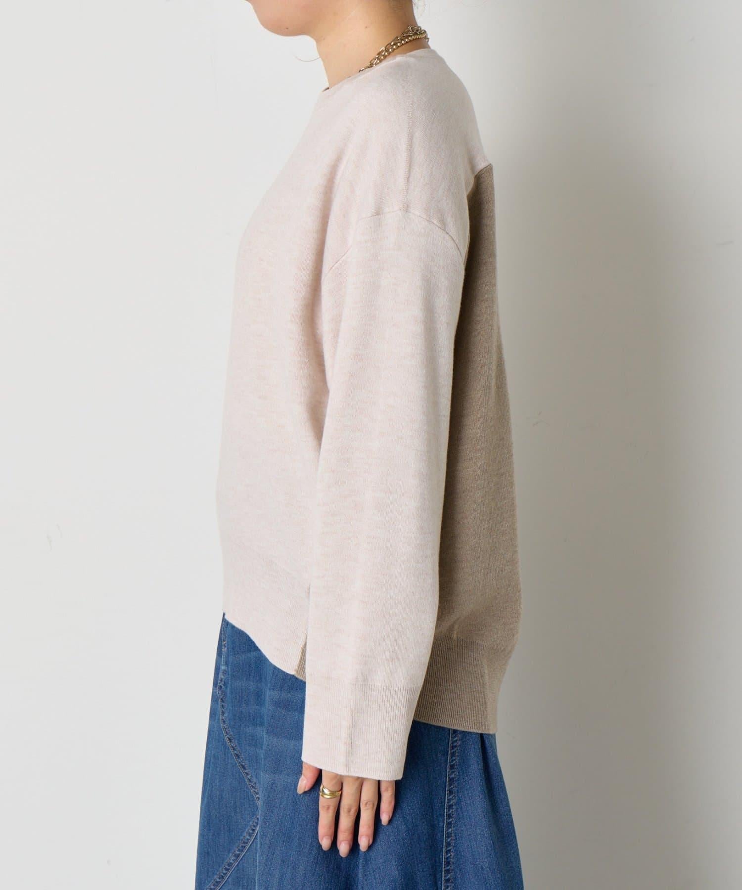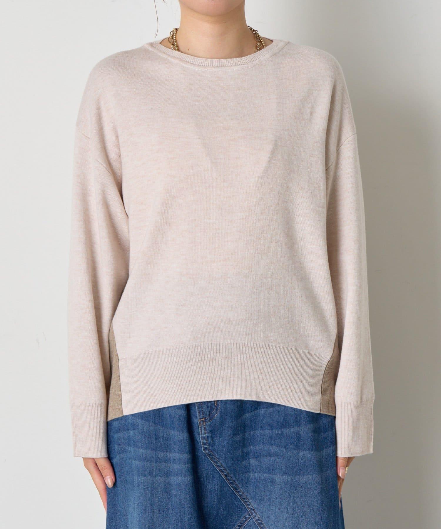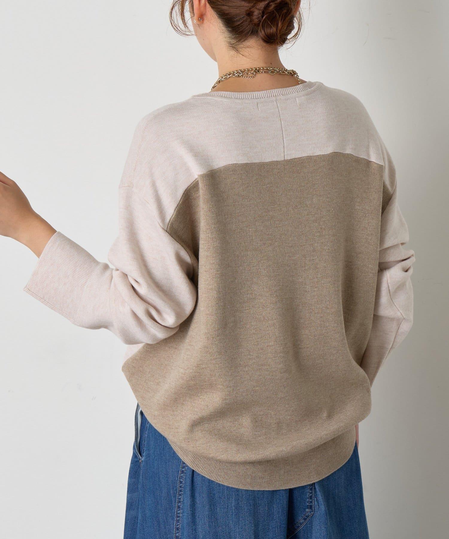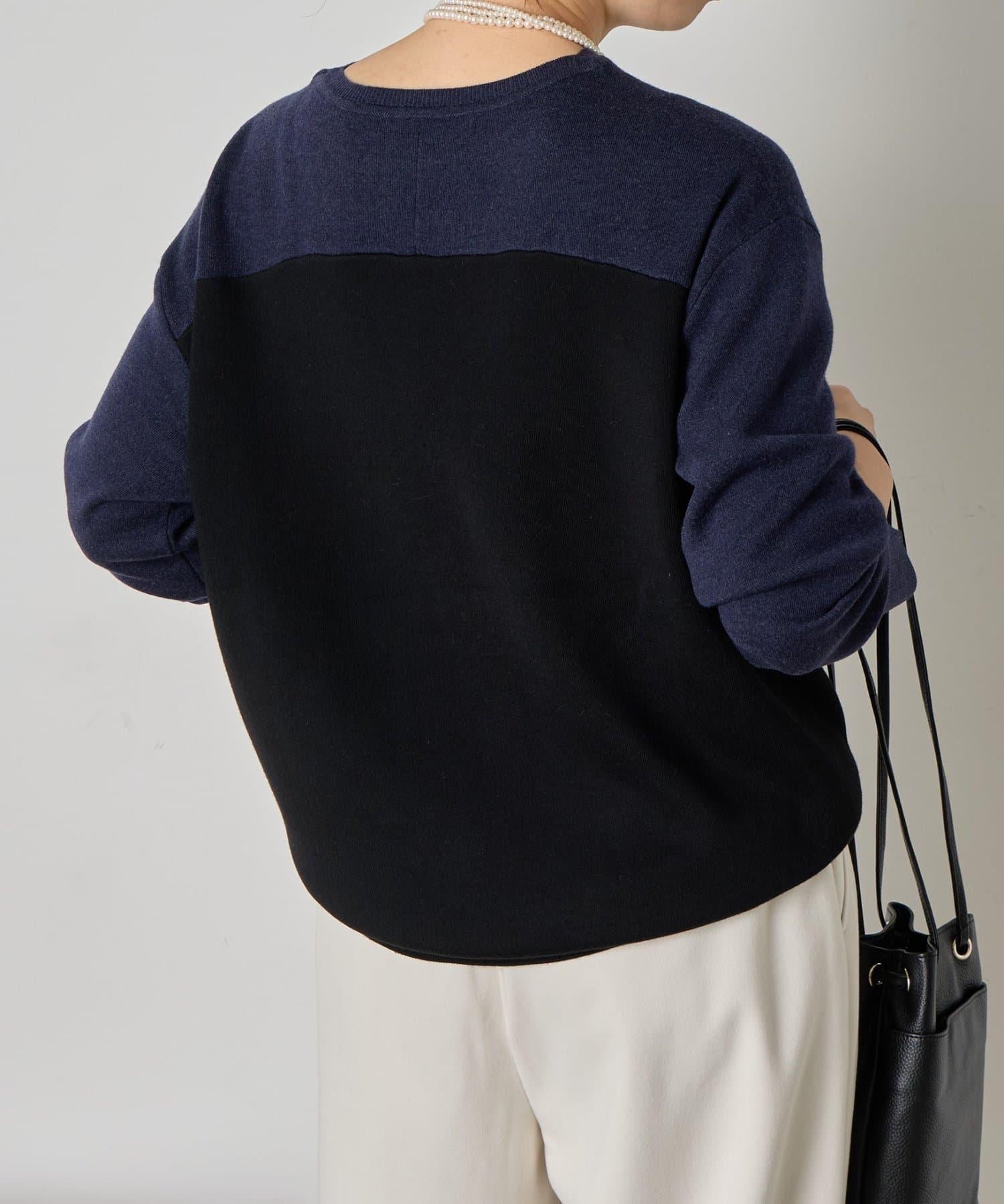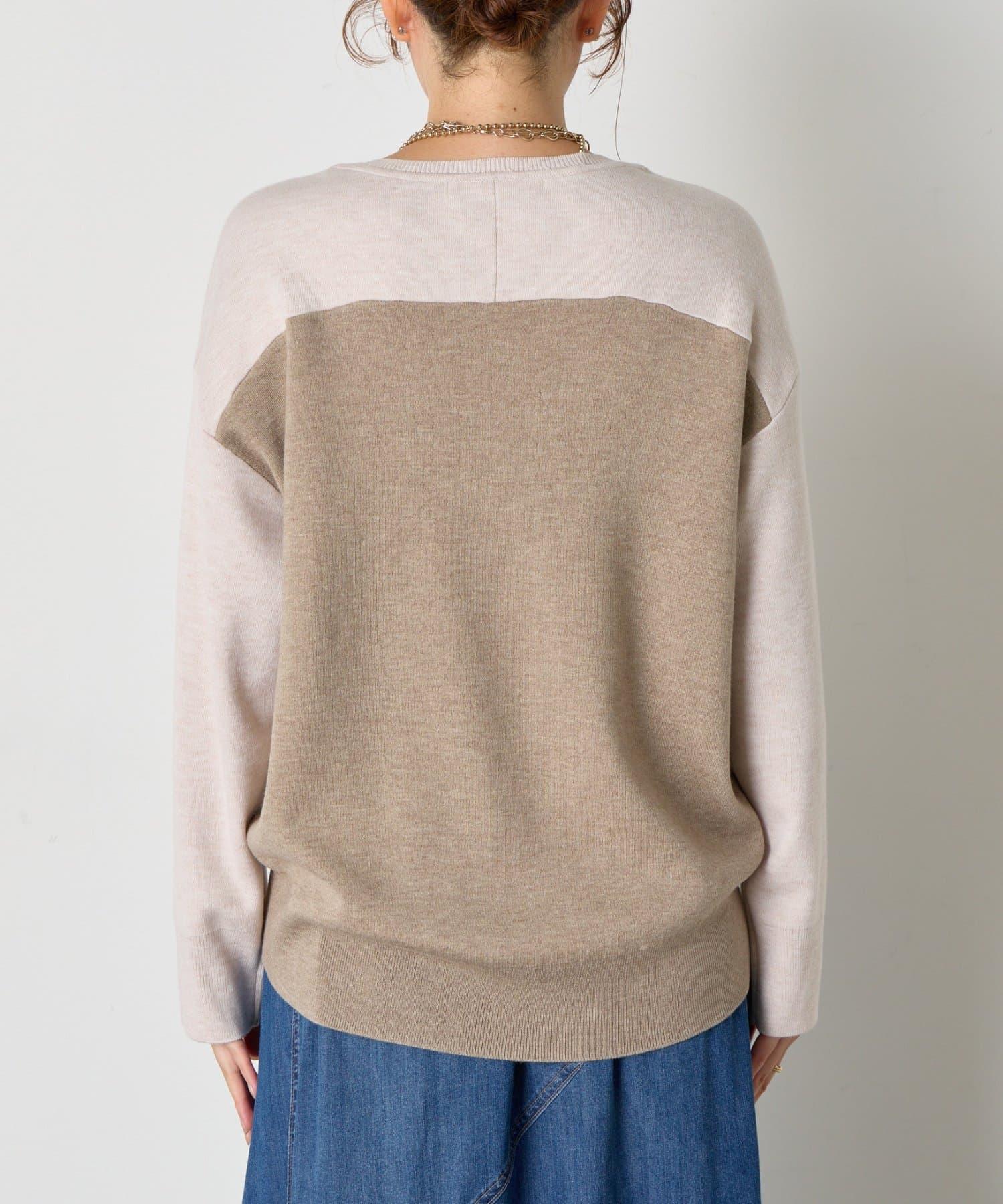 針織衫的下襬採用撞色設計,看起來乾淨利落。