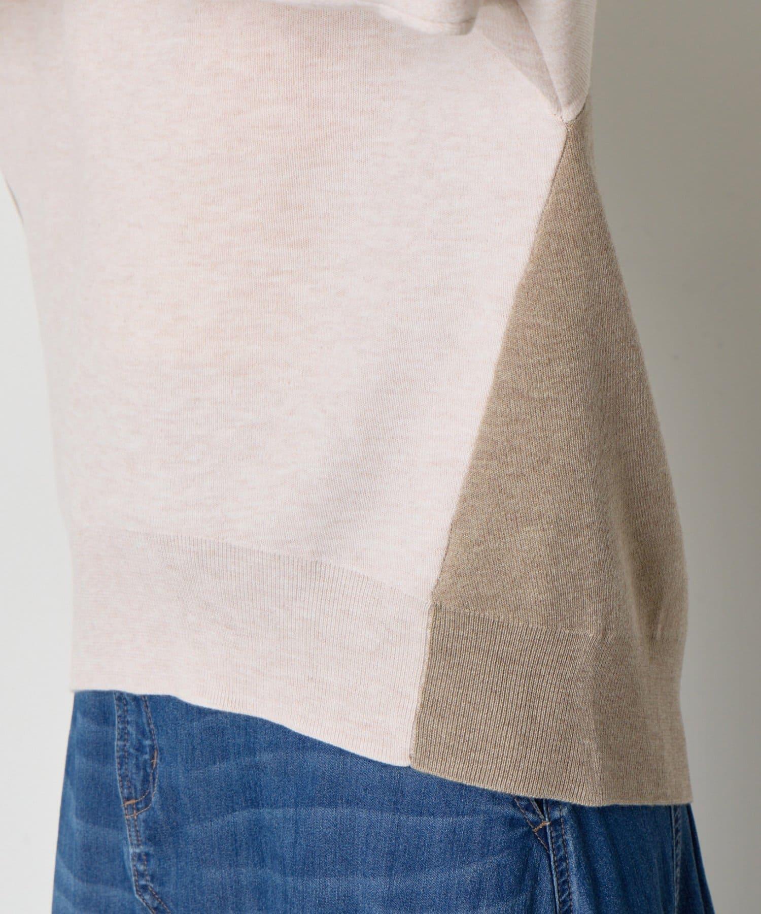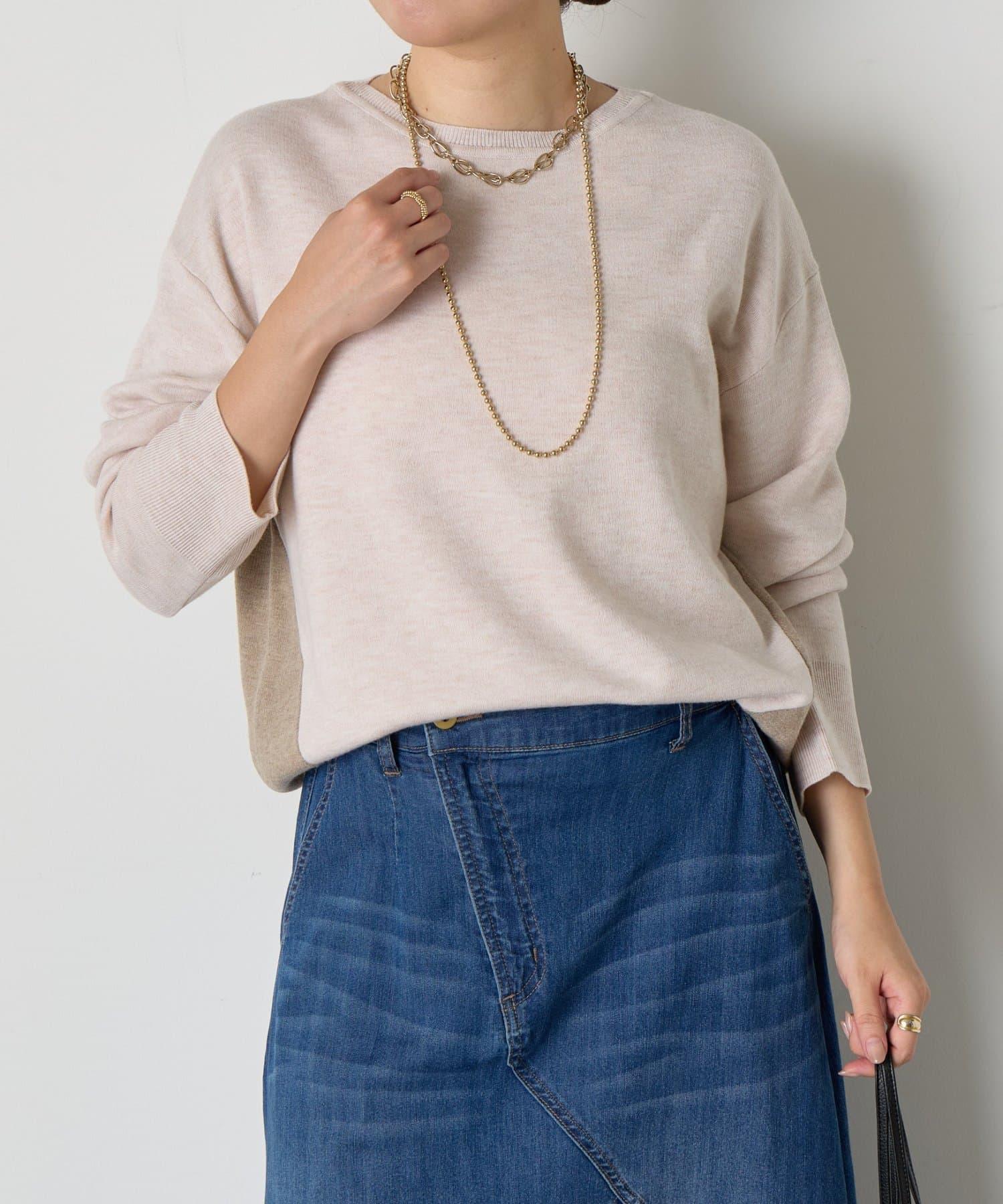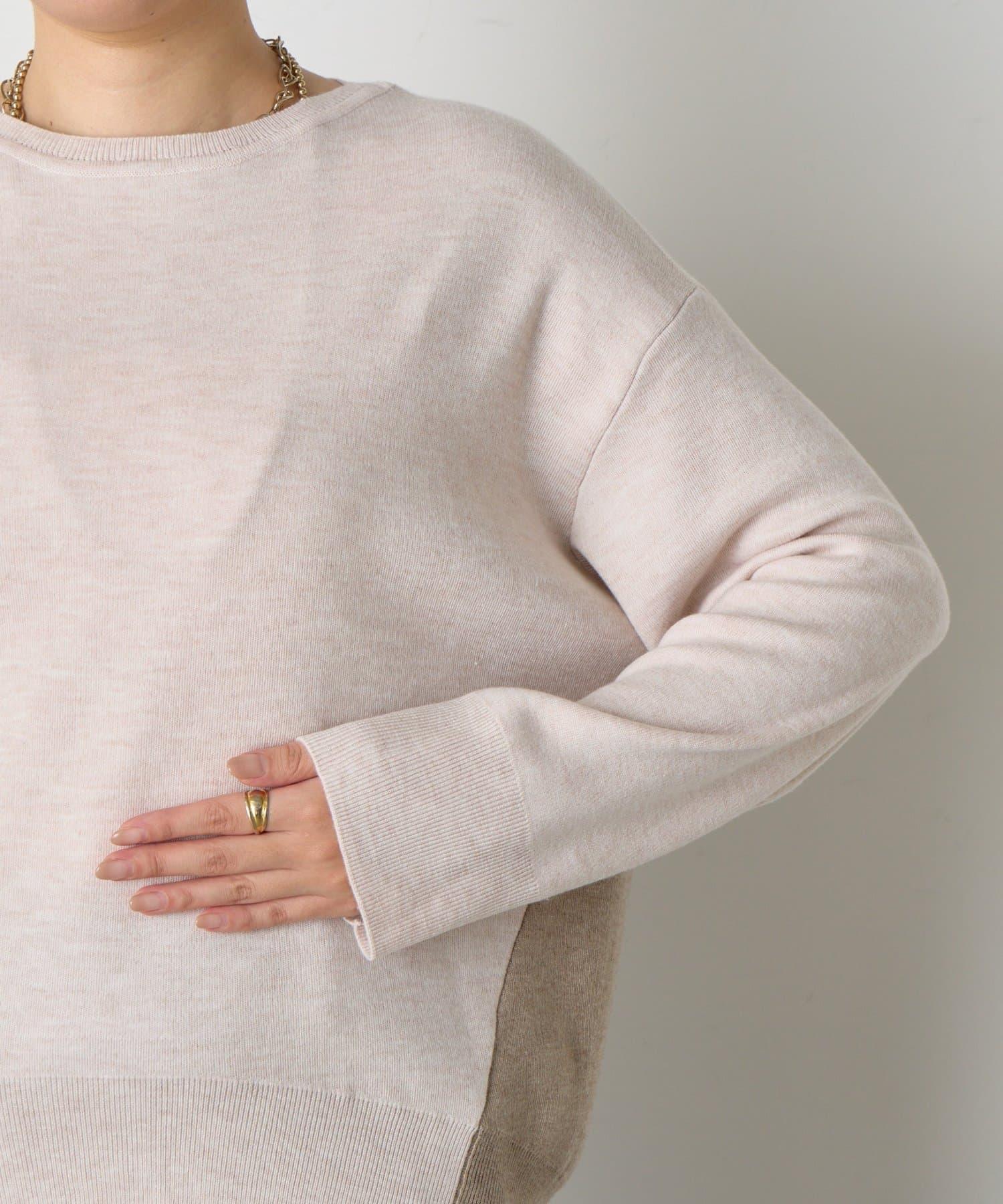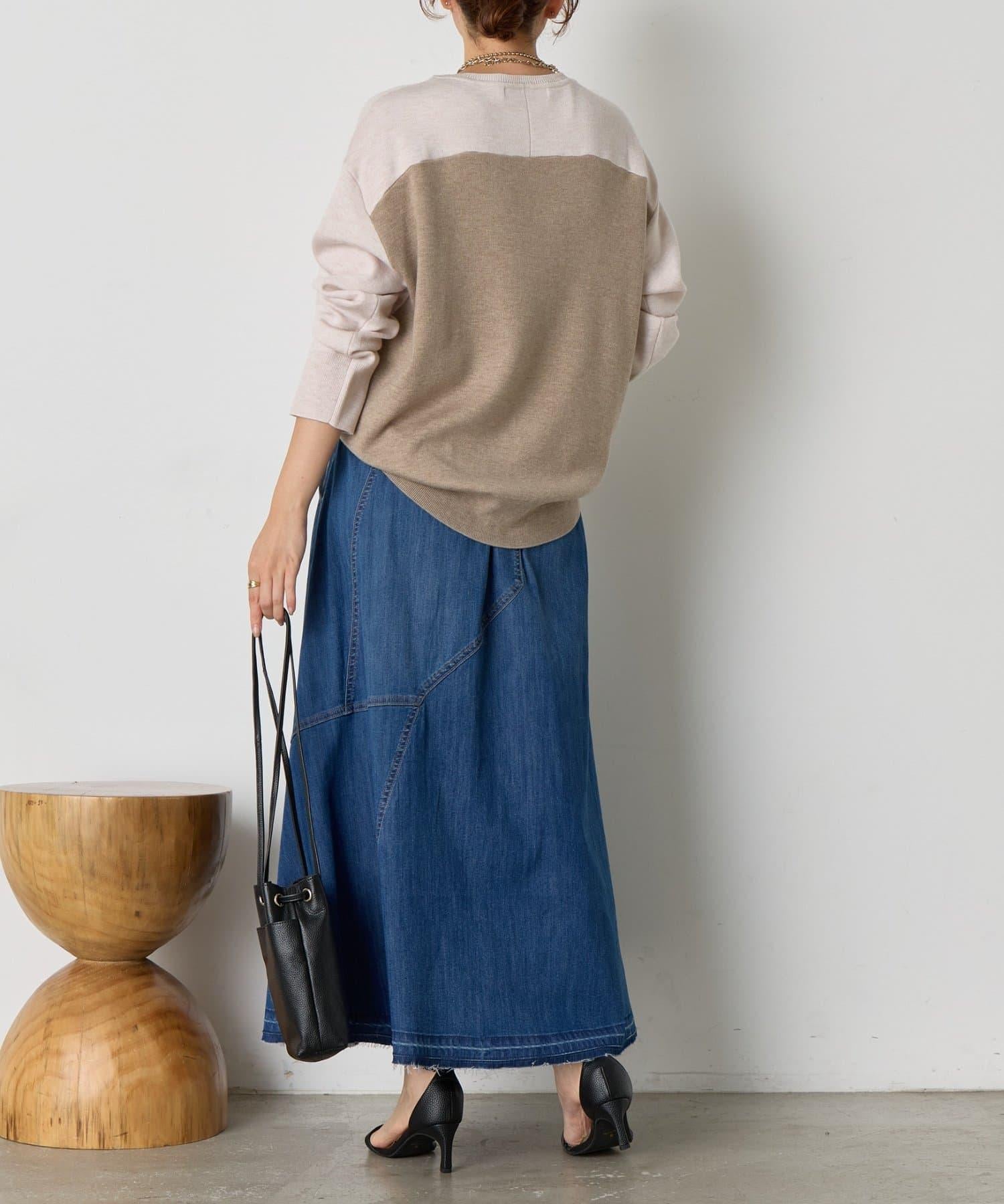 針織衫的下襬採用撞色設計,看起來乾淨利落。