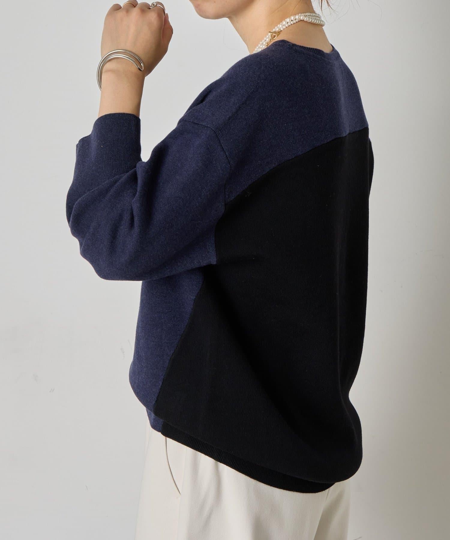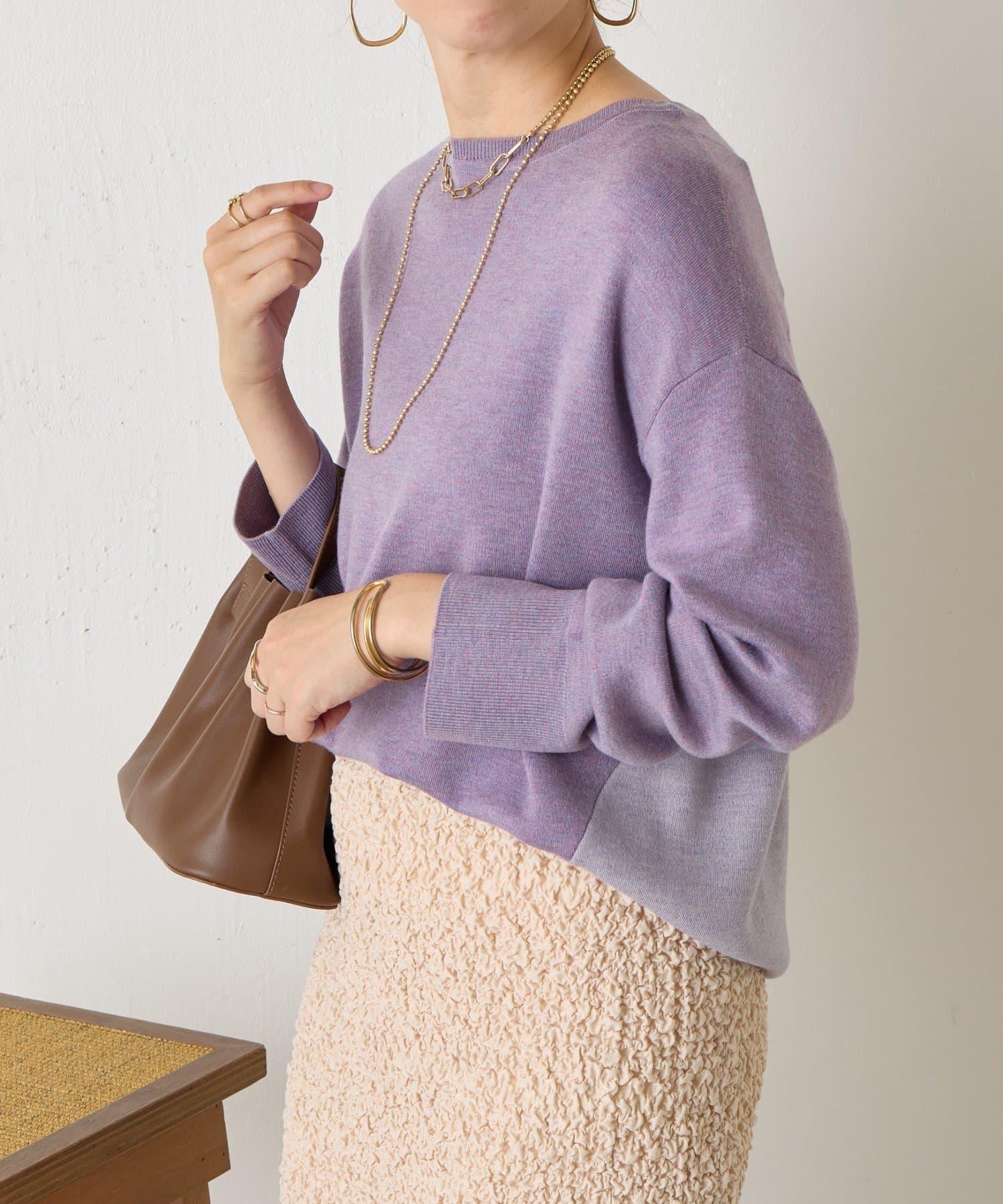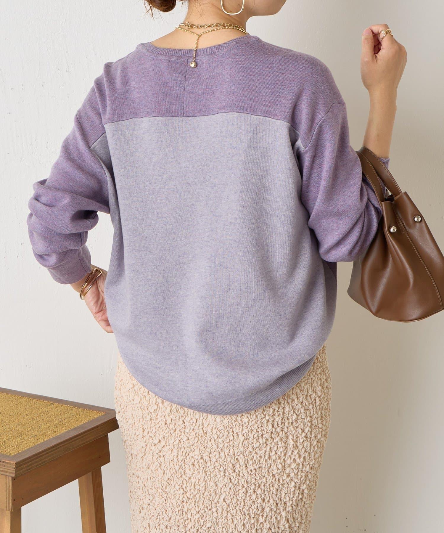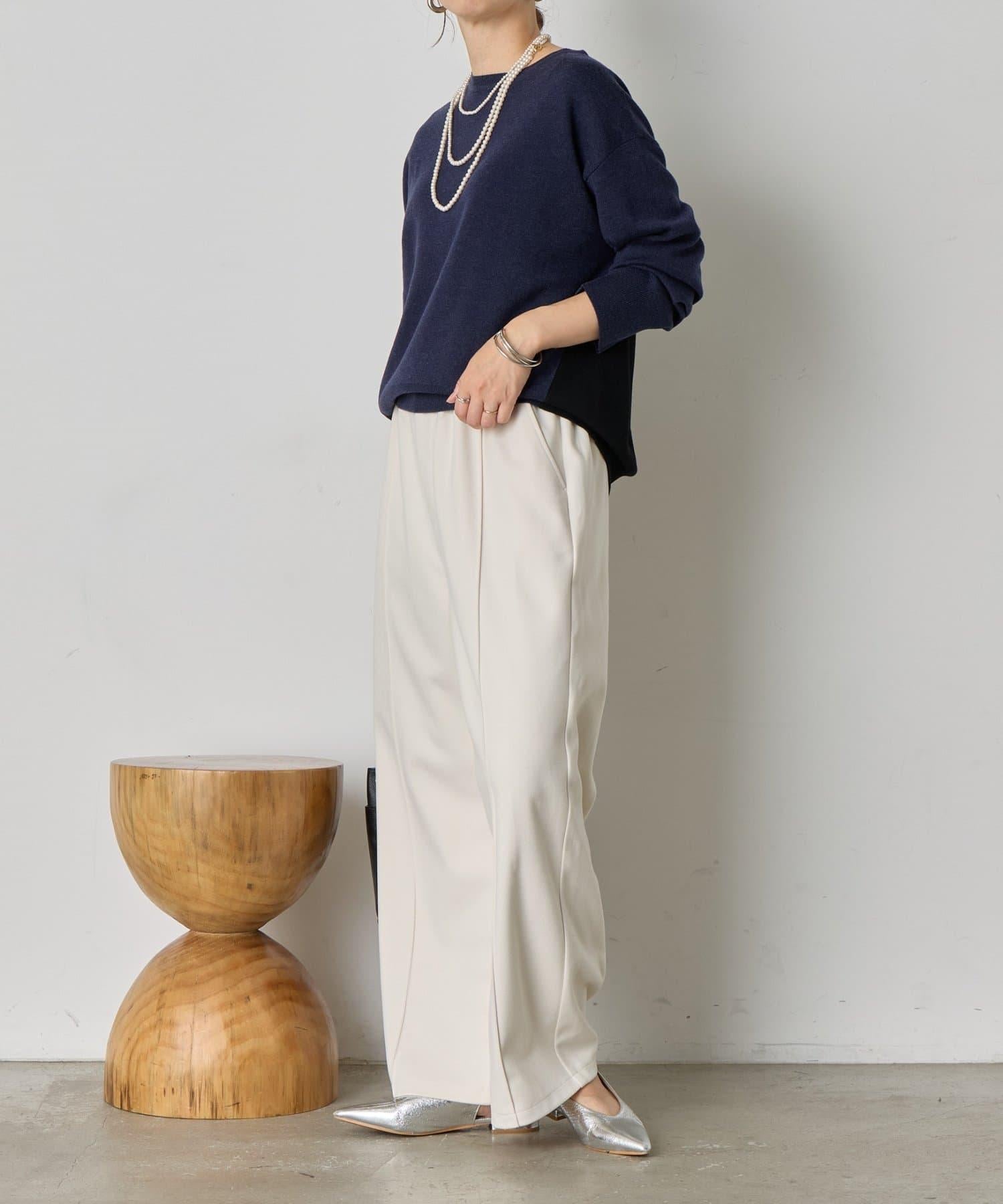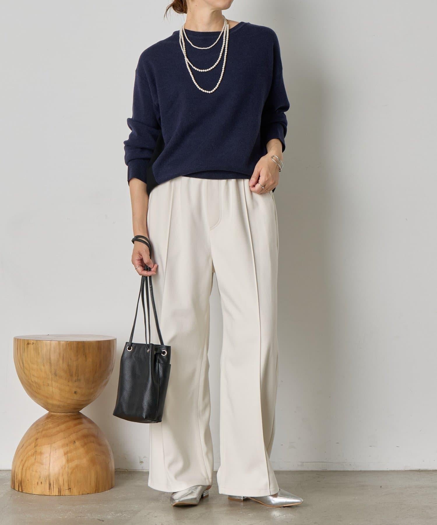 針織衫的下襬採用撞色設計,看起來乾淨利落。