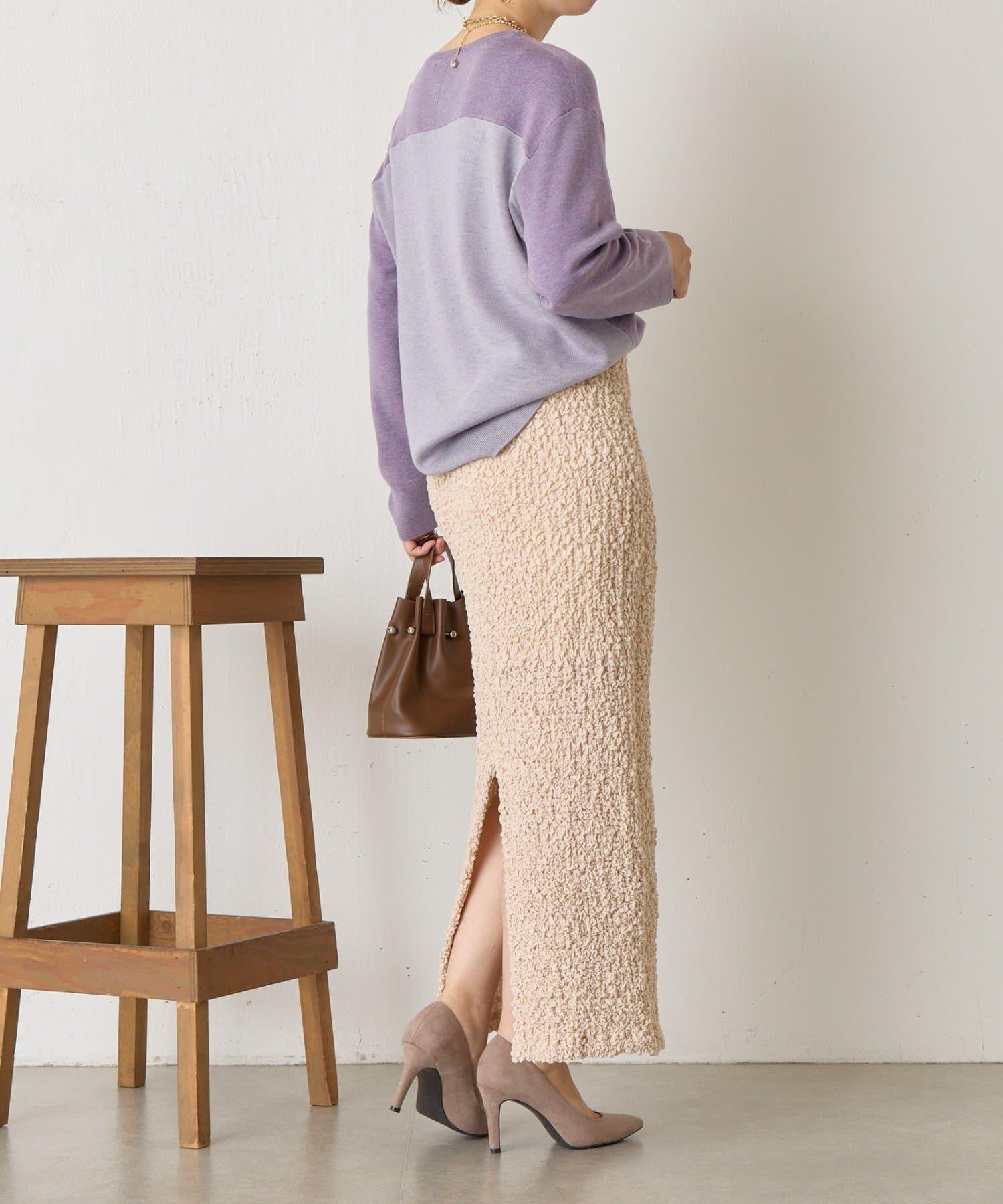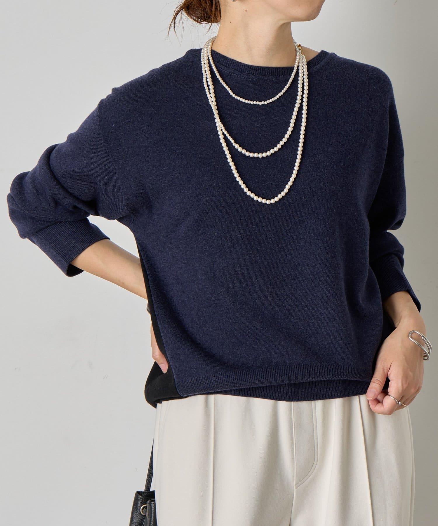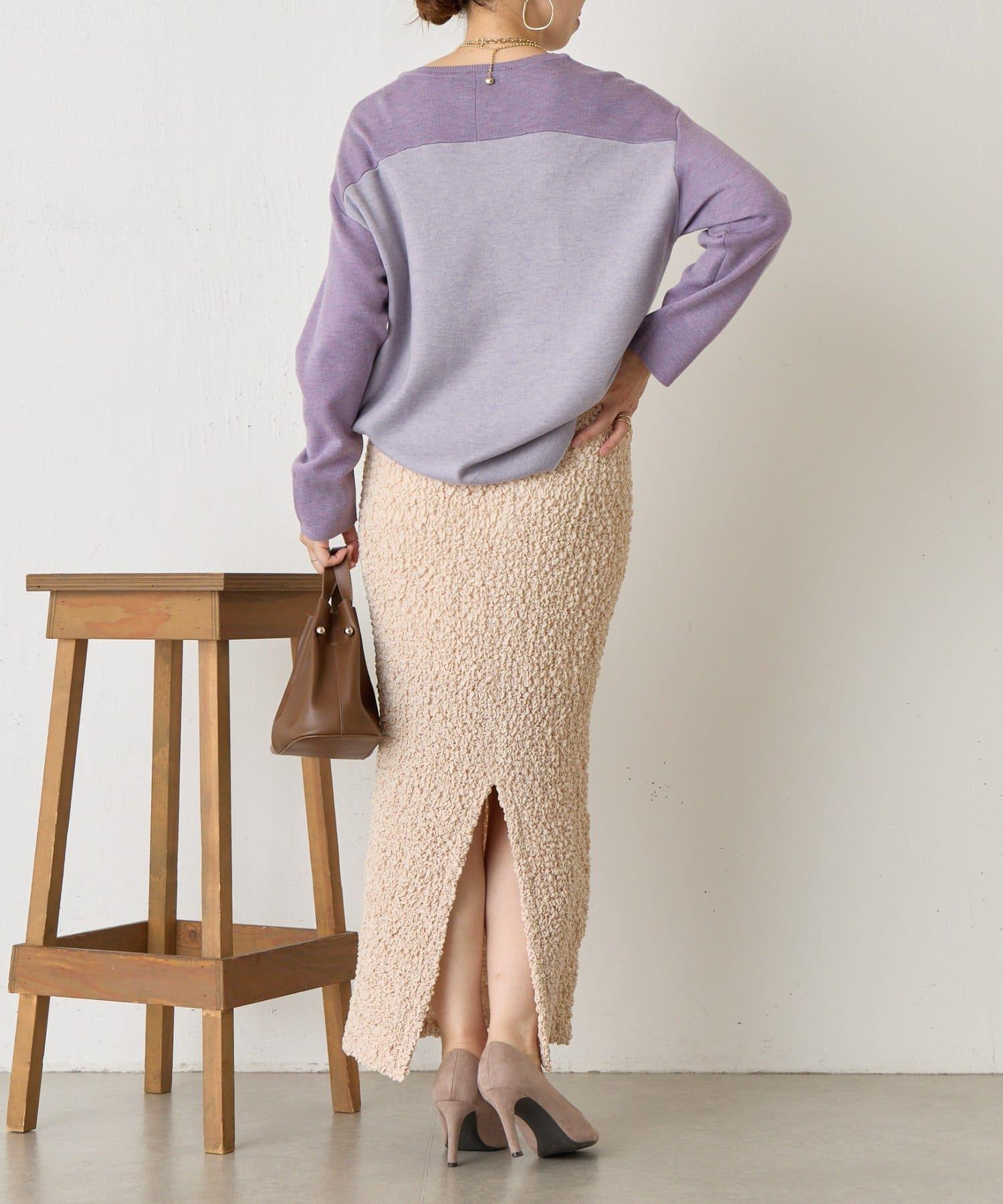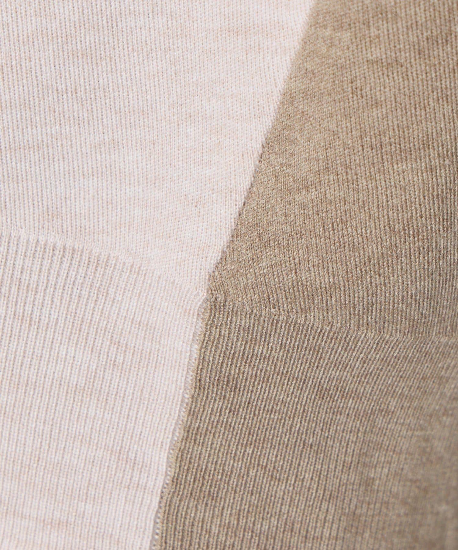 針織衫的下襬採用撞色設計,看起來乾淨利落。
