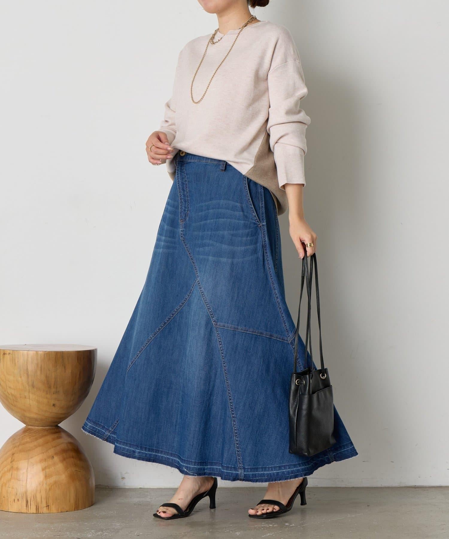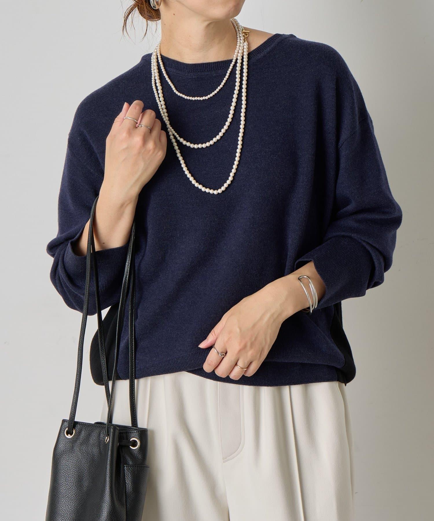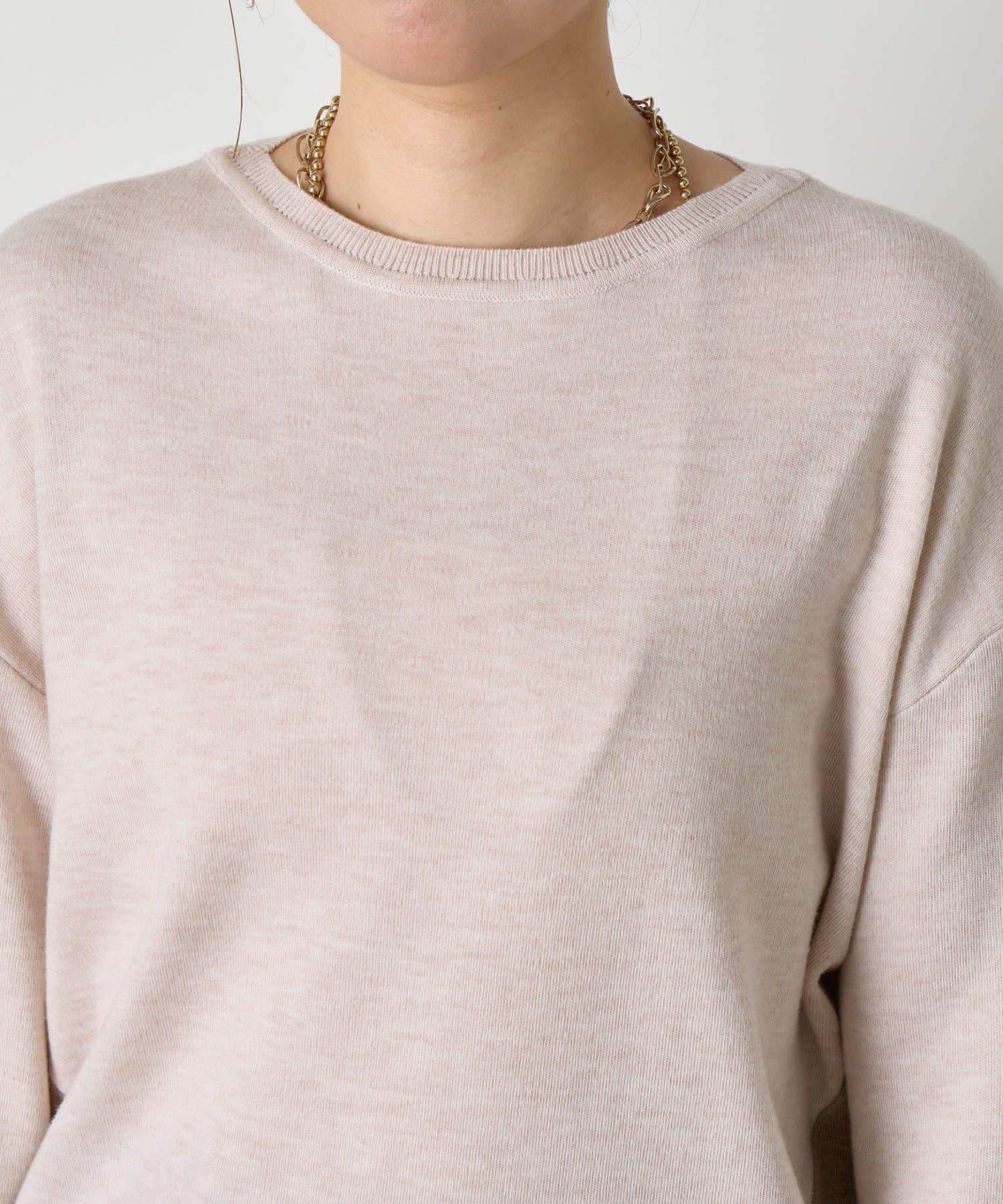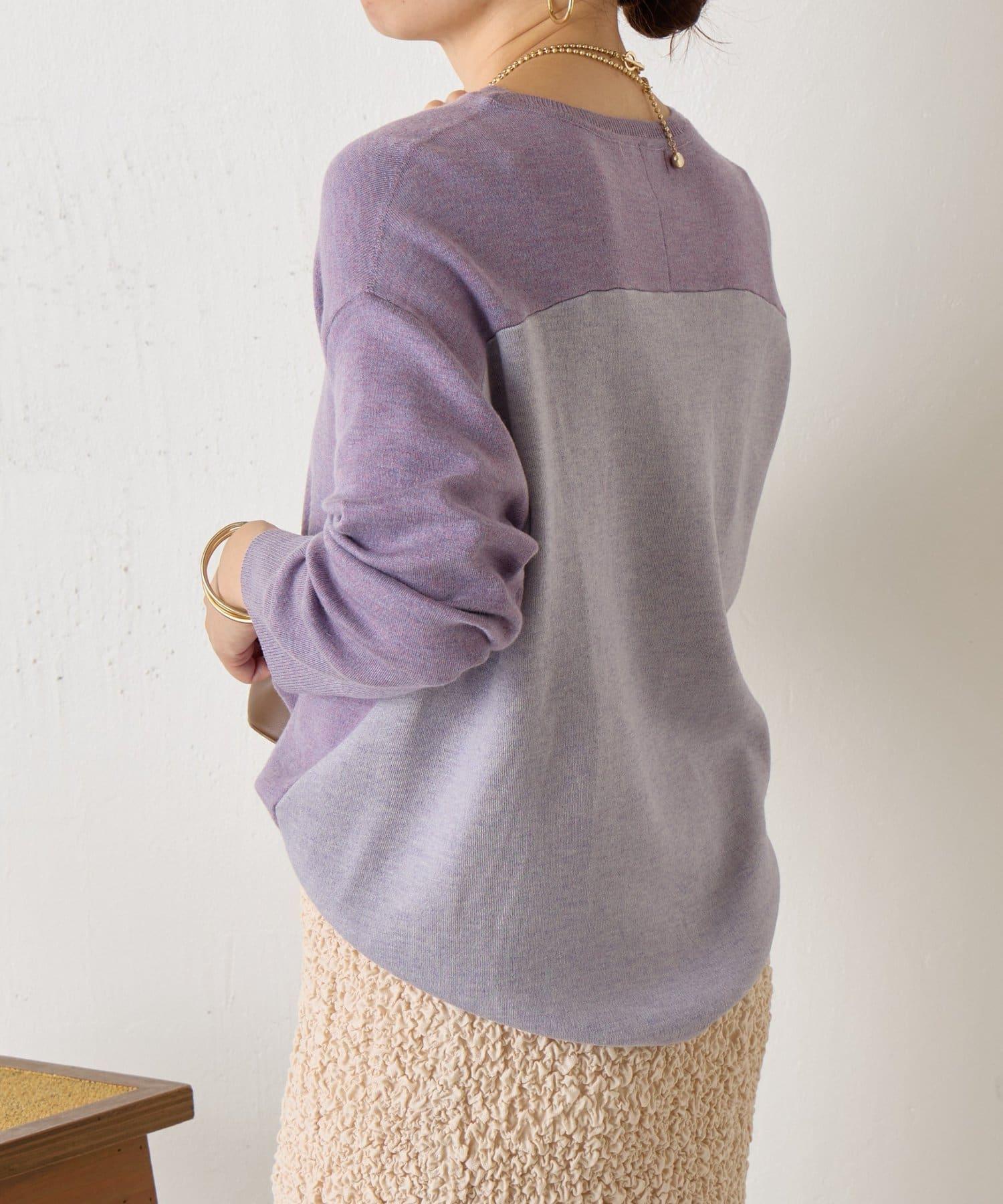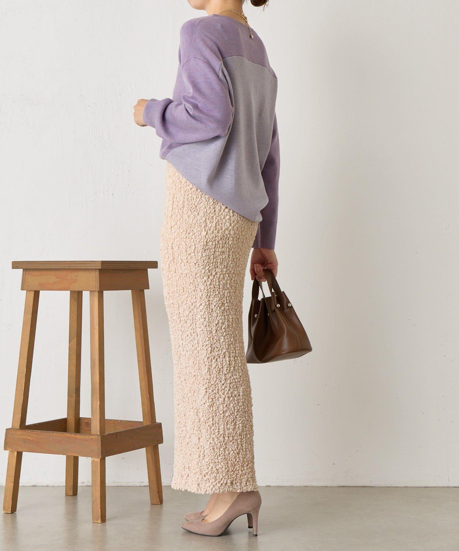 針織衫的下襬採用撞色設計,看起來乾淨利落。