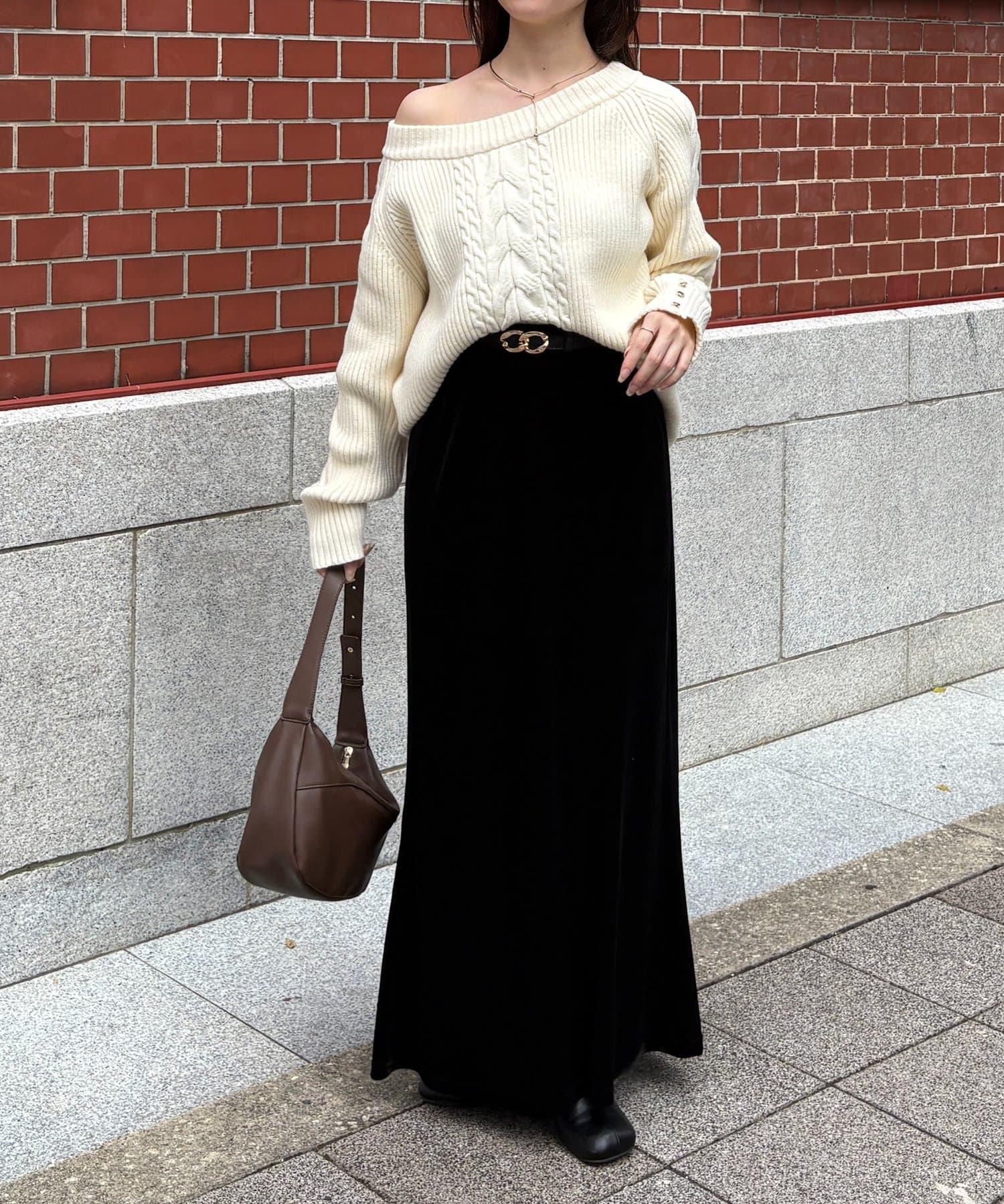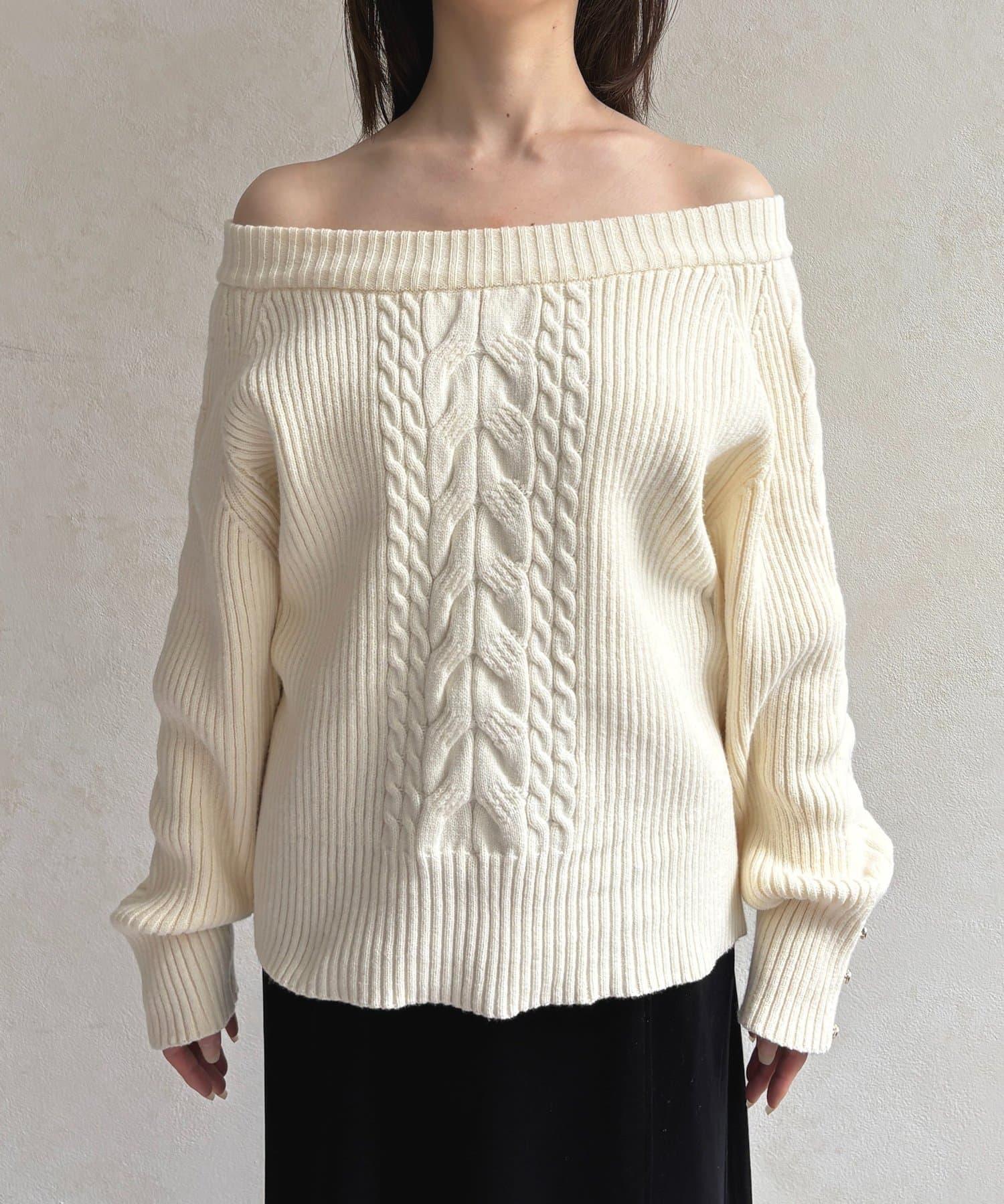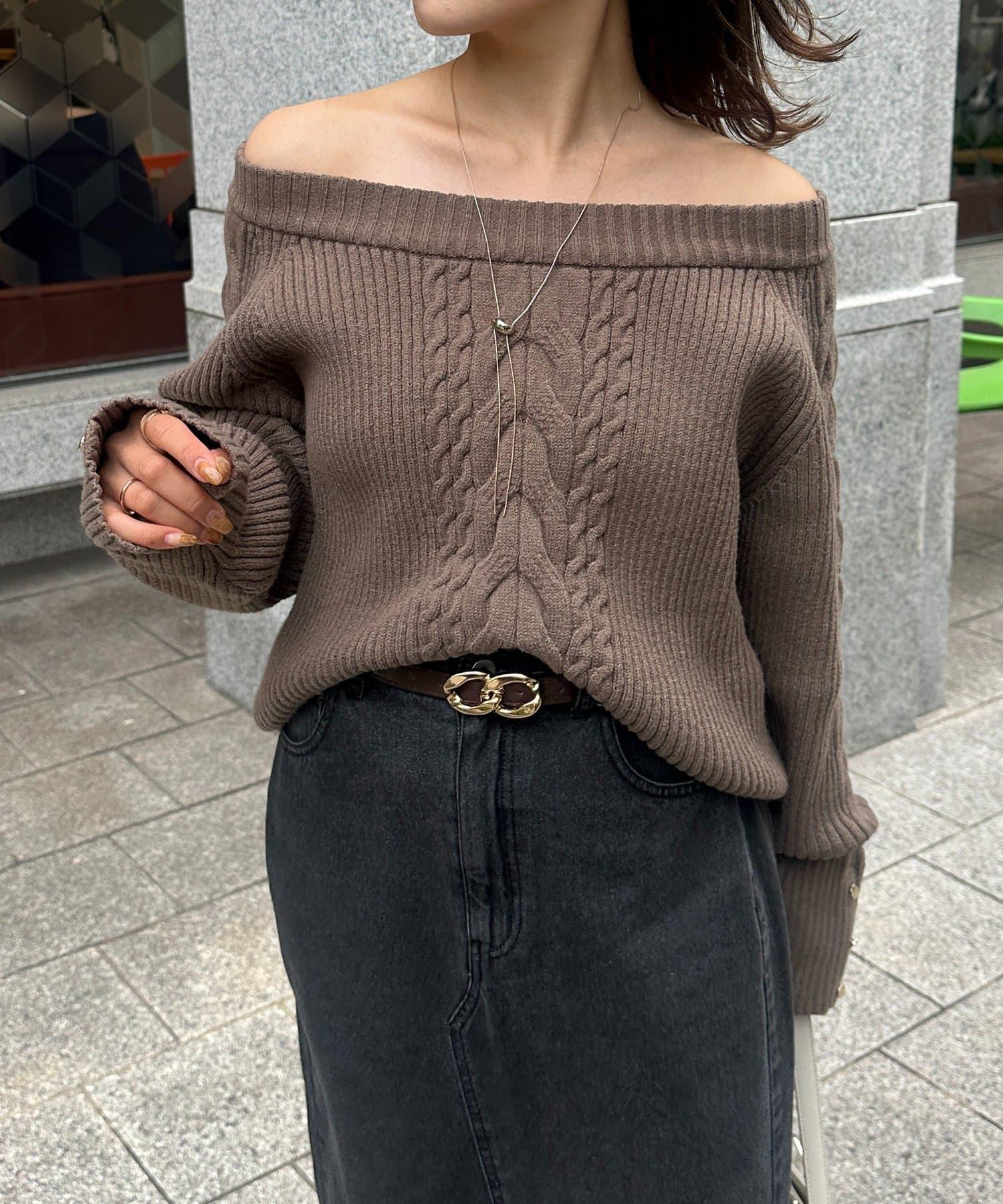 #Boatneck #Cable knit #One-shoulder #Off-the-shoulder#針織衫