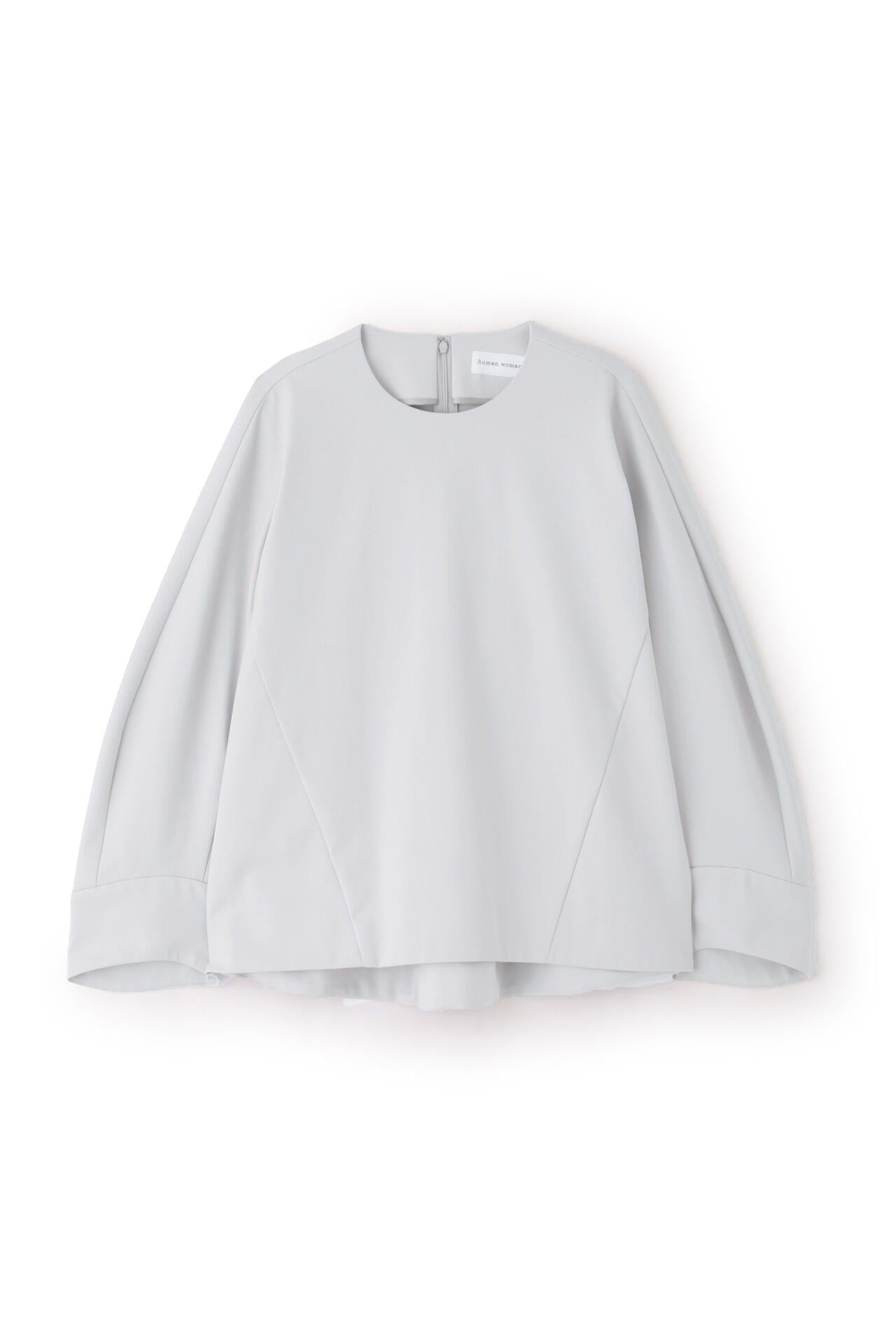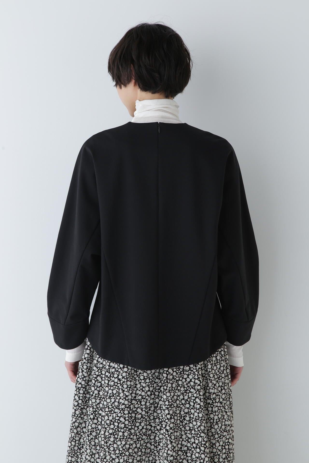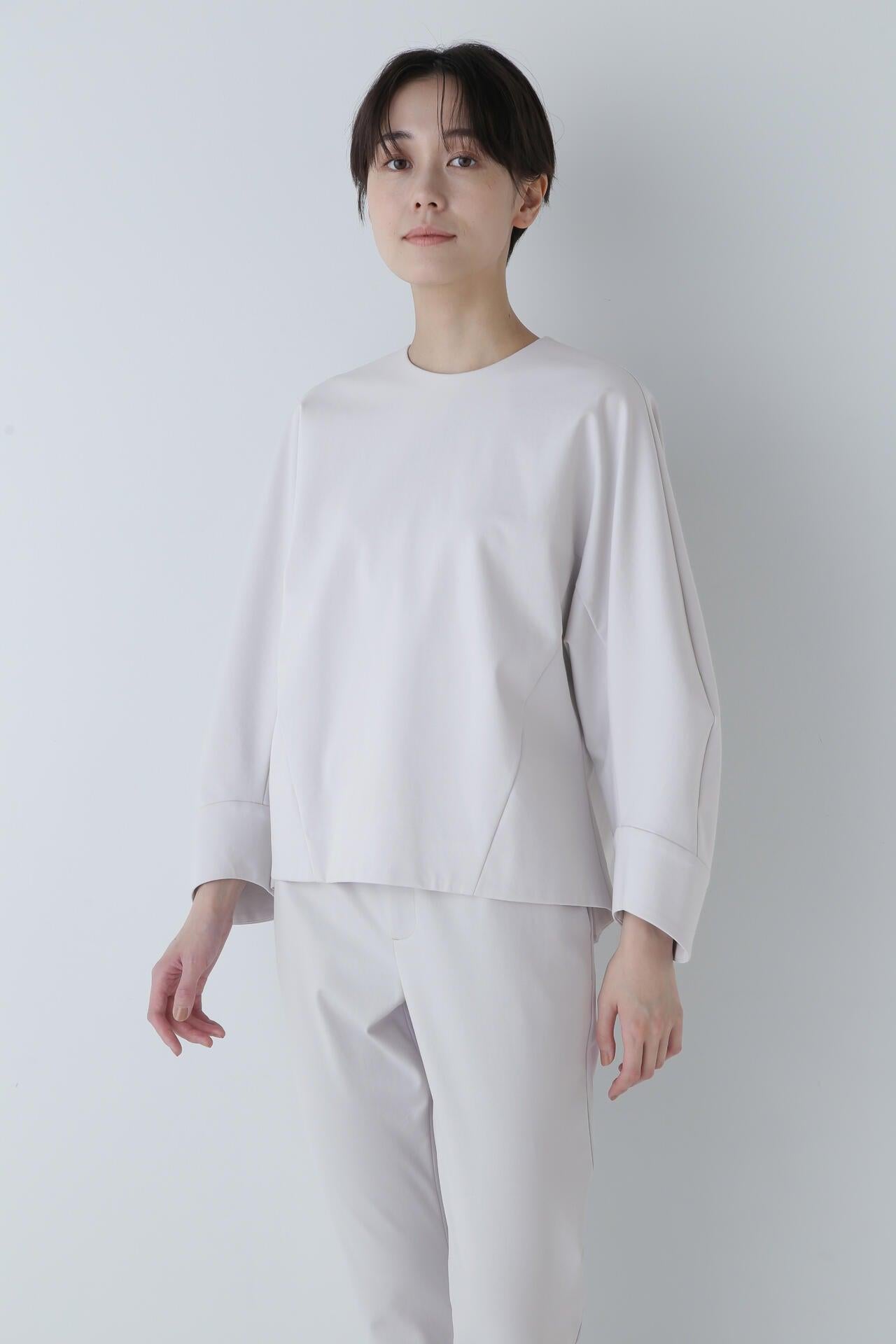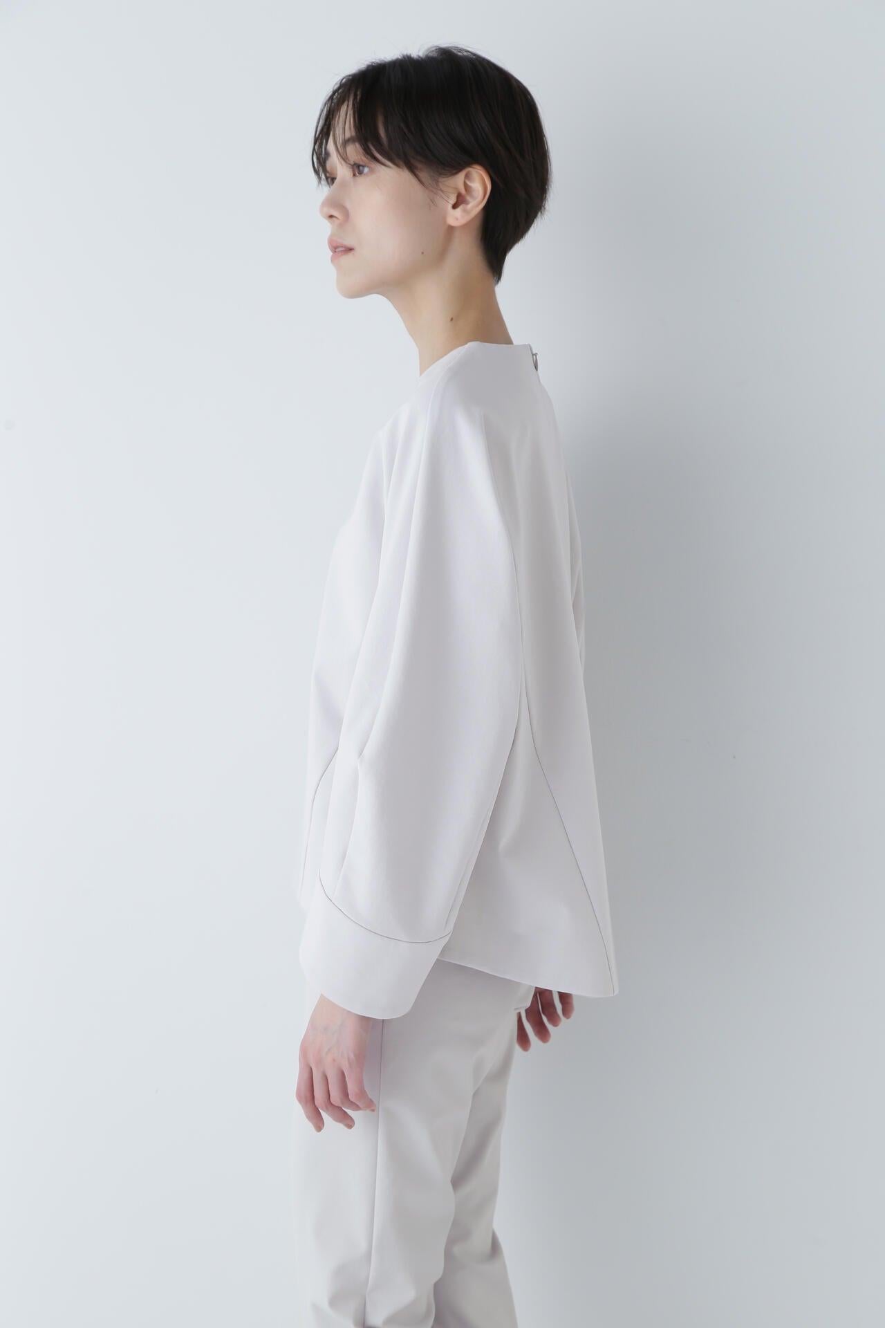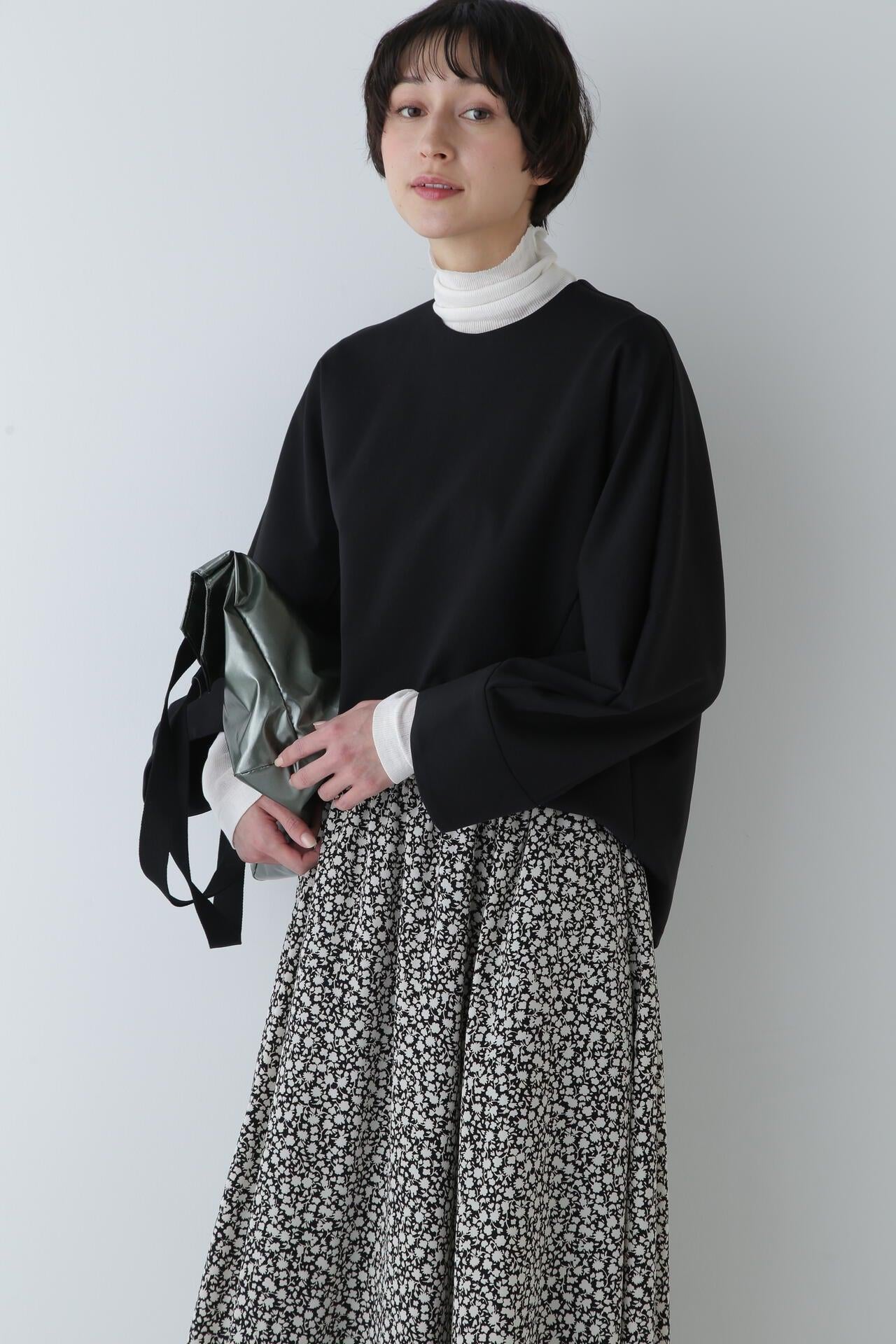 以三維切換設計為輪廓的套頭上衣 [設計特點] 從衣領開始採用褶襉細節的箱形套頭上衣。 上衣採用彈力蓬鬆面料,使用絨毛少的緊密紗線。面料具有彈跳感。 由於前後不同,上衣很容易與各種下裝(從裙子到褲子)搭配。