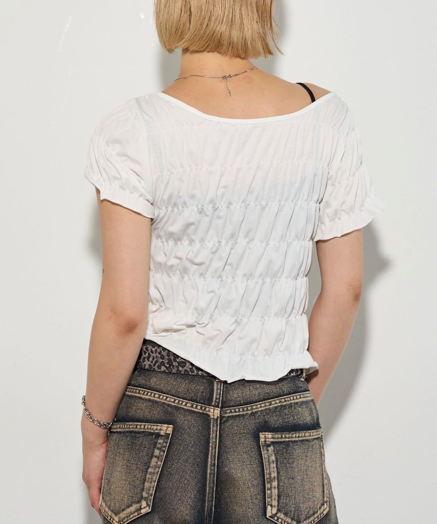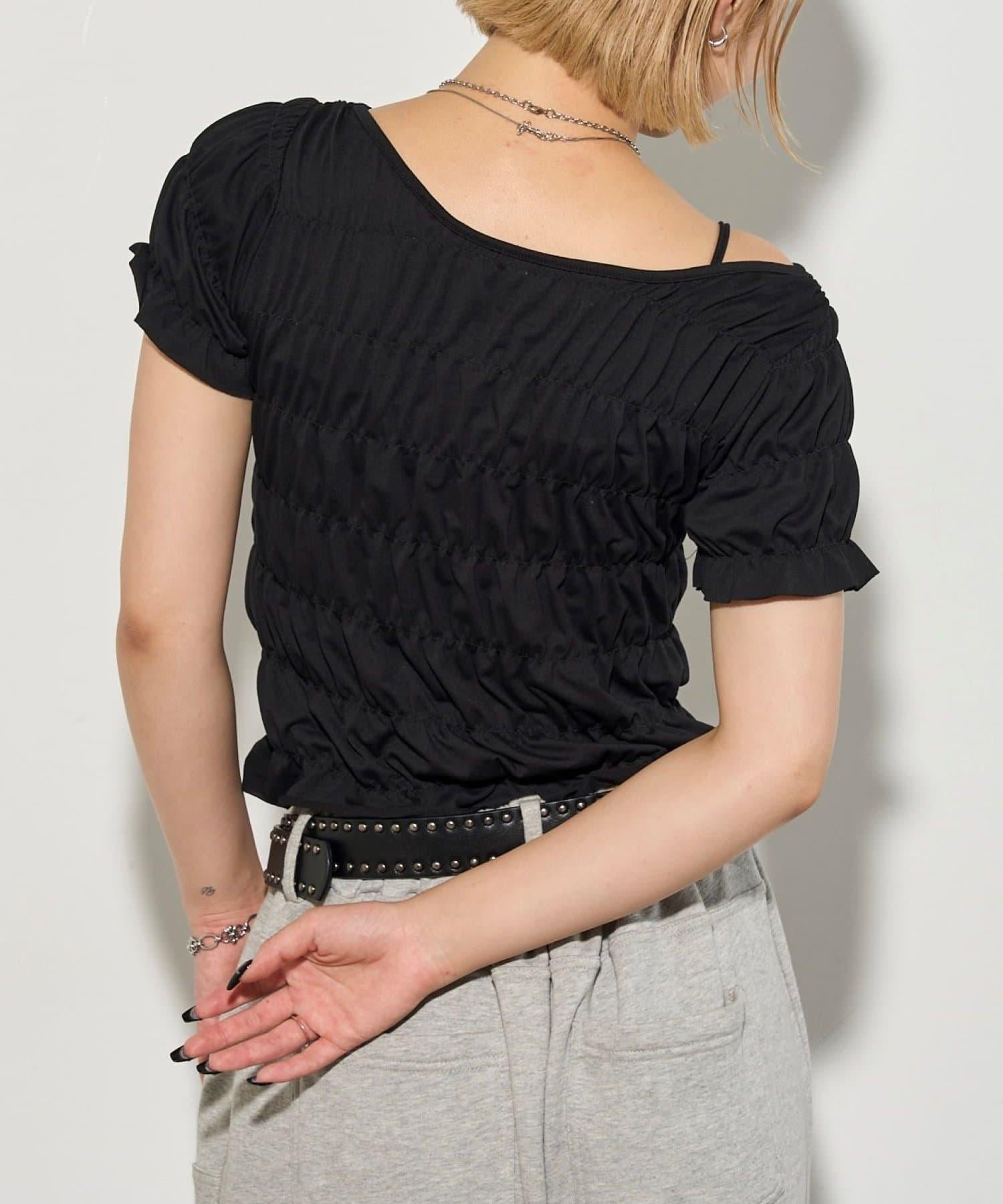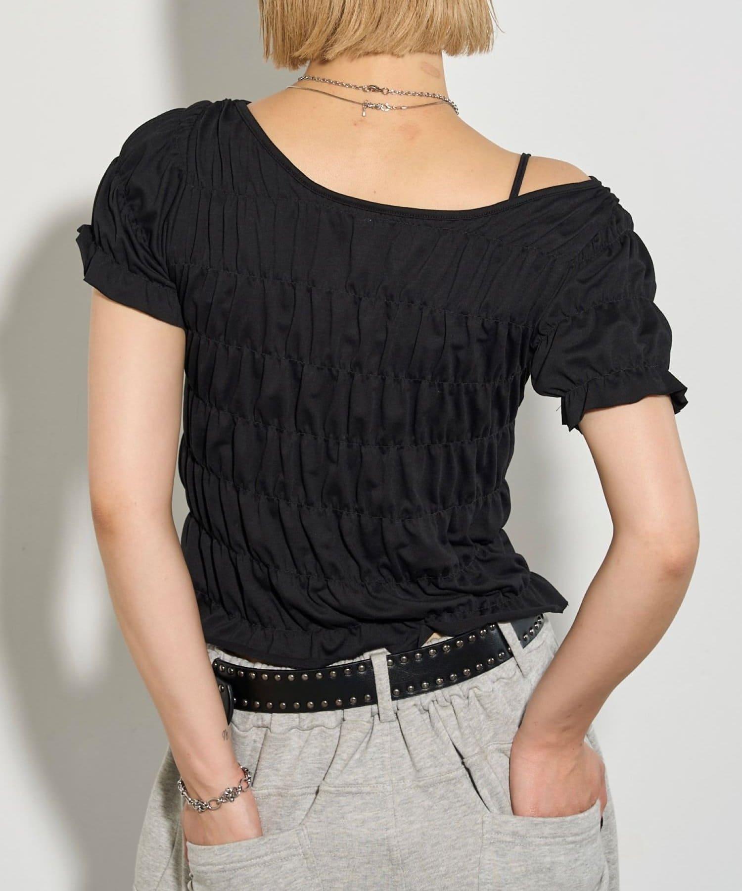 肩部為雙向型,既可以原樣穿著,也可以作為單肩上衣穿著。