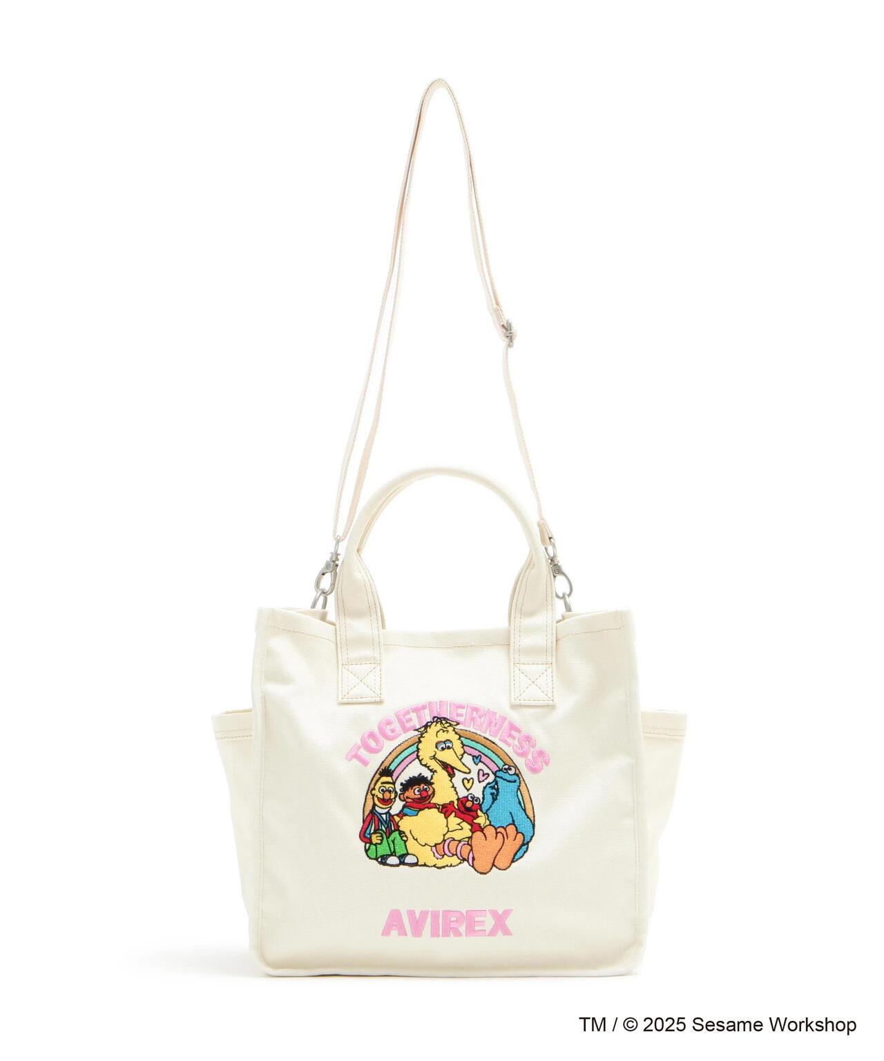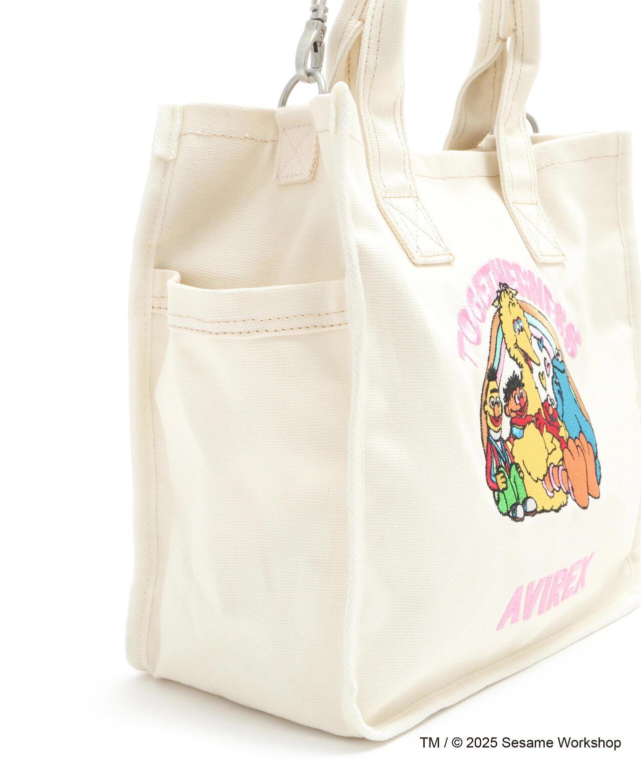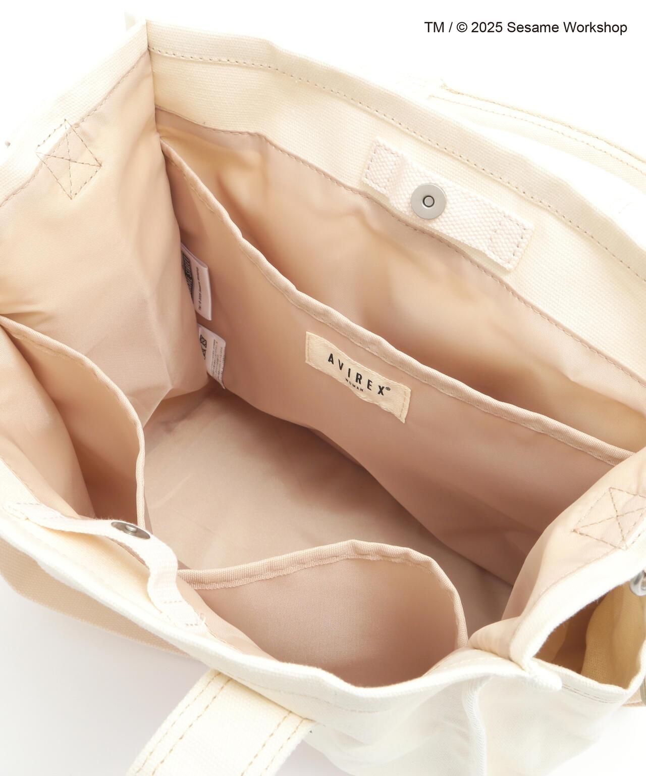 SESAME STREET meets AVIREX] CANVAS TOTE BAGA 這是 AVIREX 與《芝麻街》的特別合作款,帶有凹凸感的刺繡圖案,規格為肩帶,也可斜掛,外側和內側都有大口袋。外側有一個大口袋,內側也有一個可分成多個小口袋的口袋,是一款使用方便的包包。芝麻街] 《芝麻街》是一個開創性的兒童教育節目,創建於 1969 年,目前在 150 多個國家和地區播出。該節目由瓊-甘茲-庫尼和勞埃德-莫里塞特在民權運動期間創作,以生動活潑的城市景觀為背景,以音樂、可愛的木偶、動畫、故事情節為主要內容。