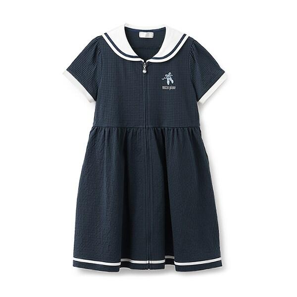 【芭蕾】水手領格子前開連衣裙