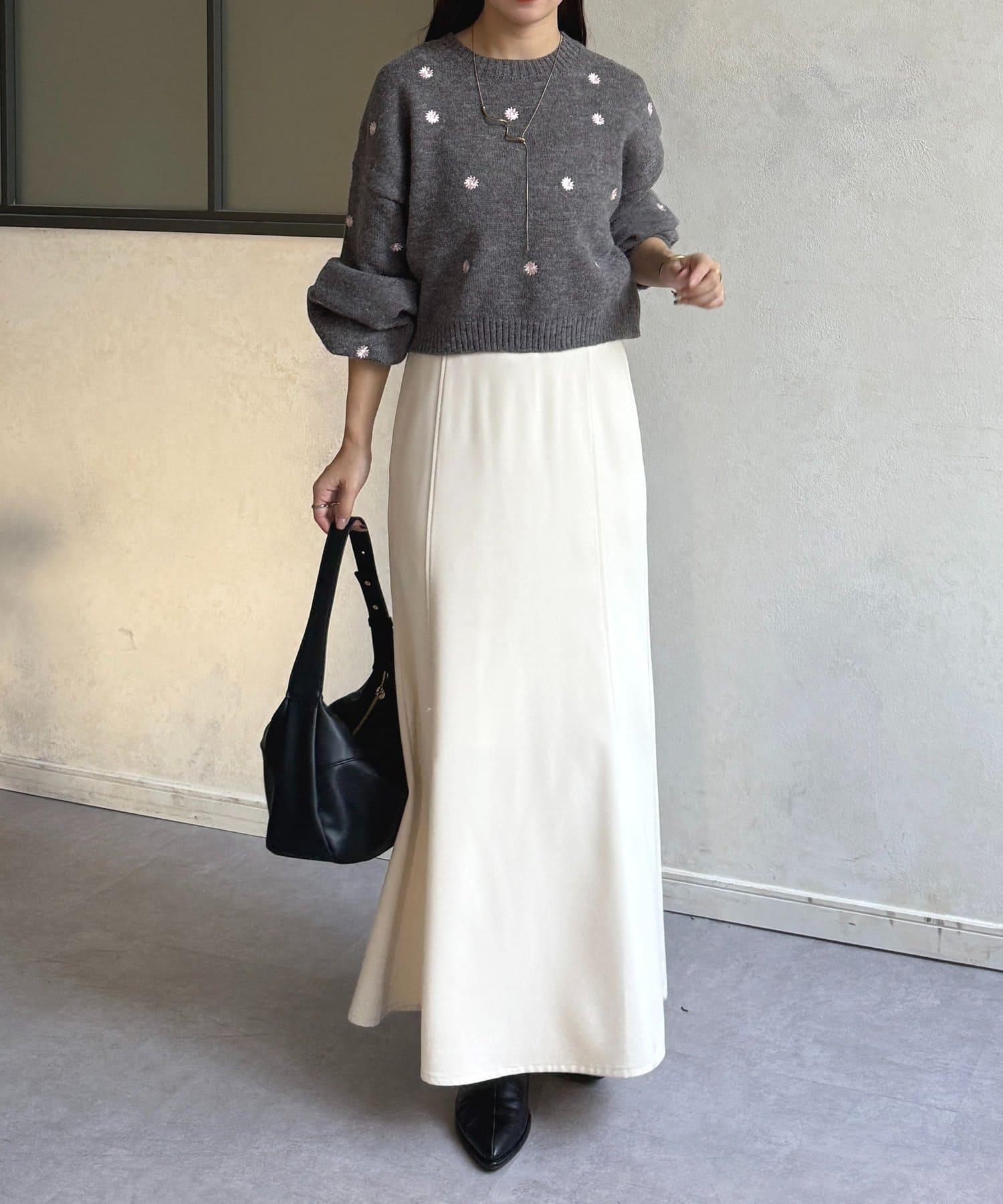 因為是華麗的針織衫,所以下裝的設計比較簡單。