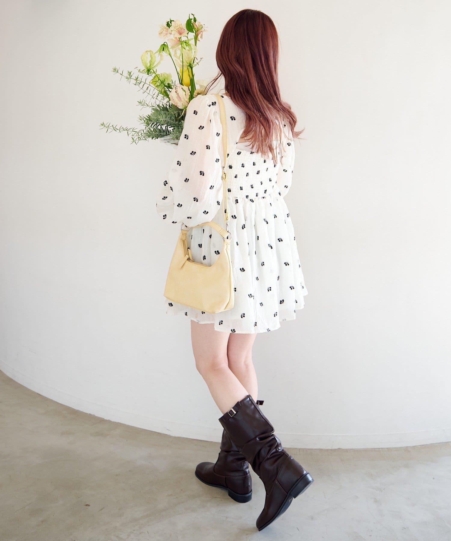 表面的刺繡花朵增添了立體效果,給人優雅的印象。