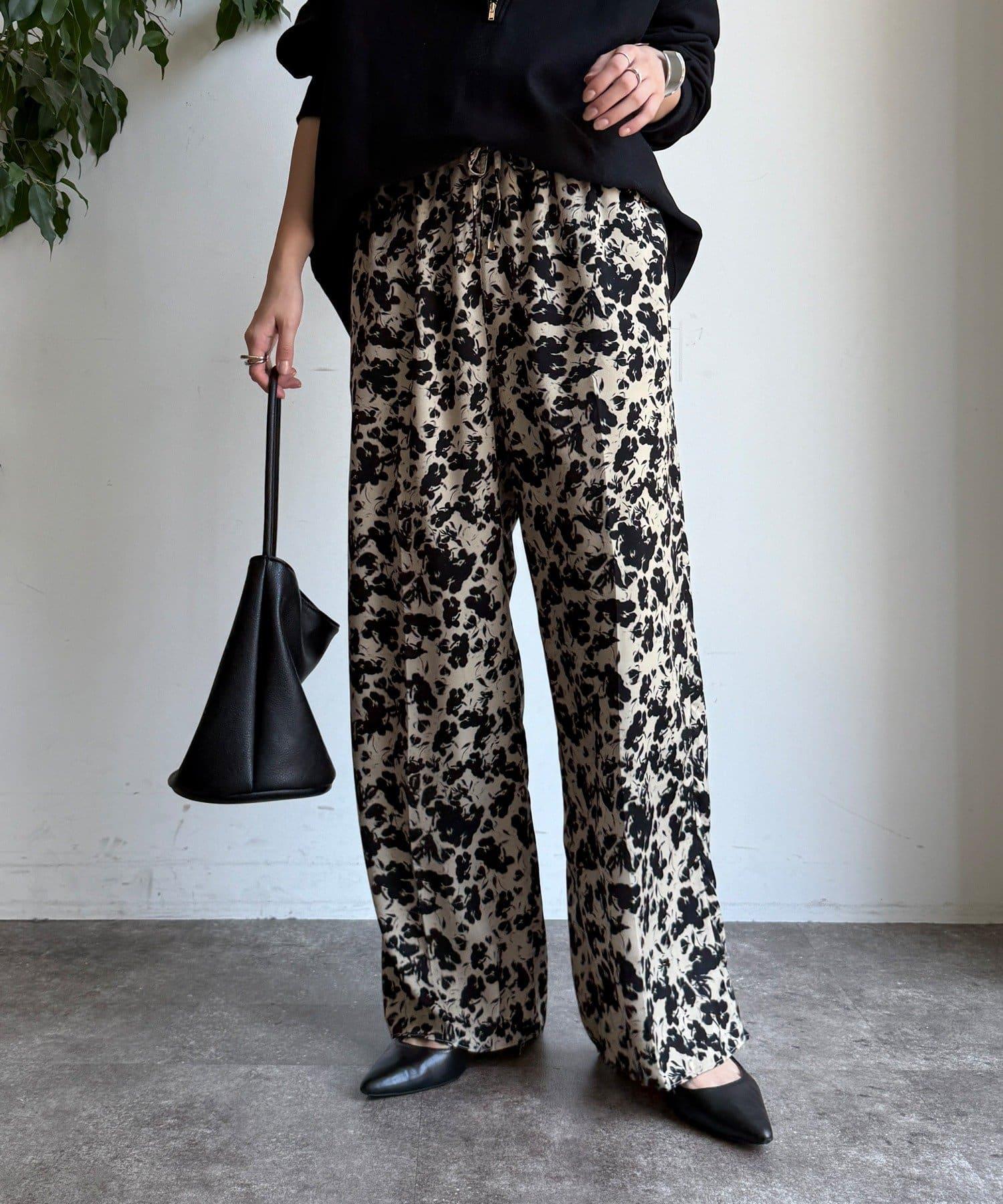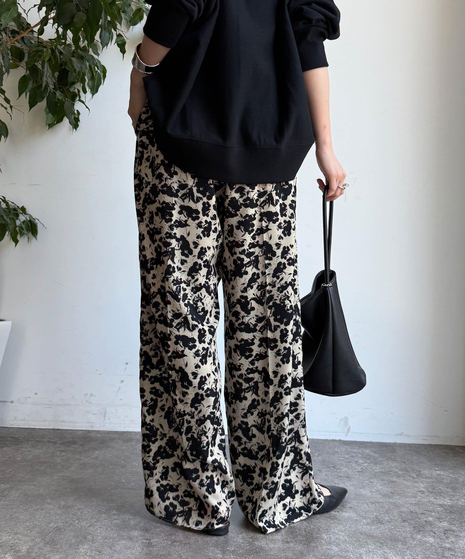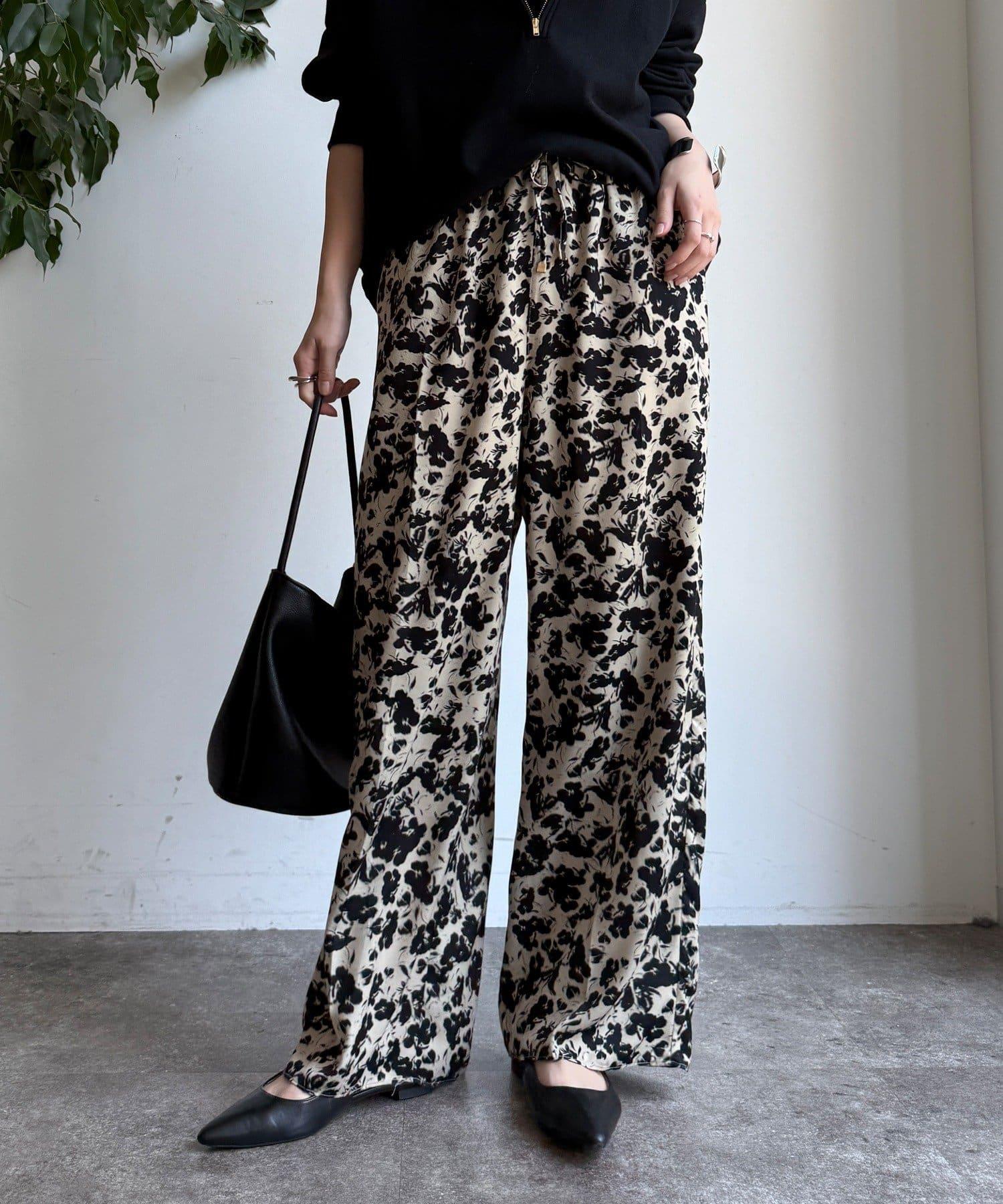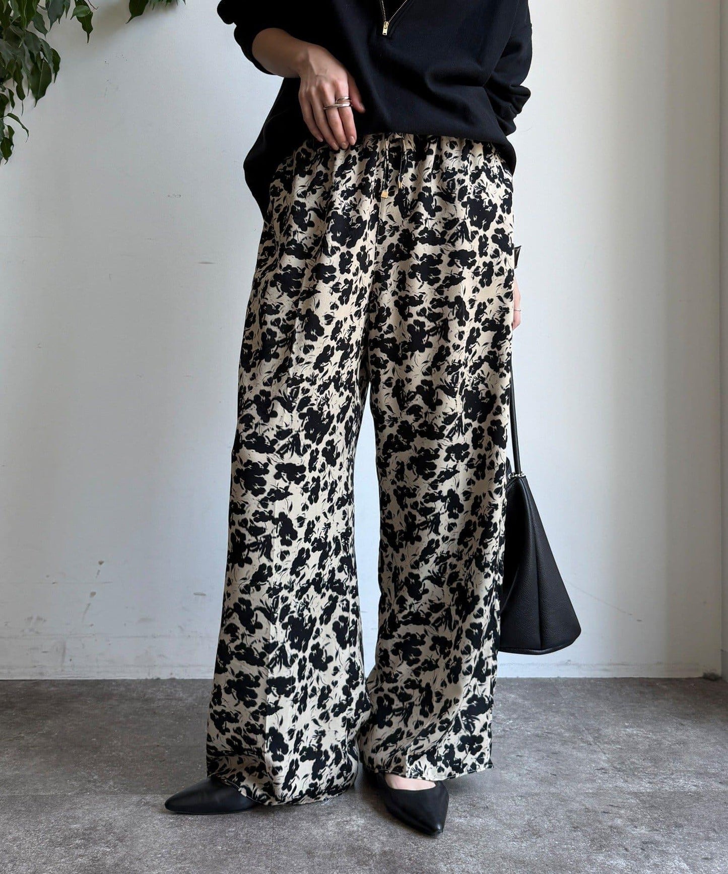 寬鬆的長褲,優雅的花卉印花引人注目。